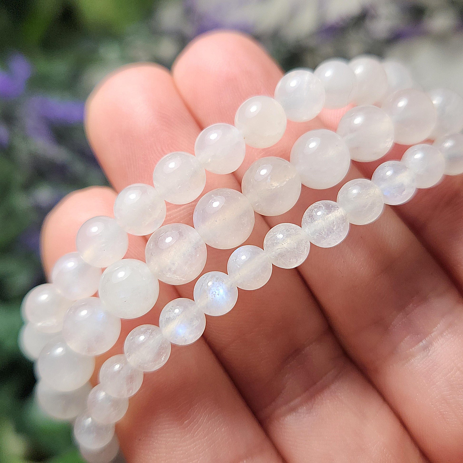 These Moonstone stretch bracelets are created with 6-7mm beads that have been polished to a high sheen. Each bracelet measures approximately 7 inches.