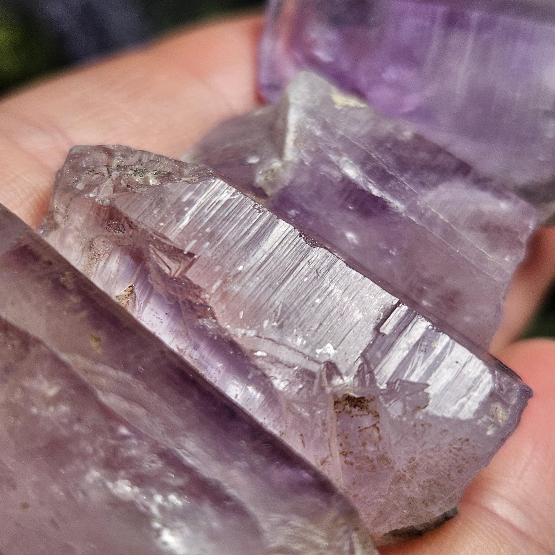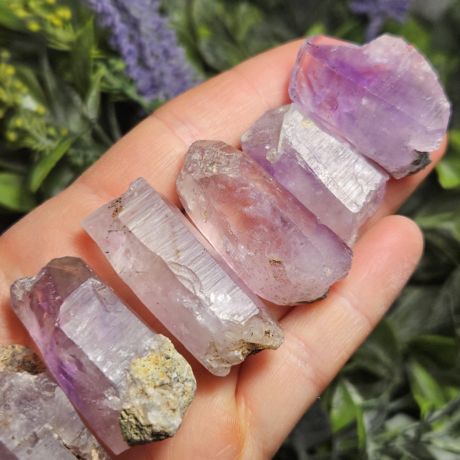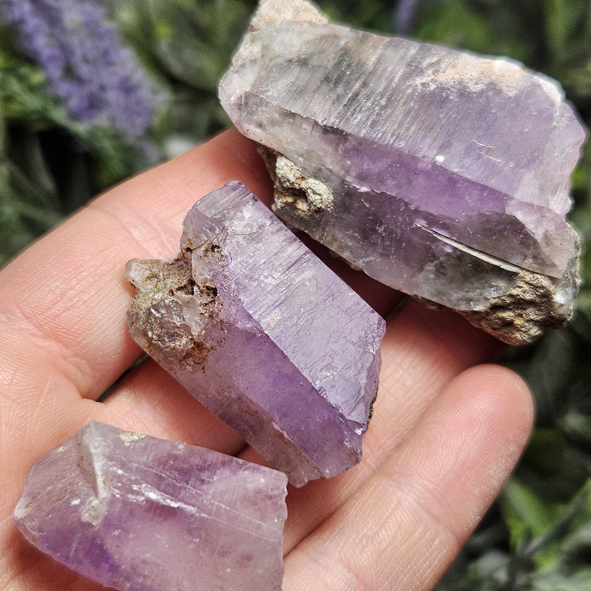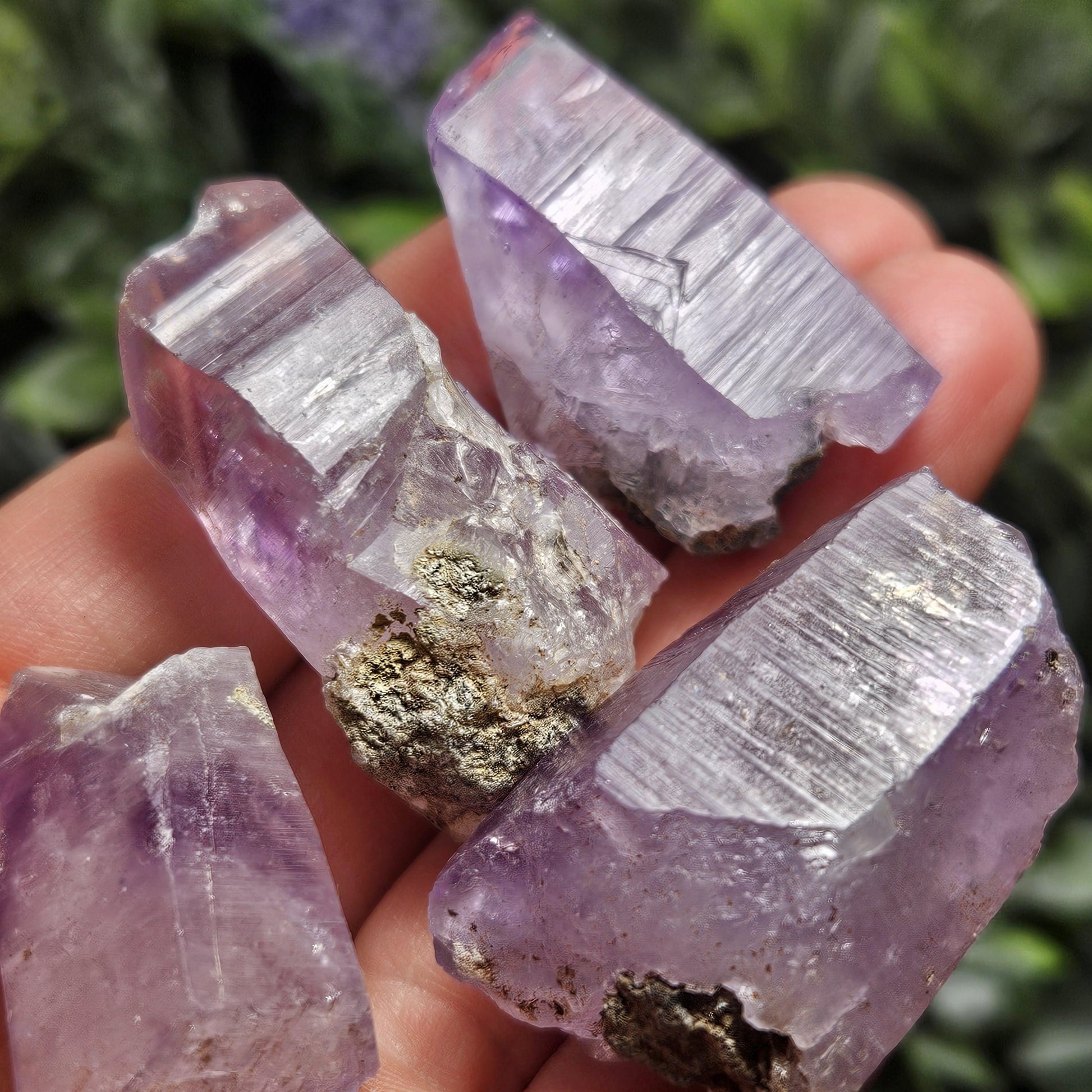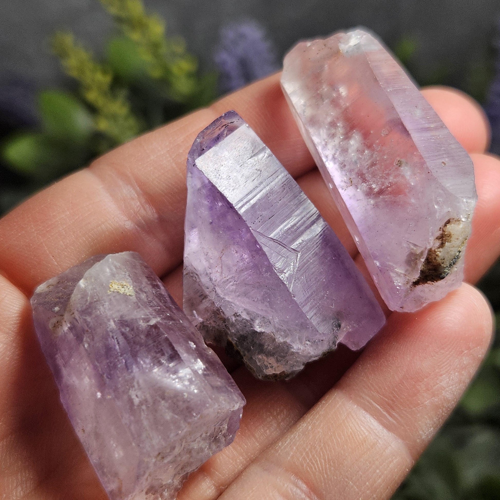 🌀 Each of these crystals have fractured or missing terminations, but they have clear moving enhydro water inclusions.