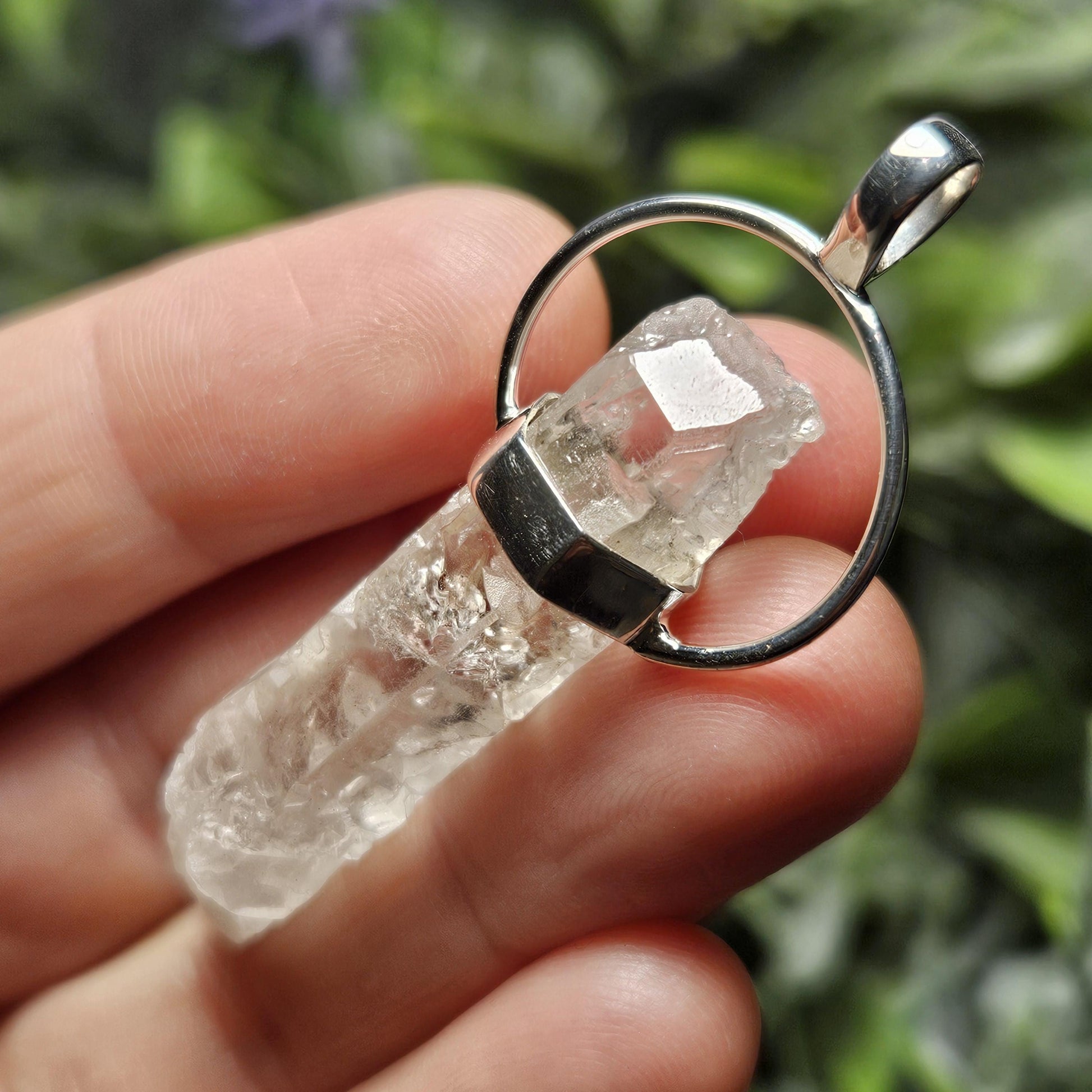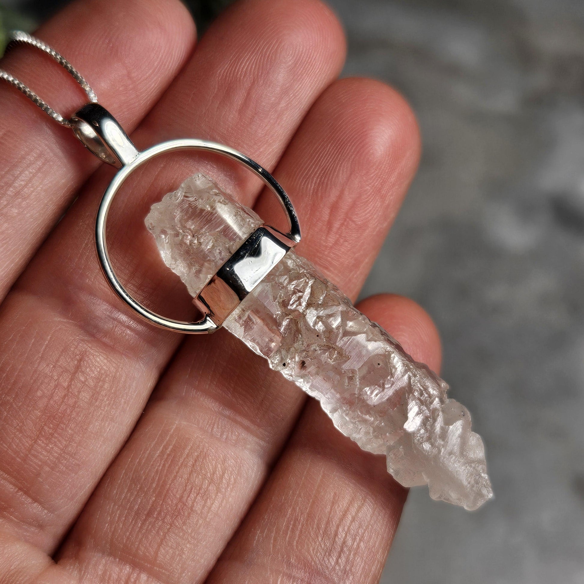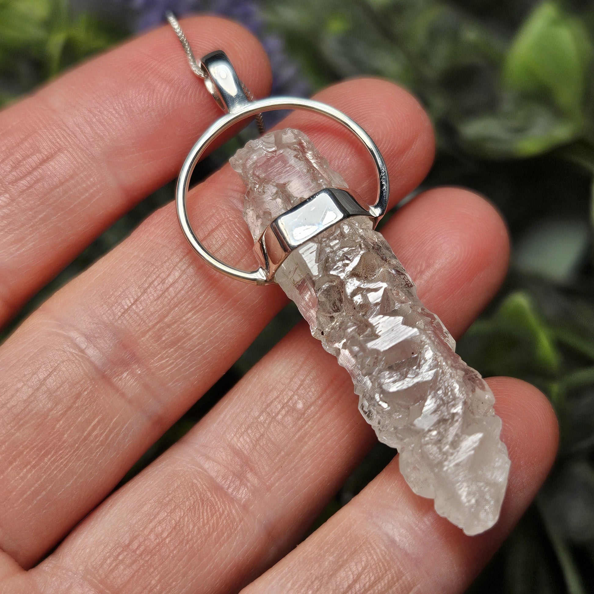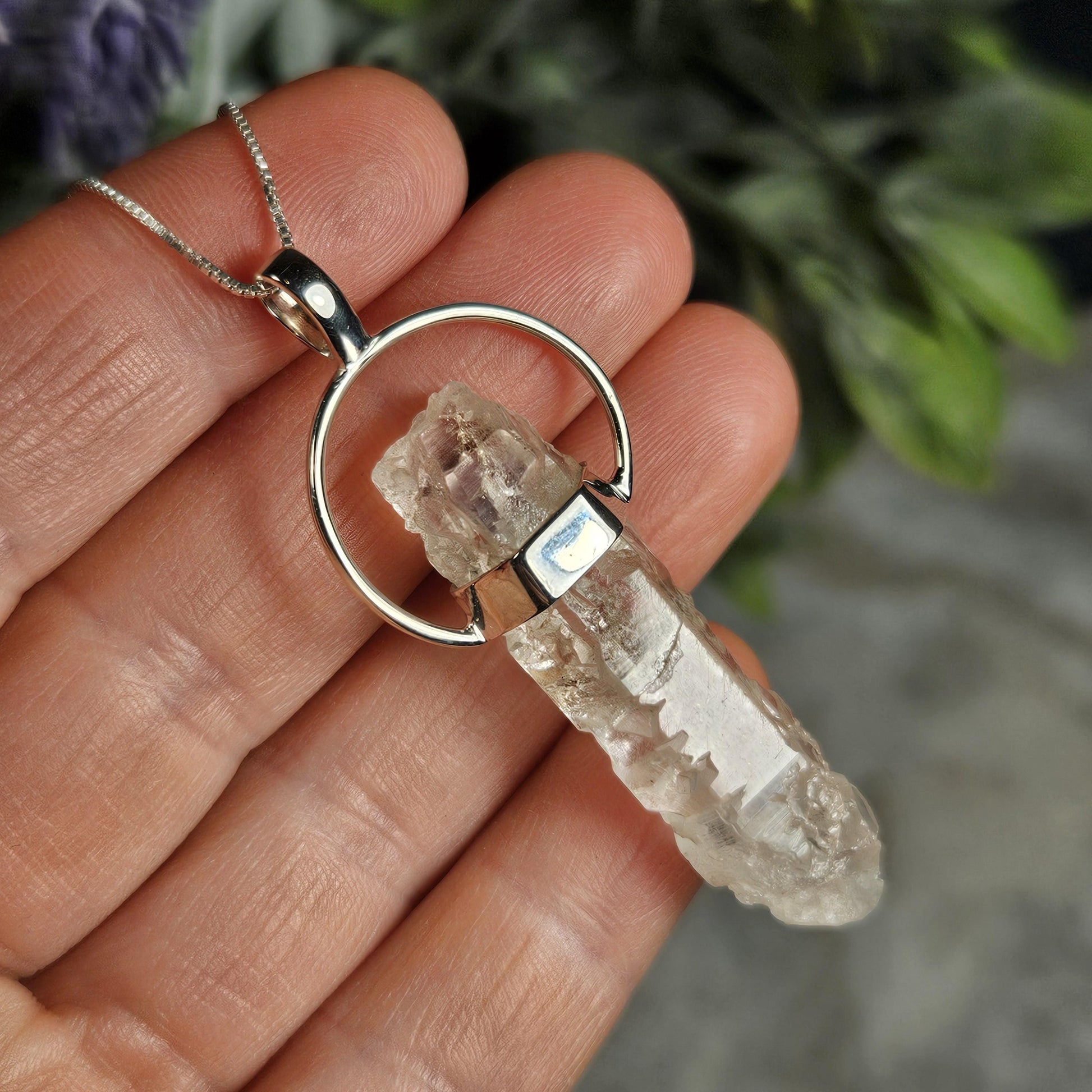 Nirvana Quartz Pendant, Himalayan Pink Trigonic Crystal: Sterling Silver Raw Stone Jewelry