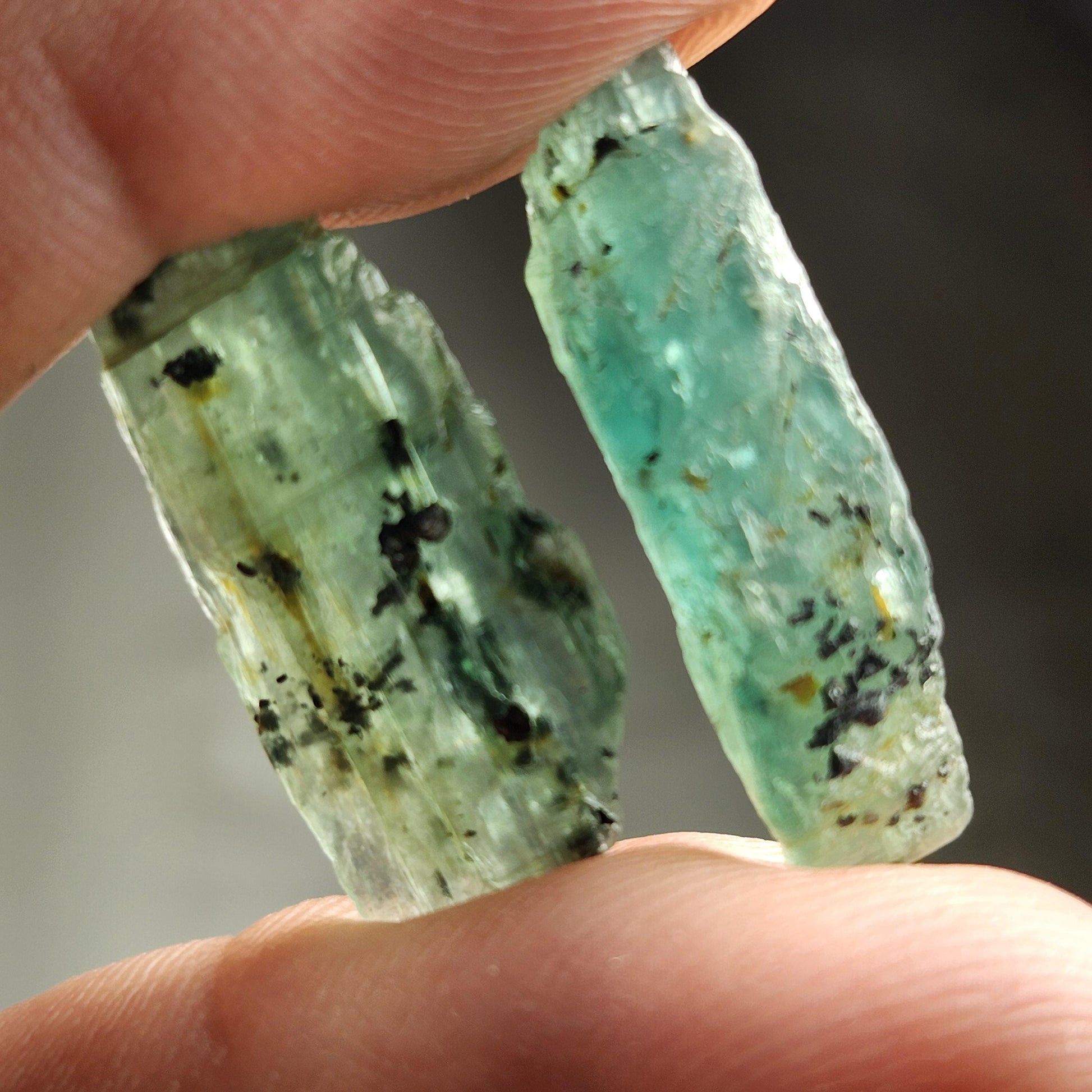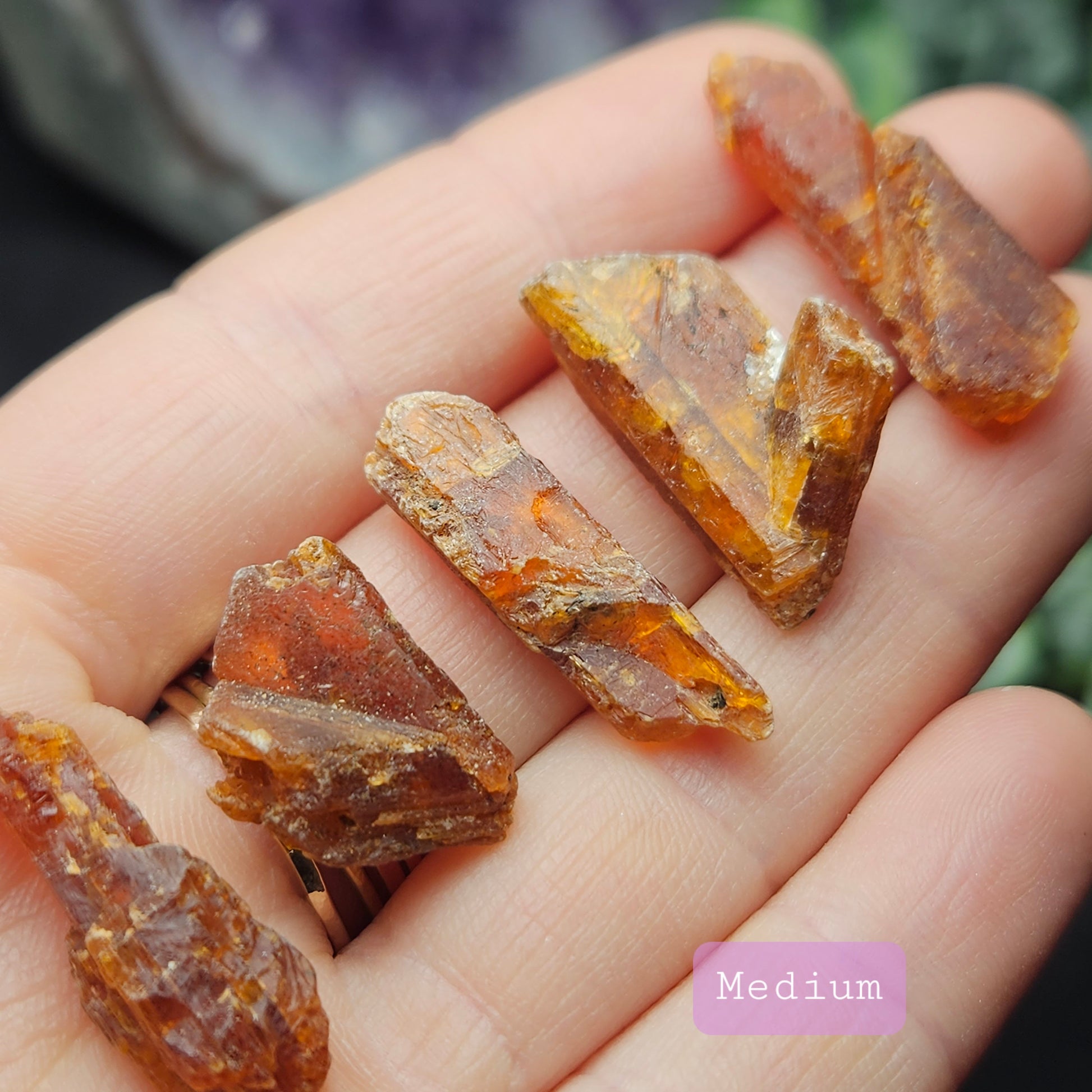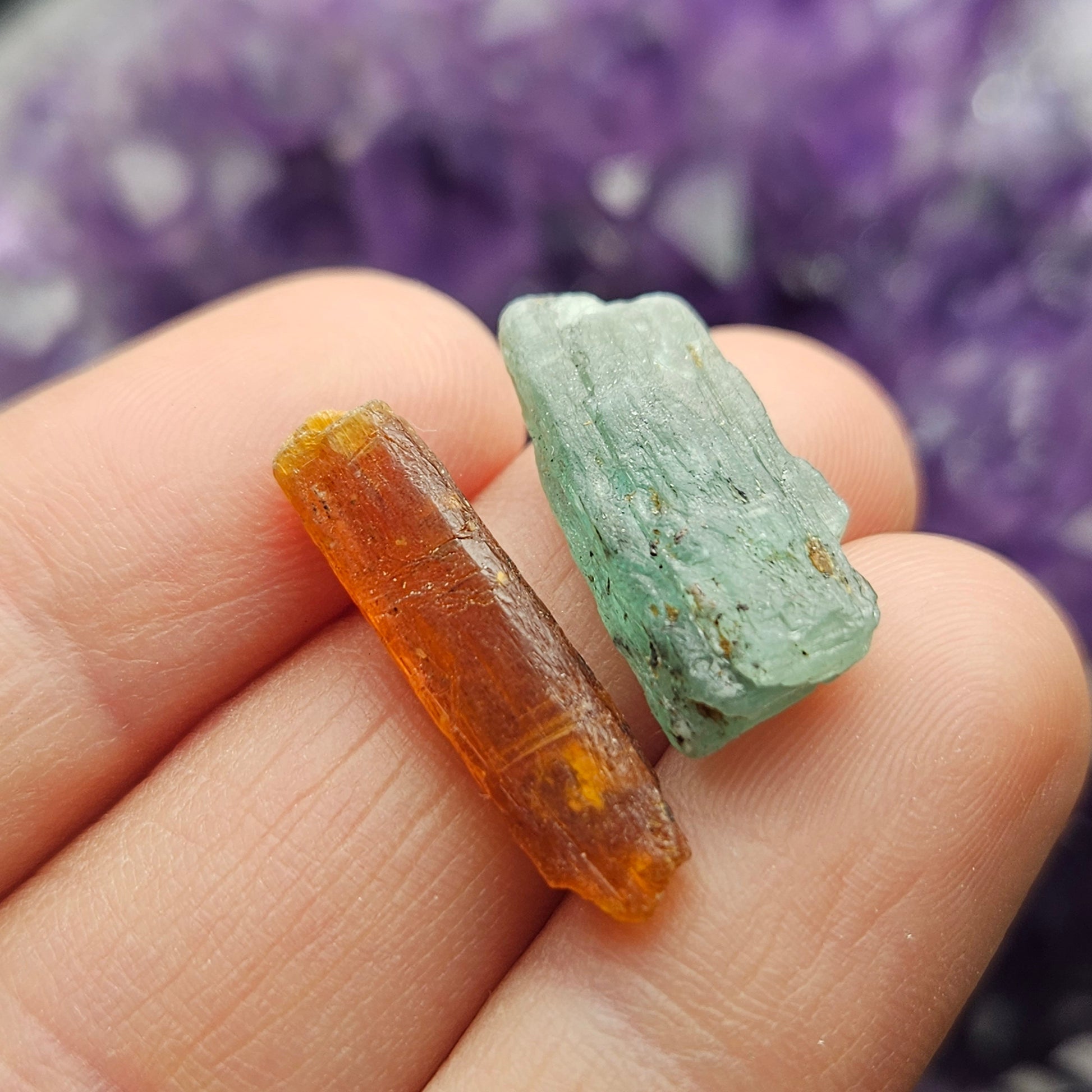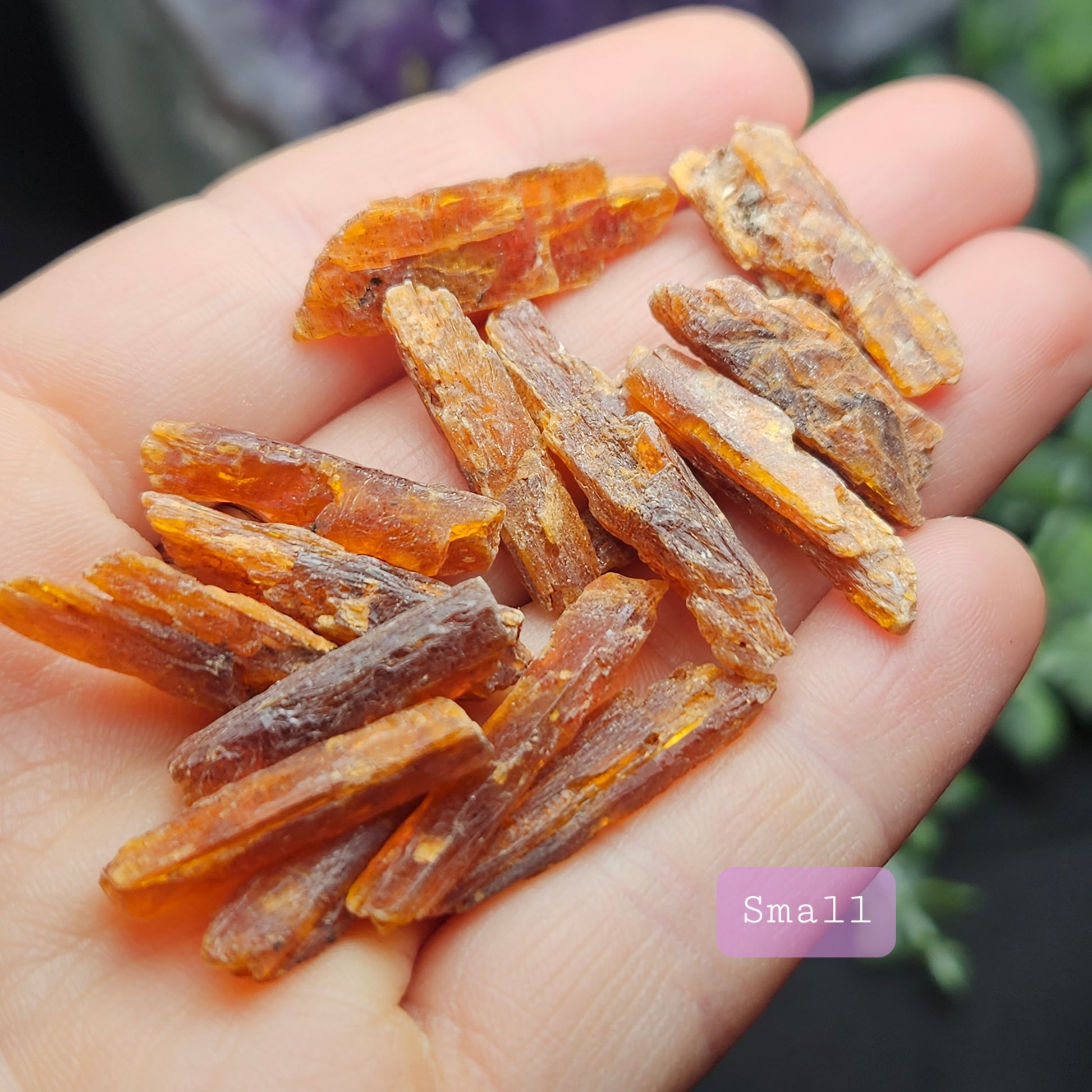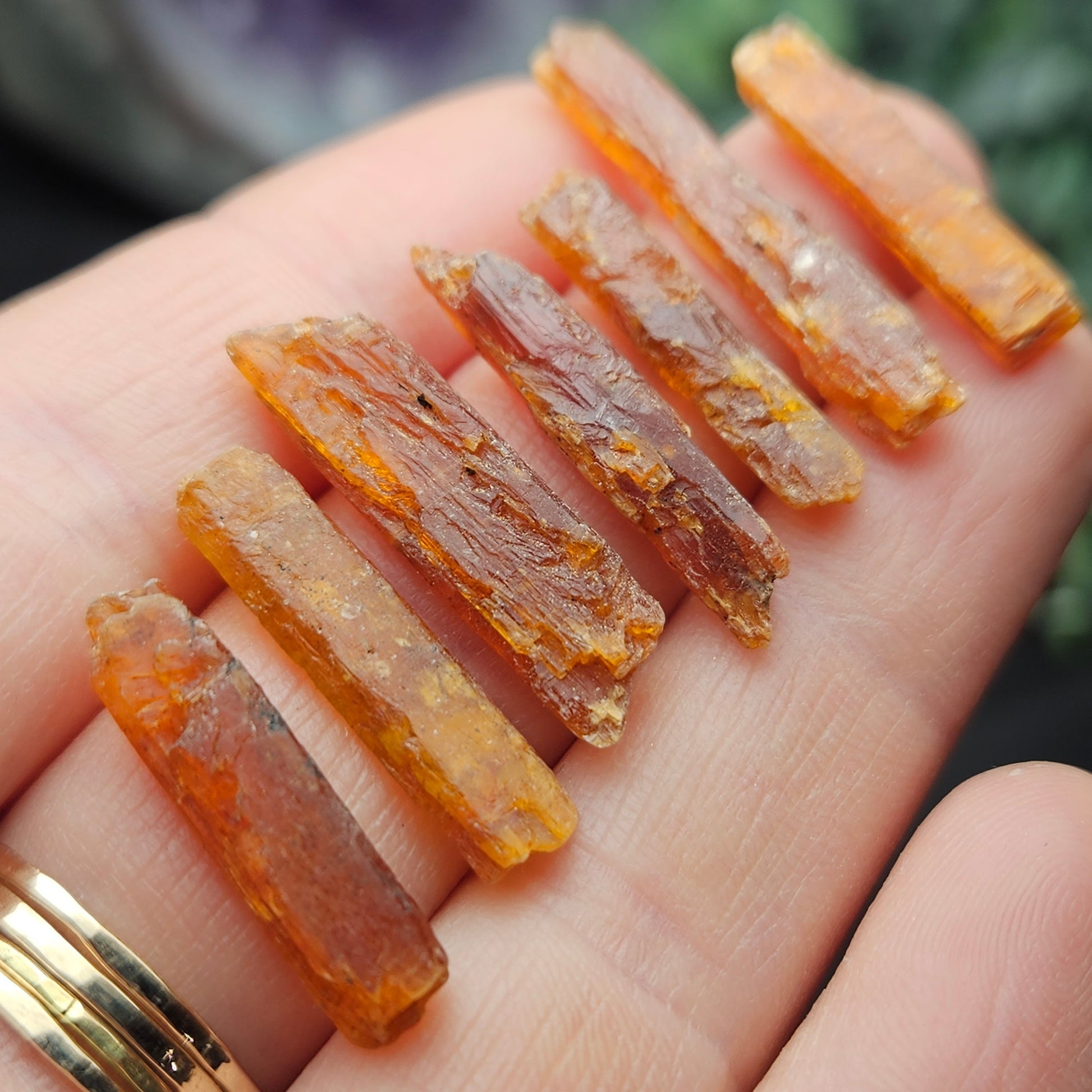 These gorgeous Tanzanian Kyanite crystals have visible striations and a range of green and orange color tones. Each piece has its own character and natural inclusions.
