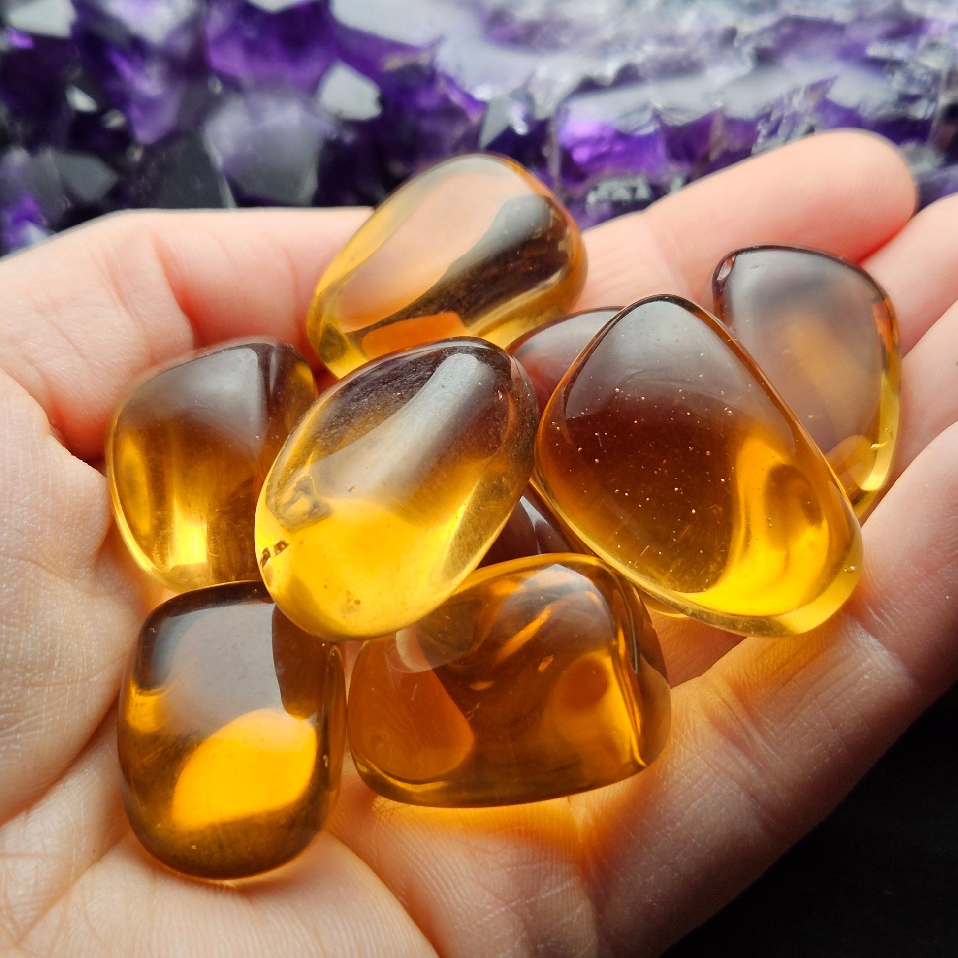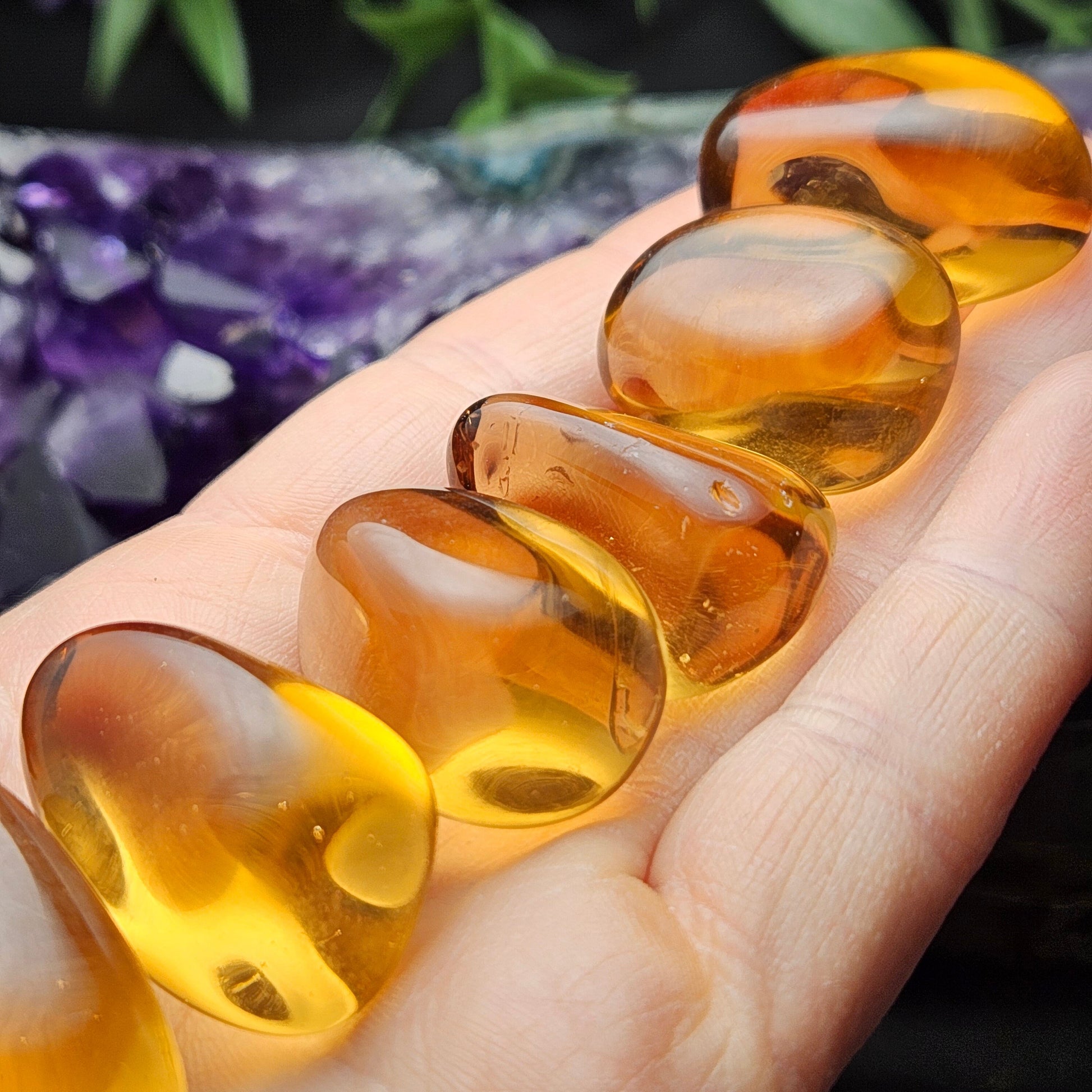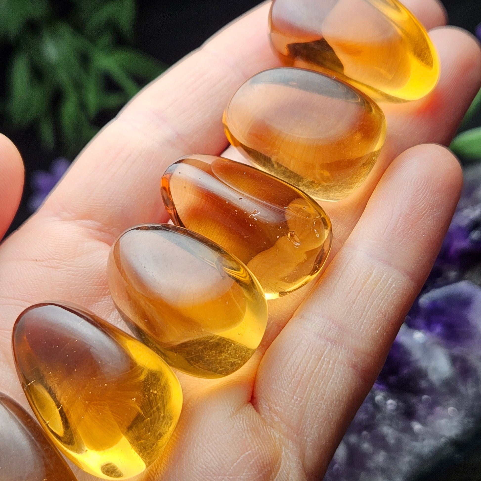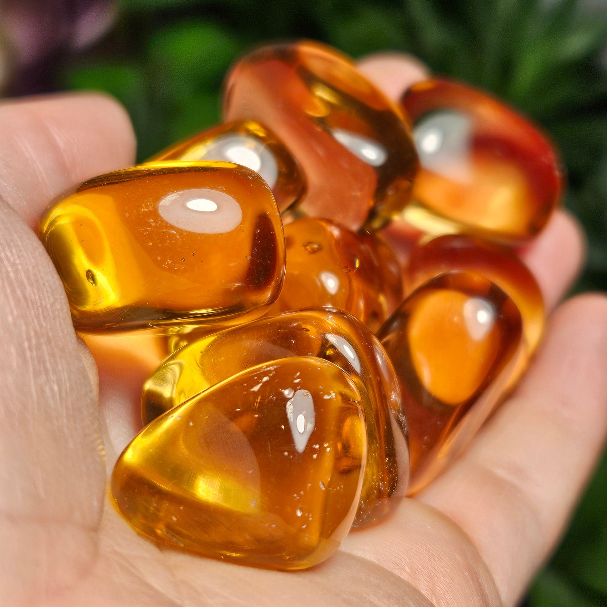 These vivid Orange Obsidian crystals have been enhanced and polished to a high sheen. We also offer many natural Obsidian options in the shop but love to include these colorful, lab replicated Obsidian for their color energy and ritual purposes. Each specimen measures approximately 1 inch.