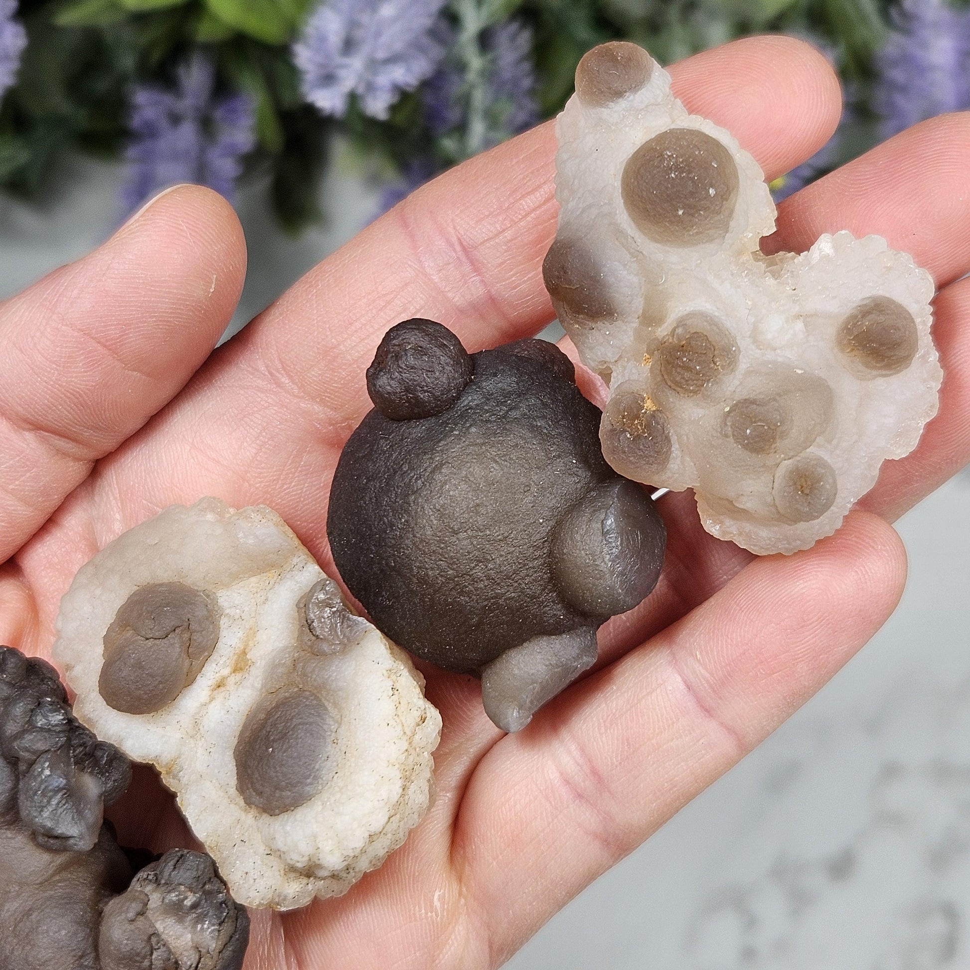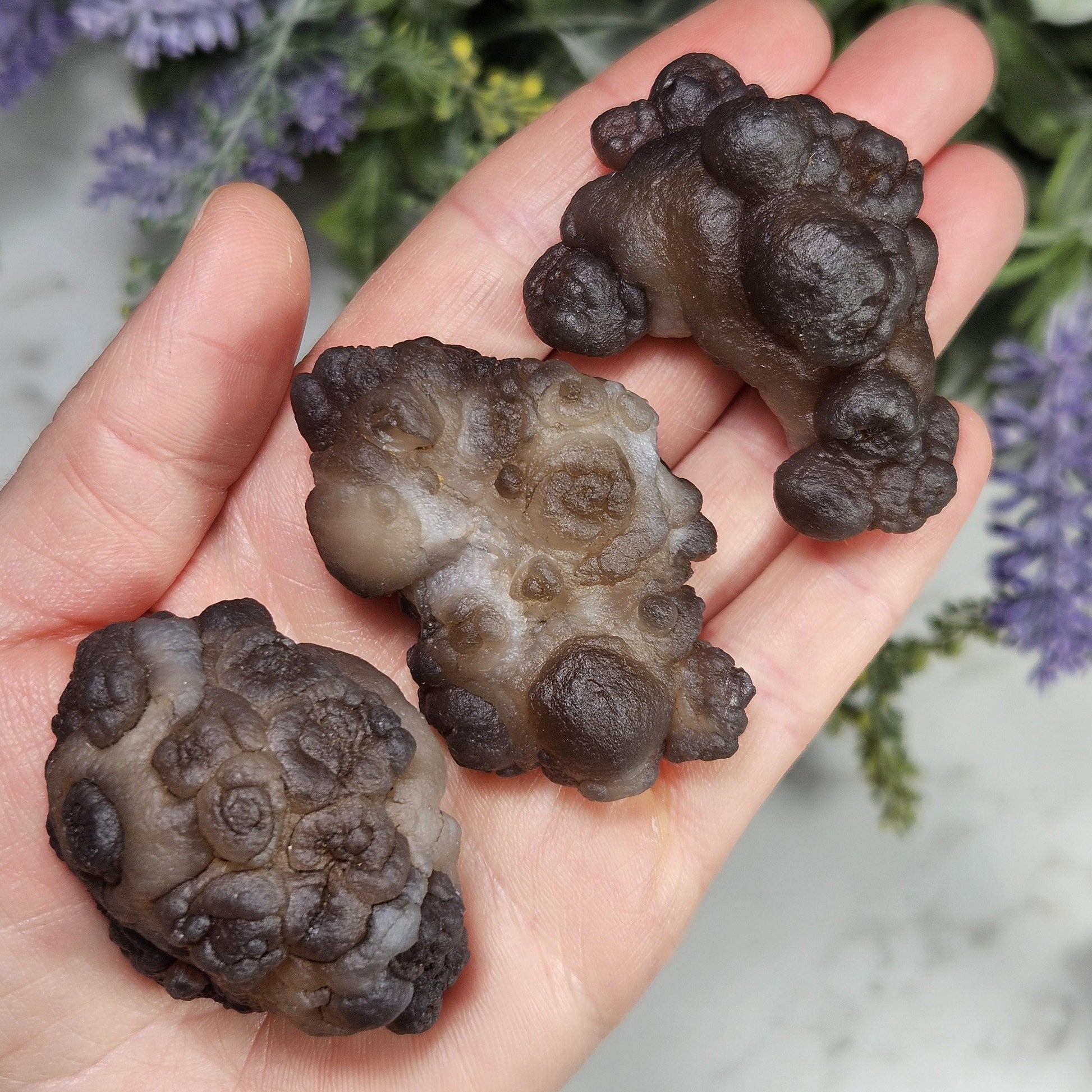 Truffle Chalcedony is a rare variety of Chalcedony that is found exclusively in Morocco. These unique Truffle Chalcedony nodules display tones of grey-brown and exhibit a natural surface texture. They have amazing botryoidal growth, with bubbling formations and rounded shapes. These specimens may have some abrasions from the mining process.