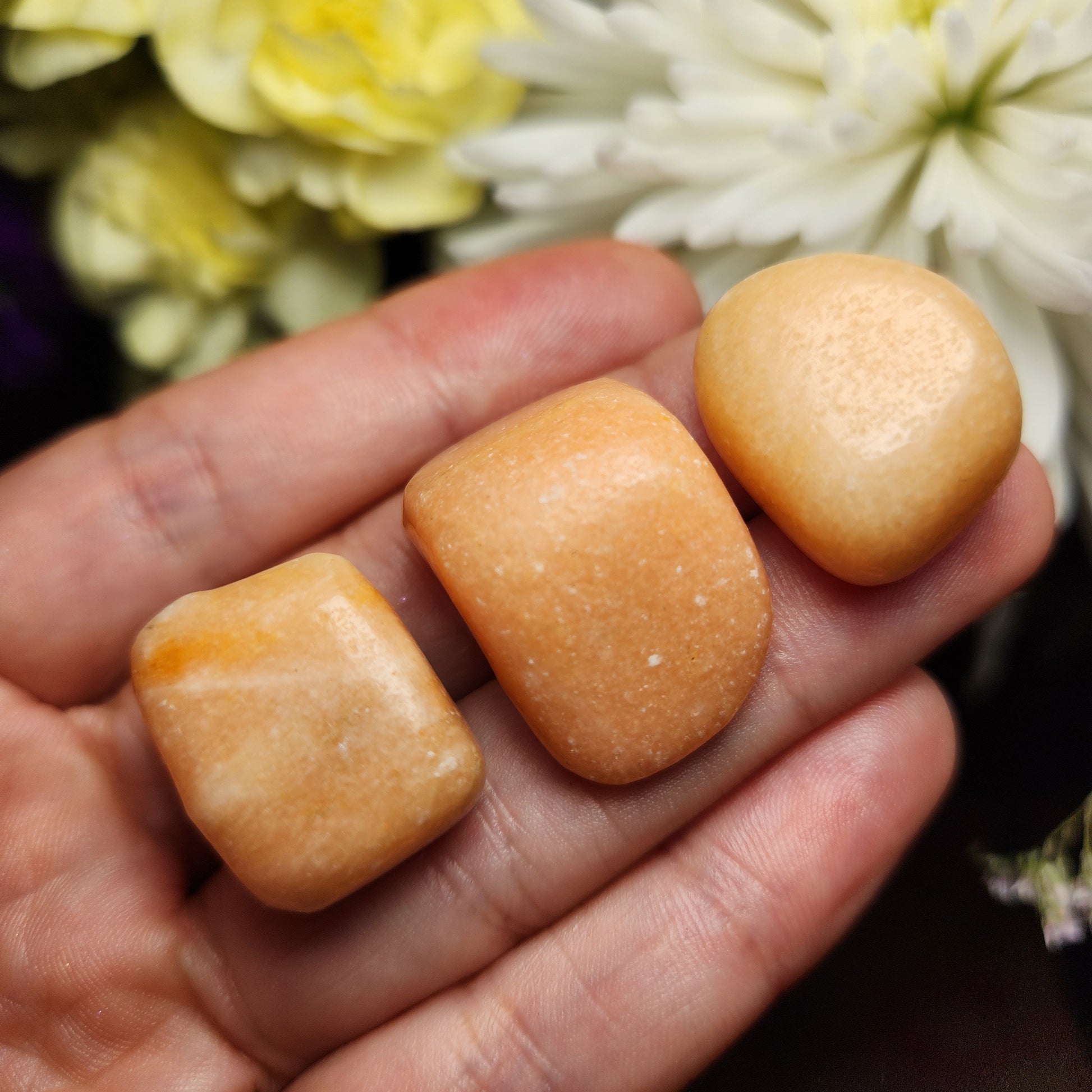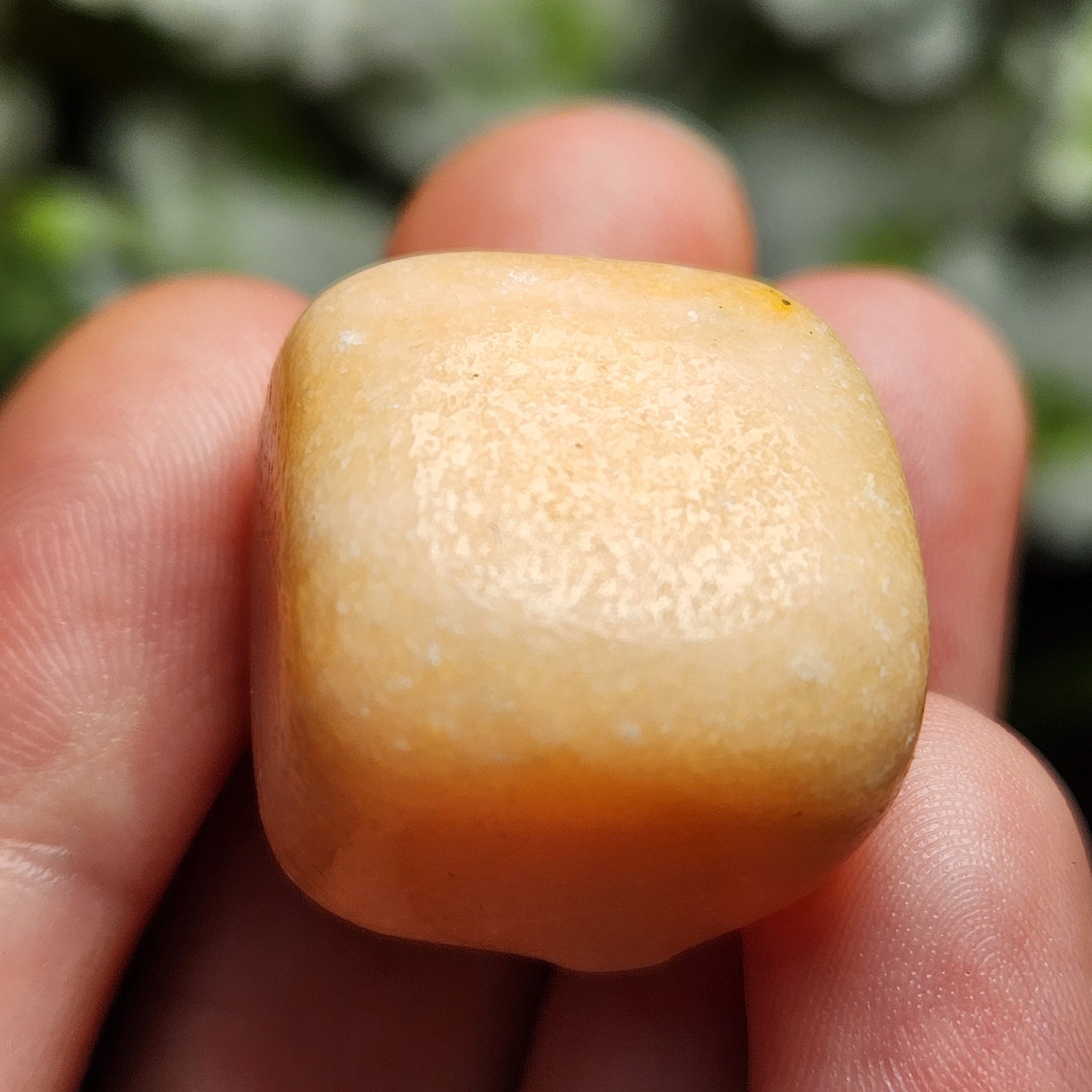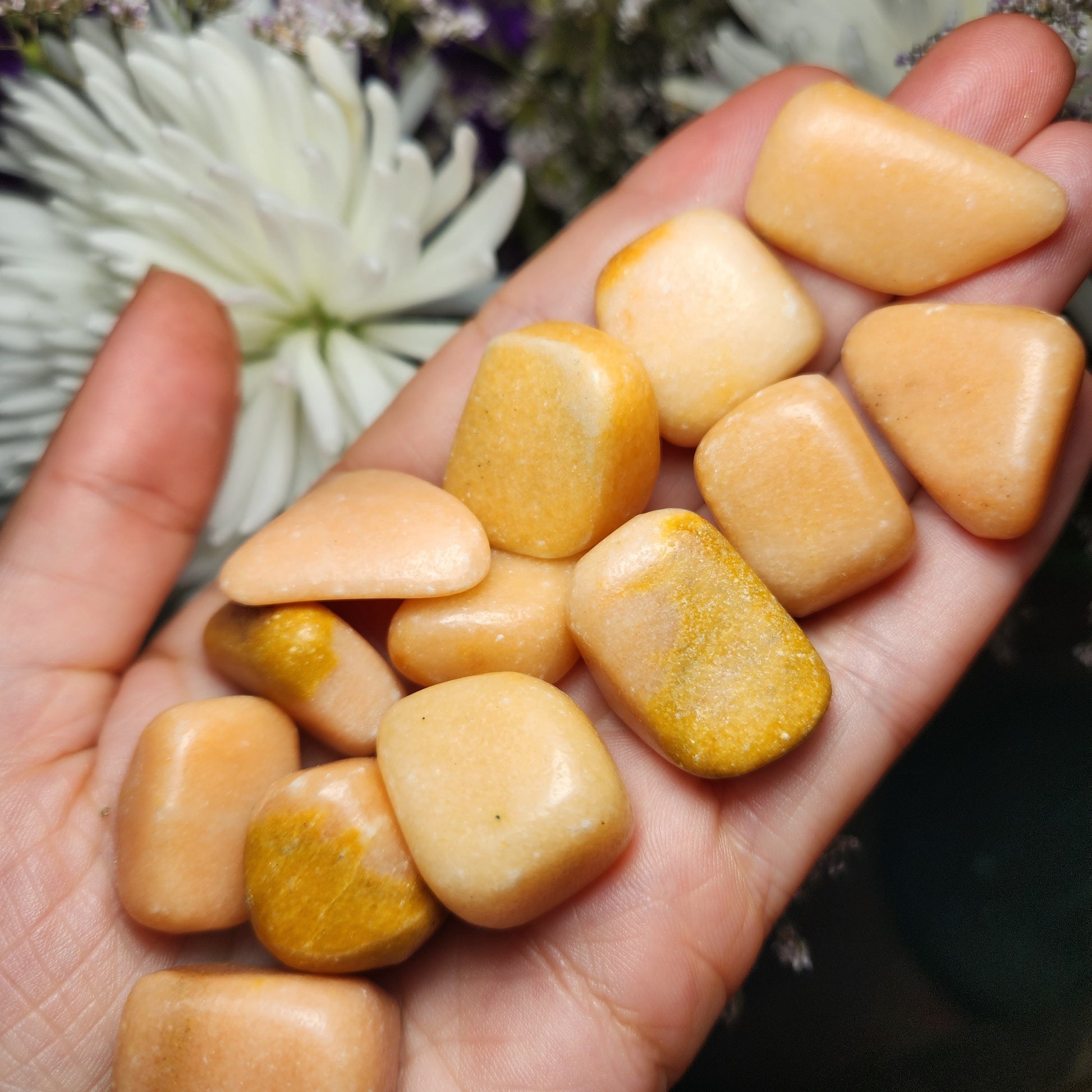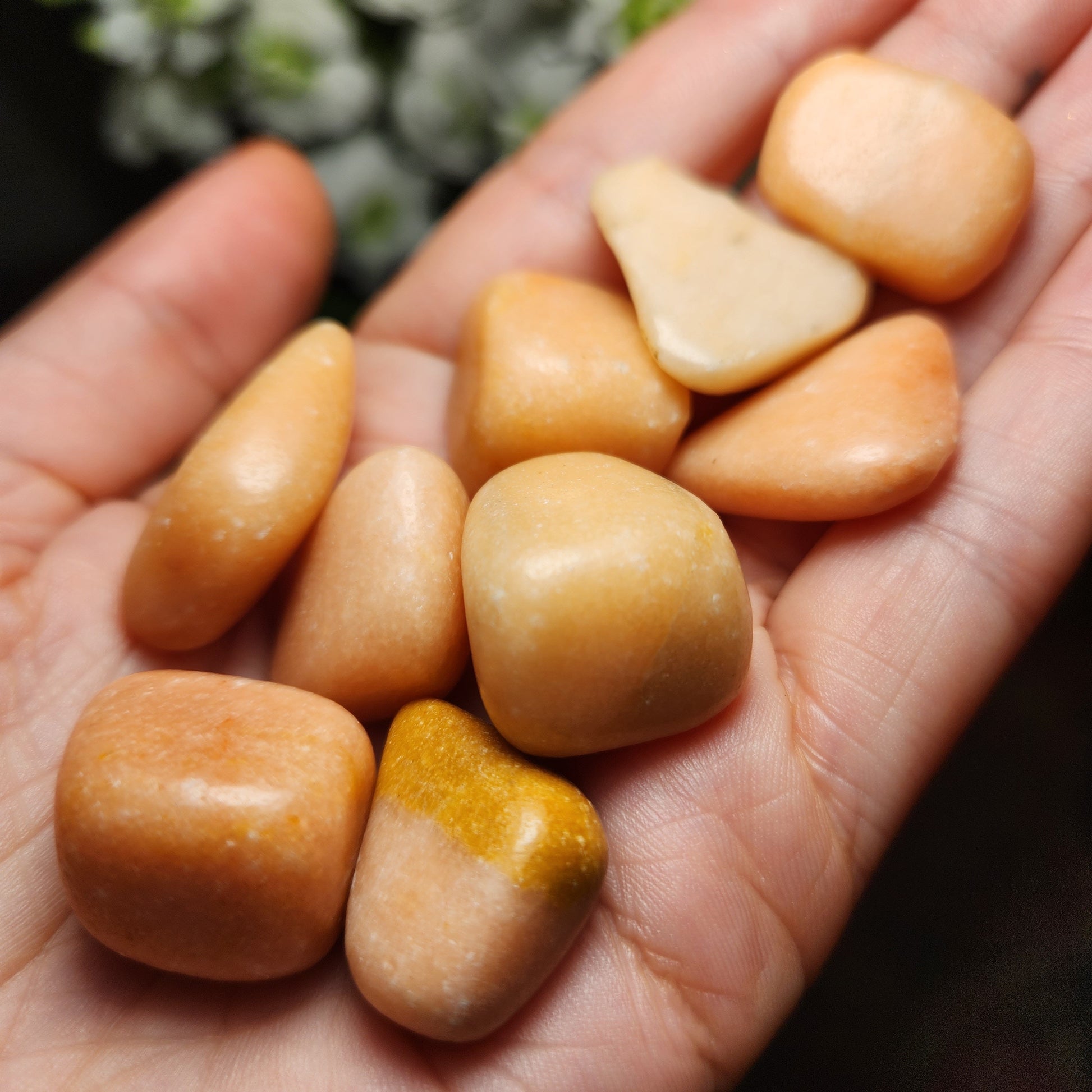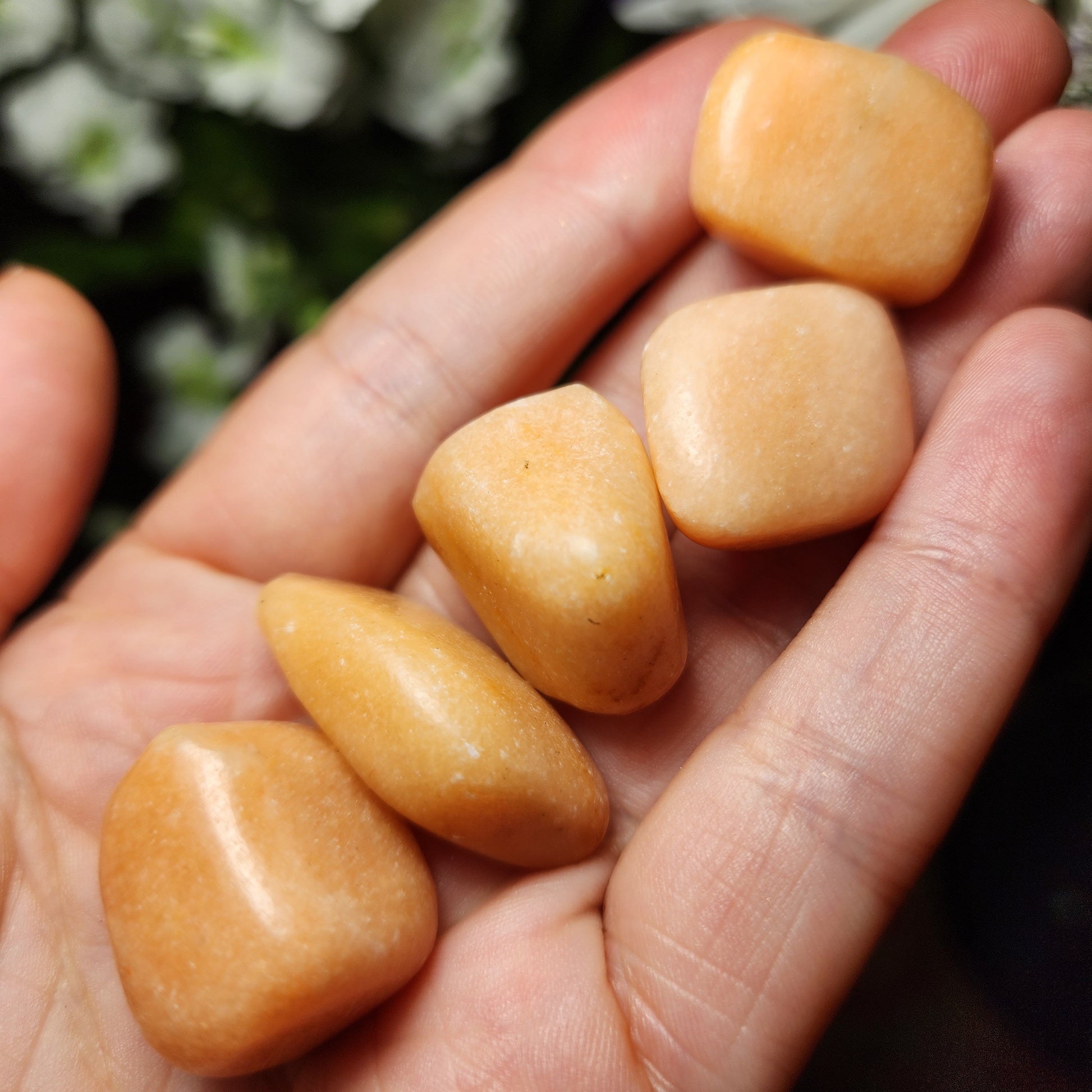 These Peach Calcite crystals have been tumbled to a high polish and exhibit a creamy peach coloring. Each specimen measures approximately 20mm and up.