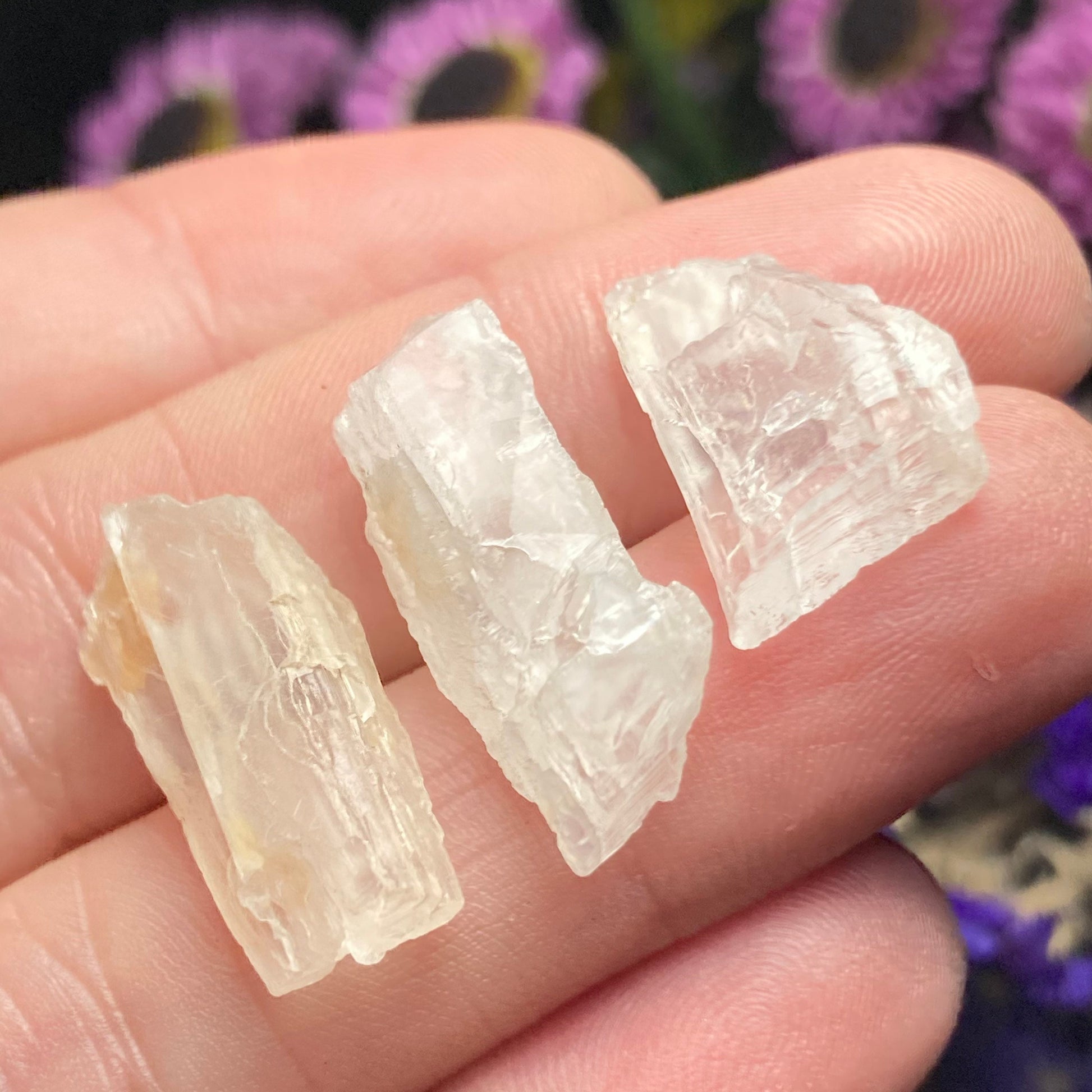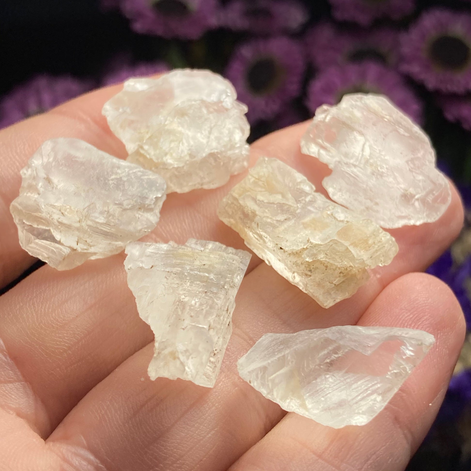 These raw Petalite stones have incredible crystal structure and may exhibit termination or striations. They have a soft white, glowing translucence.