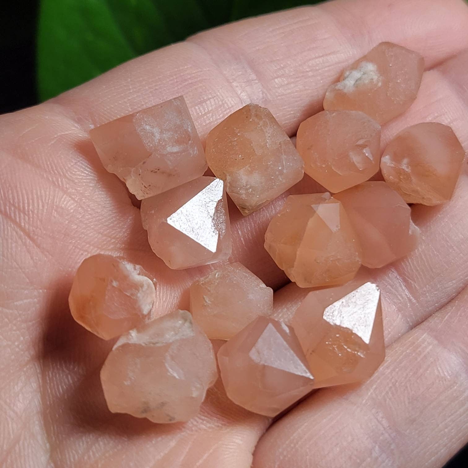 These are a very soft peachy pink even tho the photo makes them look more orange. Theyre perfect for crystal grids, I love them! Thank you!