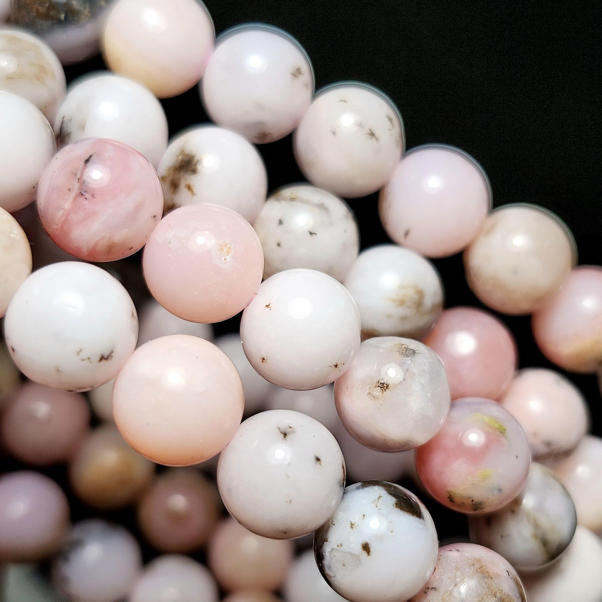 These Pink Peruvian Opal stretch bracelets are created with 7mm beads that have been polished to a high sheen. Each bracelet measures approximately 7 inches.