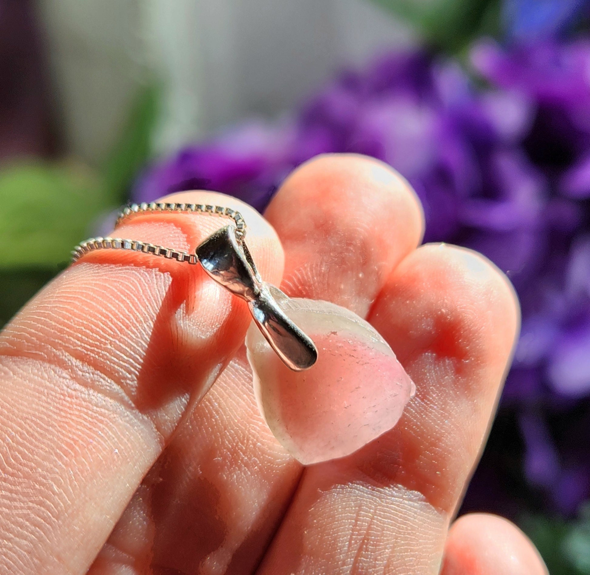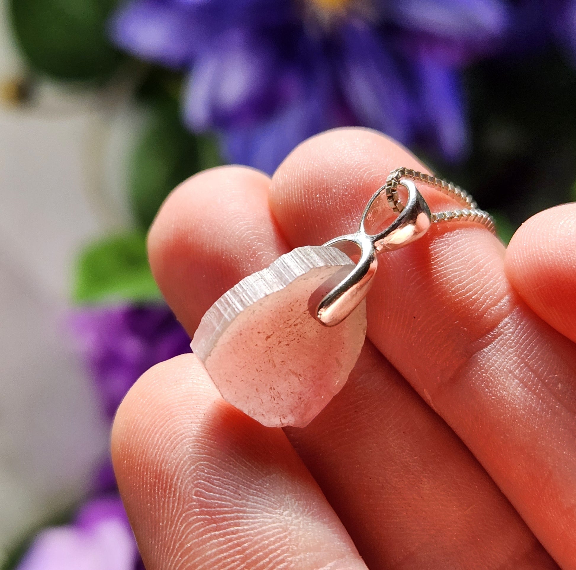 This Tourmaline crystal has been sliced and polished to a high sheen, exhibiting visible striations on its raw sides and a juicy pink translucence. This crystal has been handpicked and processed into an intentional piece of jewelry using .925 Sterling Silver. This pendant measures approximately 22mm by 12mm. The silver chain used in the photos is to help envision how this pendant will look while adorned but is not included in the listing.