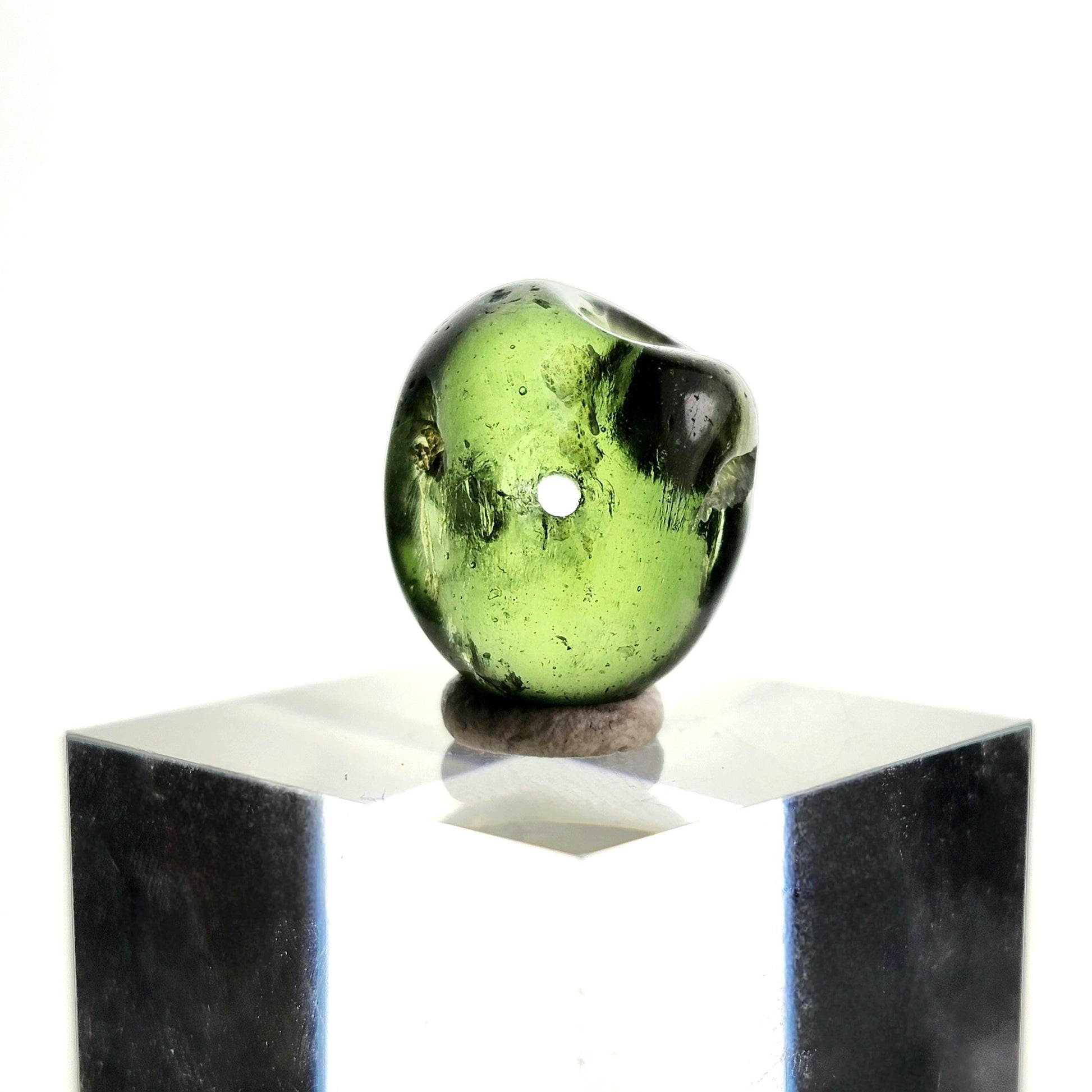 Polished Moldavite Bead: Authentic Czech Tektite Crystal (2.2g, 14x12mm)