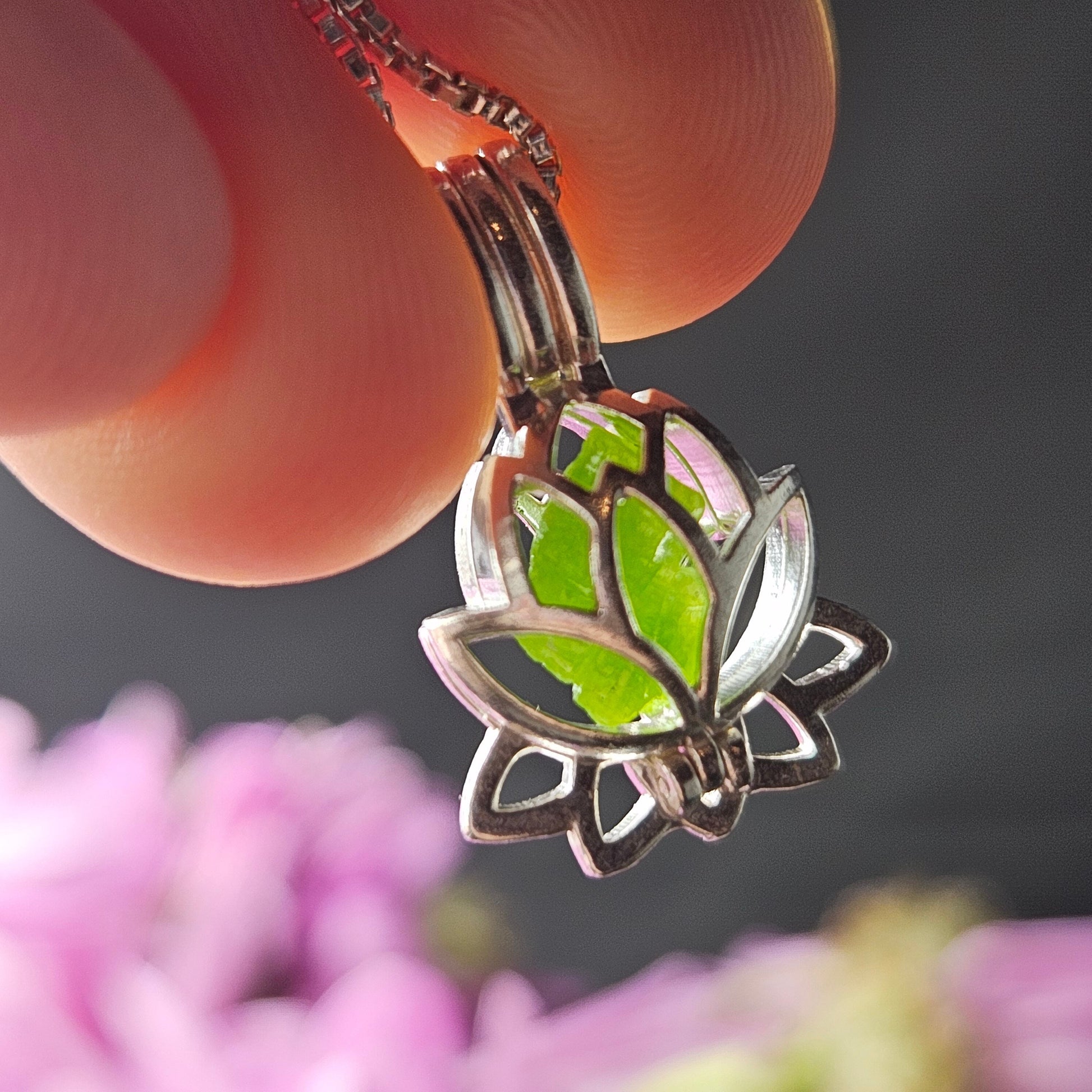The SILVER PLATED Lotus pendant measures approximately 20mm by 15mm. **Like with any plated piece of jewelry, the finish on this piece will fade. We recommend taking this pendant off for showering and sleeping to ensure its longevity. Check out our Sterling Silver Lotus for a precious metal option with a longer life.