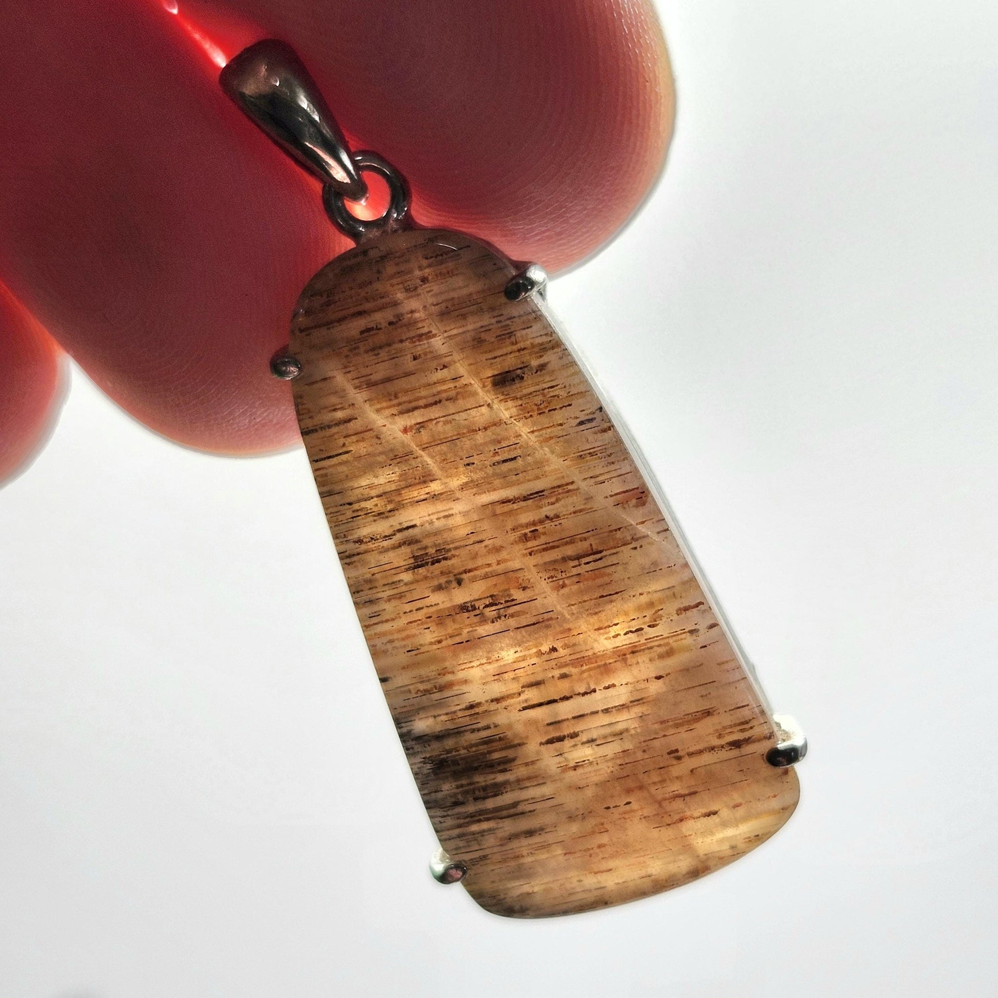 Mined from a single location Northern Australia, Lattice Sunstone — a sought-after crystal — is a natural phenomenon! This polished Sunstone gemstone exhibits strong flashes of shining, rainbow-colored lattice inclusions when held at an angle. This crystal has been handpicked and custom created into a sturdy piece of jewelry using .925 Sterling Silver. This pendant measures approximately 35mm by 15mm. The silver chain used in the photos is to help envision how this pendant will look while adorned but is not included in the listing.