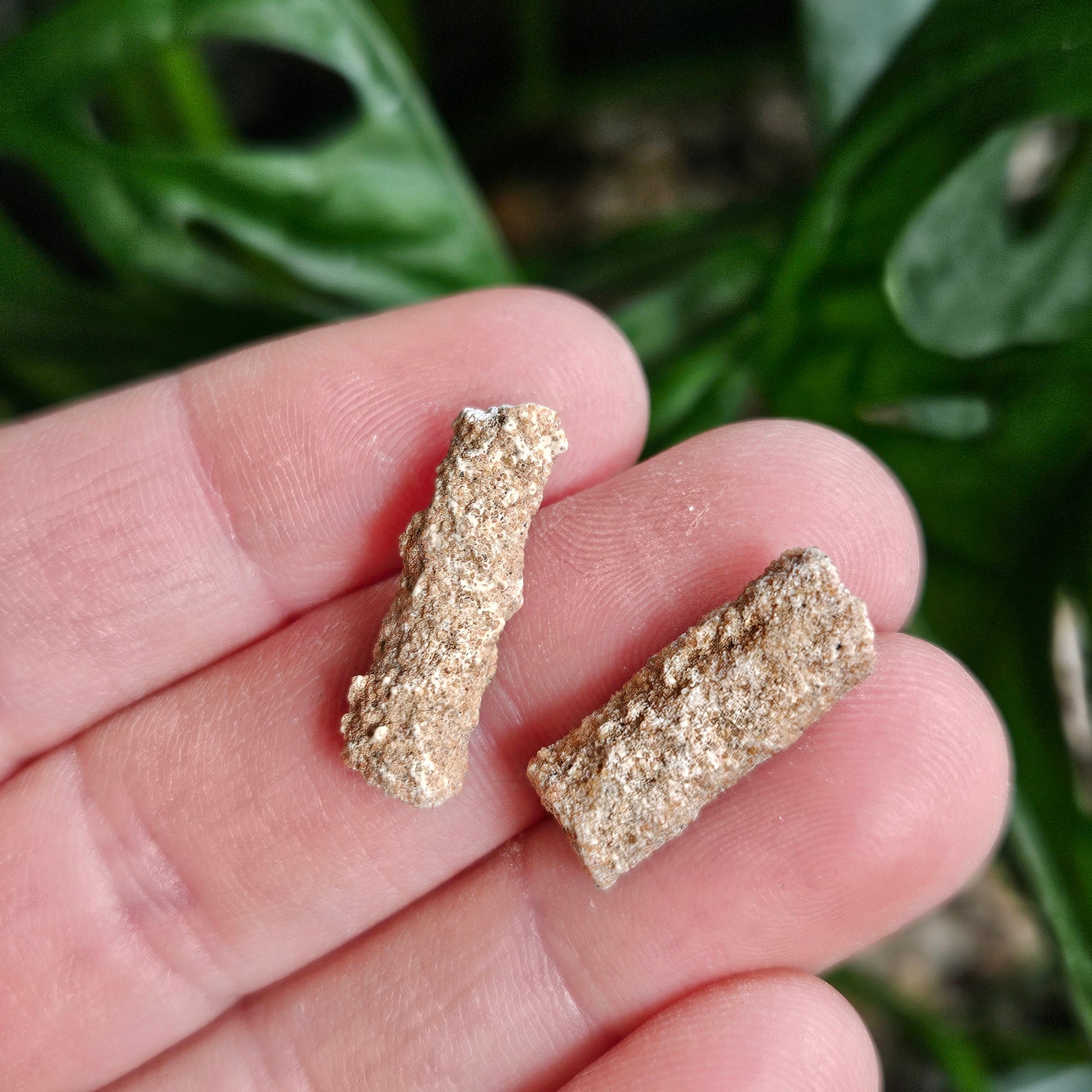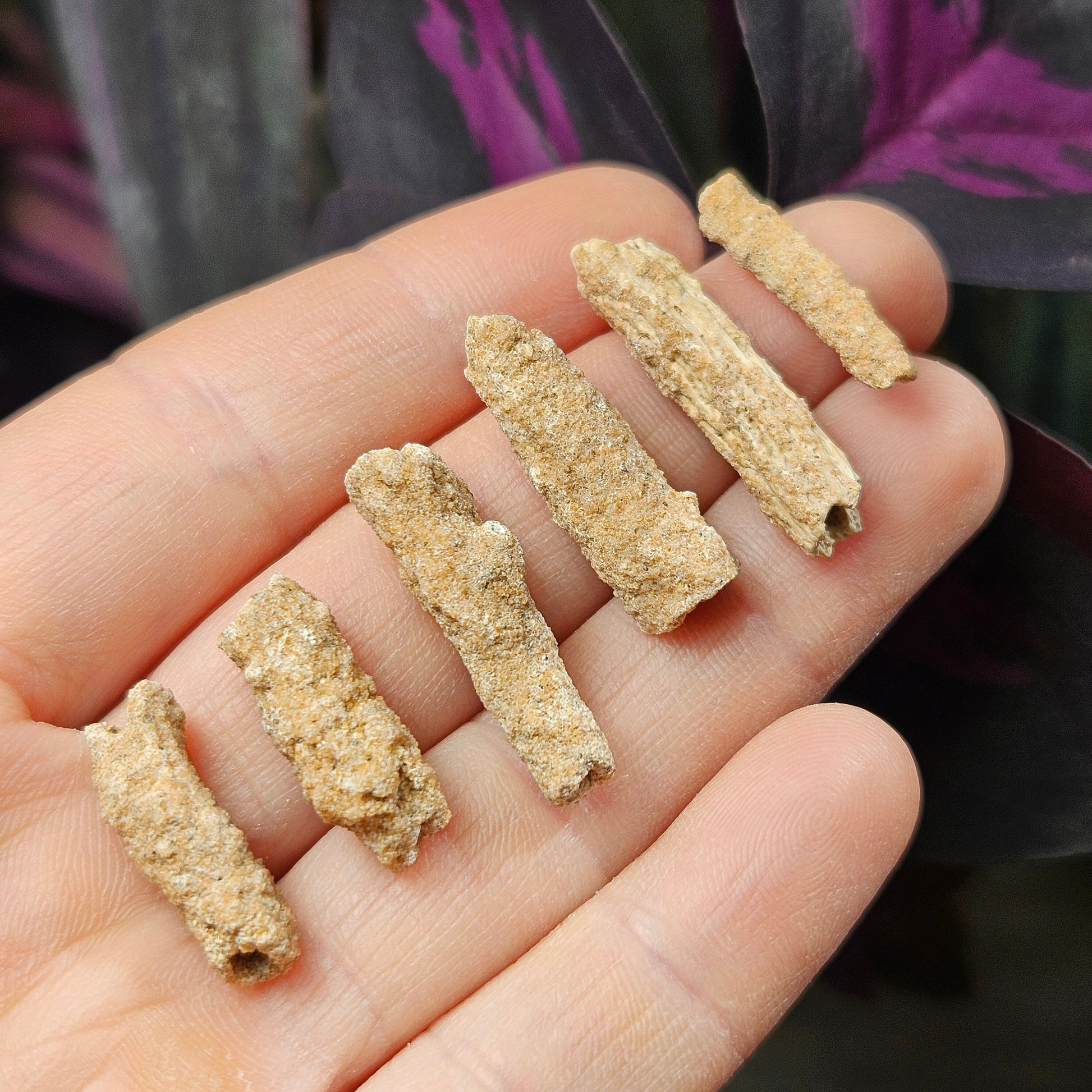 These Moroccan Fulgurites are a potent example of this rare, lightning bolt created material. They have a sandy color and a range of different formations - including natural tubes and half round shapes. Each specimen measures approximately .5 to 1 inch and up in an array of freeform natural shapes.