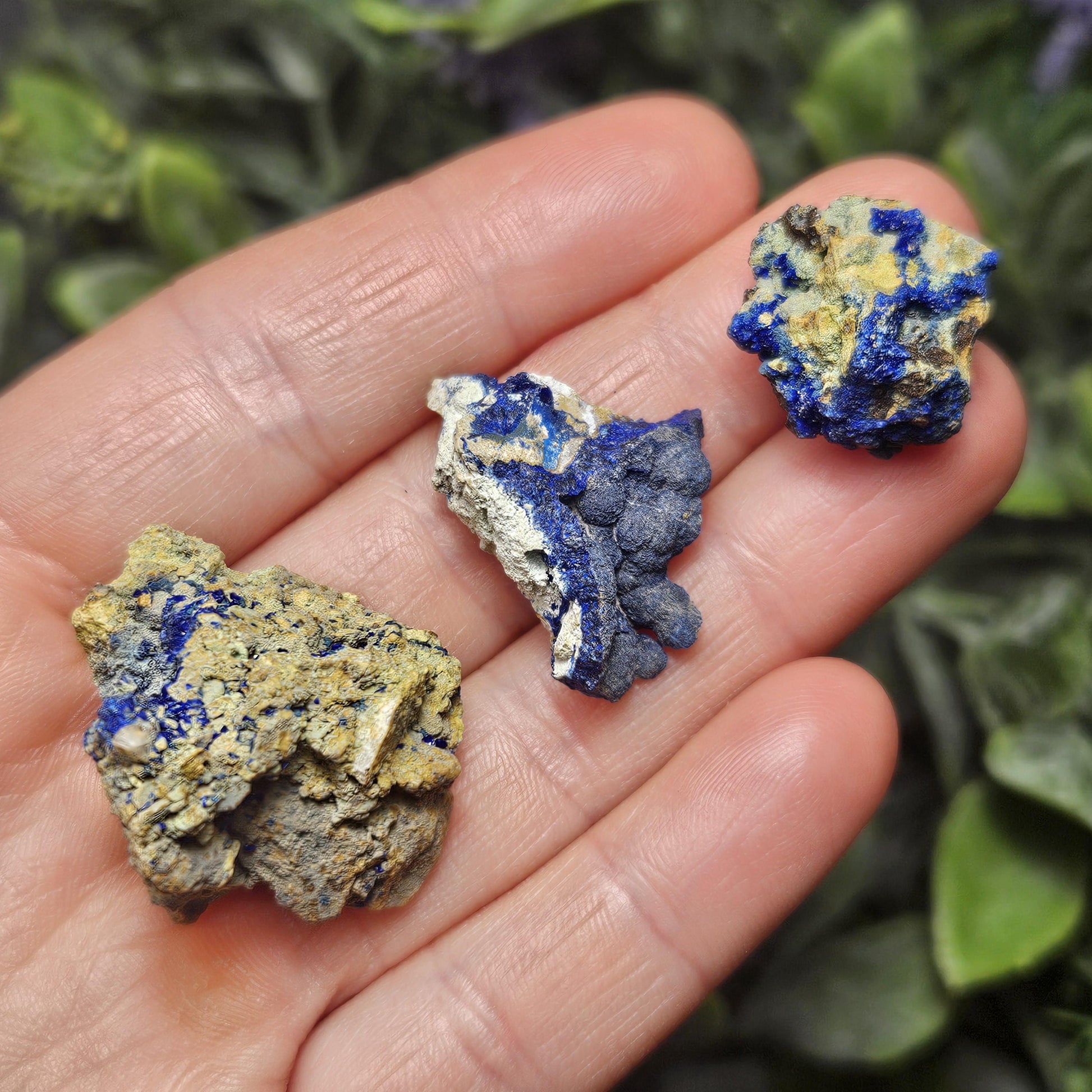 These raw specimens showcase brilliant blue Azurite crystals sitting atop a brown matrix. This rare material exhibits classic, azure pigment and may be coupled with small inclusions of green Malachite.