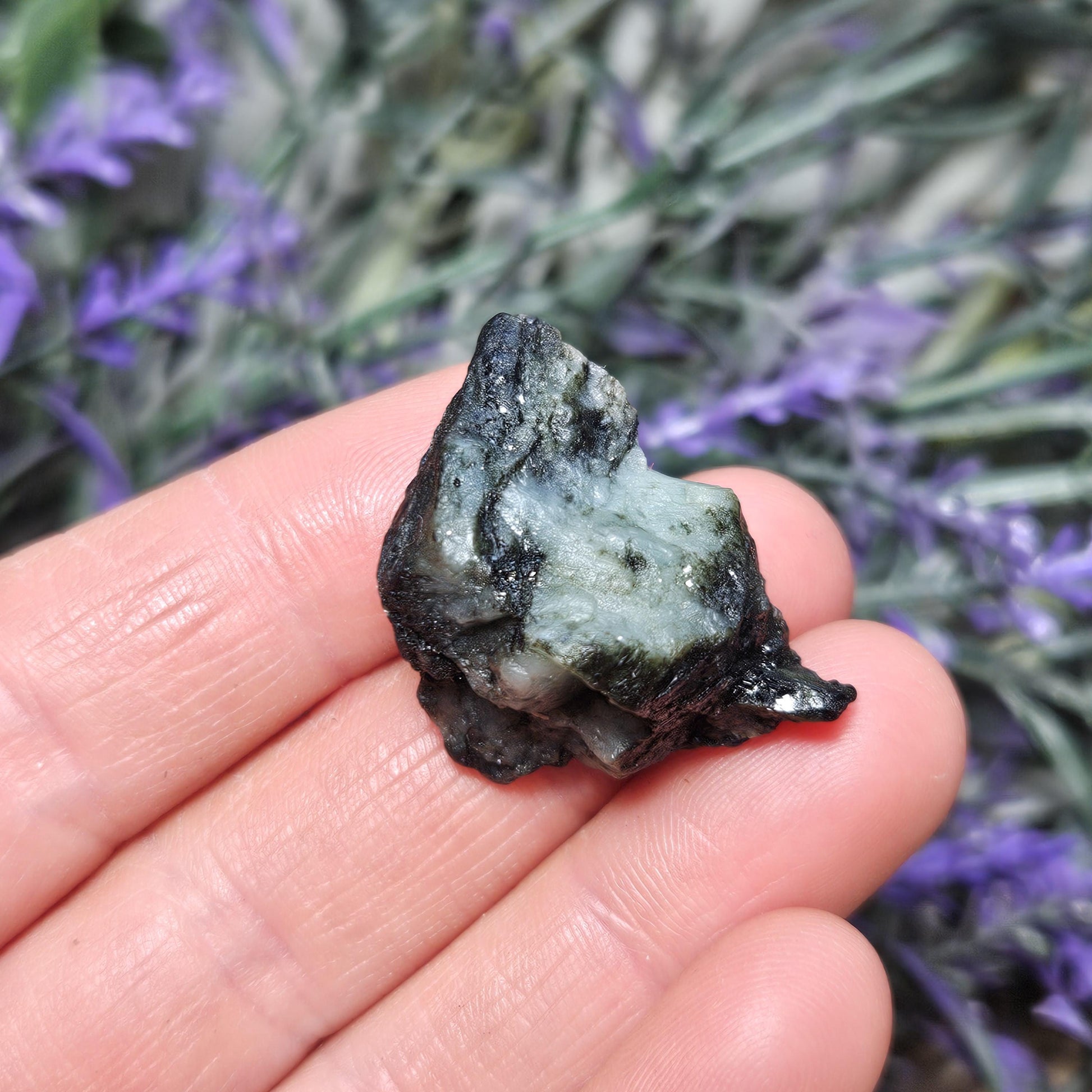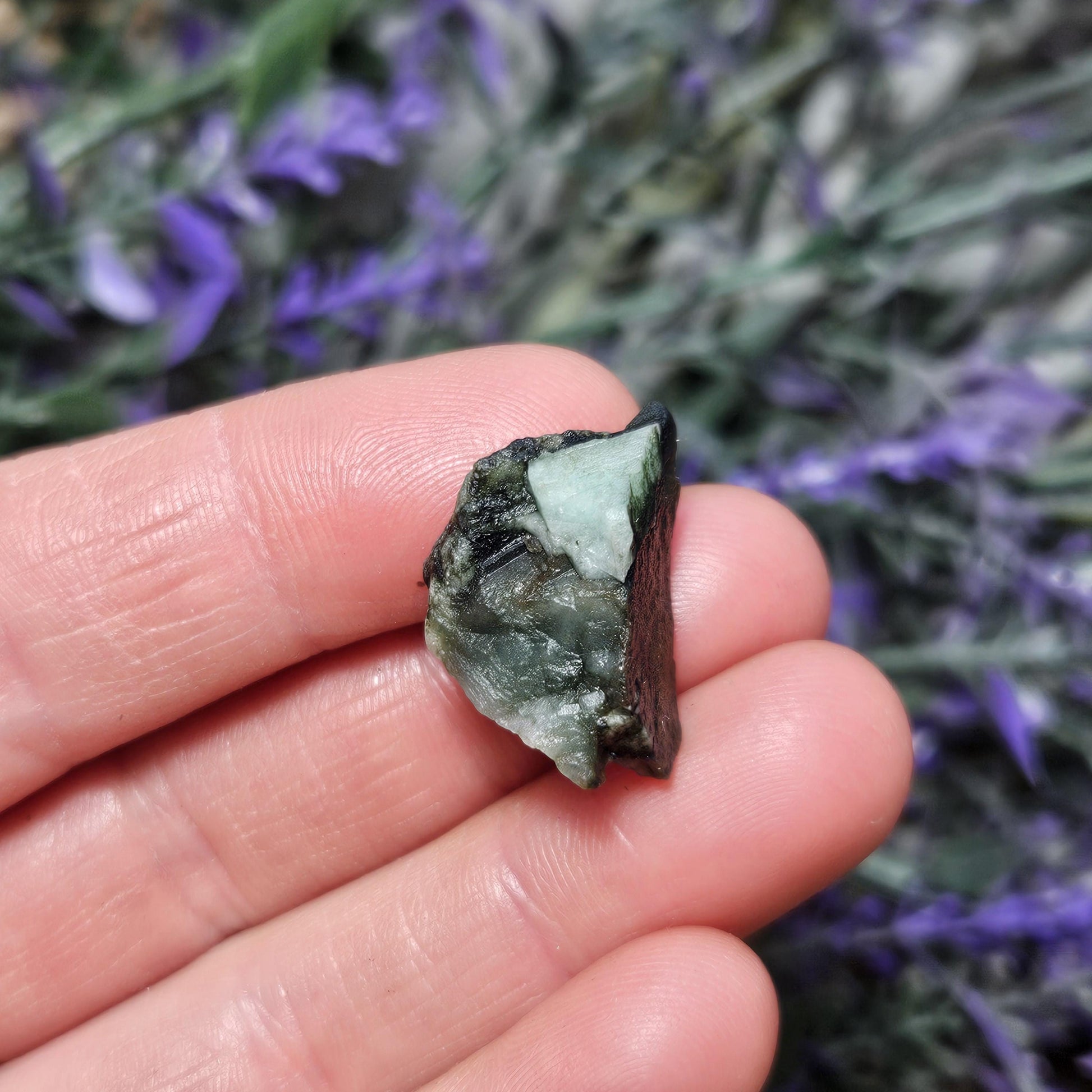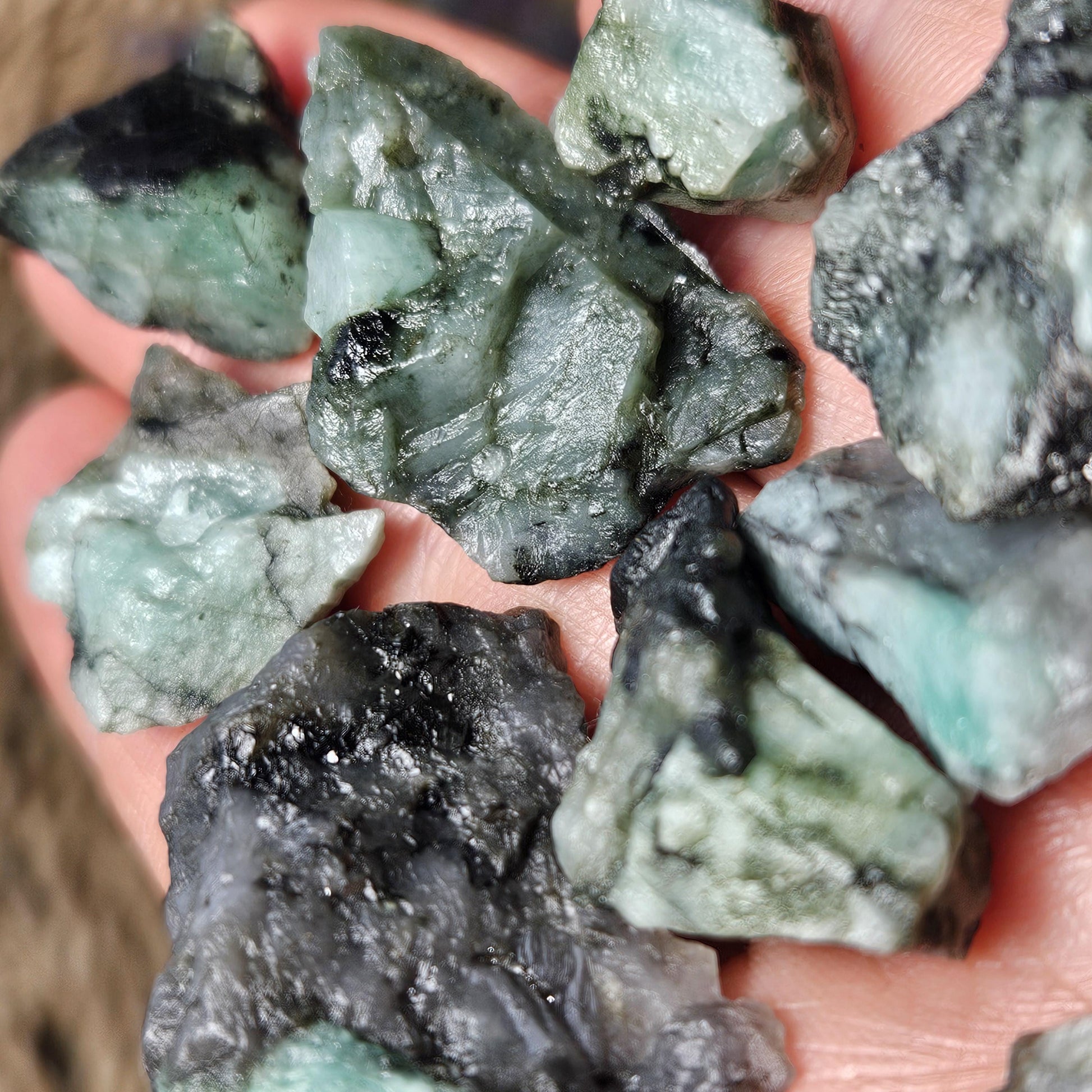 These natural Emerald crystals from Brazil display a classic green hue against a black matrix stone. There is a range of natural shapes, with each specimen having a unique character. Choose the size you prefer!