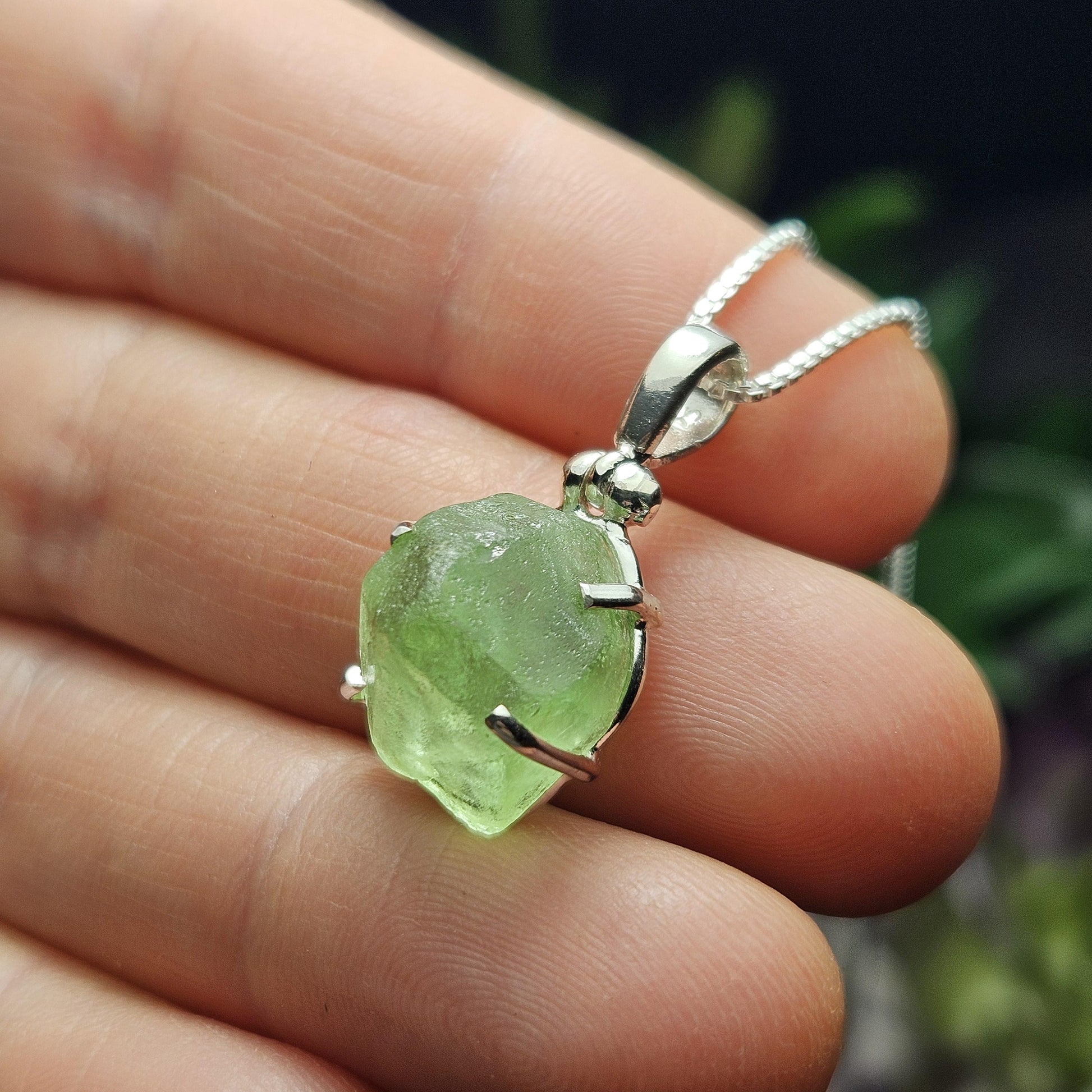Raw Peridot Crystal Necklace: Natural Terminated Peridot Pendant