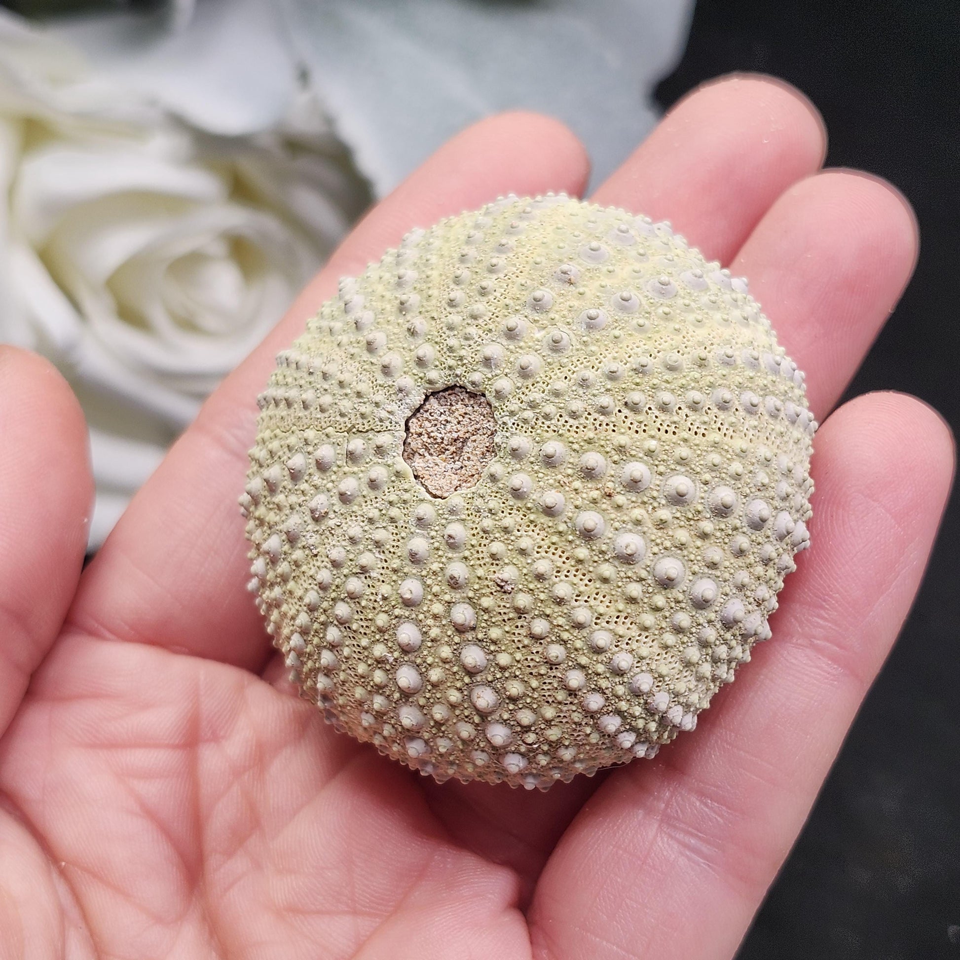 These Sea Urchin fossils from Morocco exhibit a finely textured surface and taupe coloring paired with a slight green tone. These fragile specimens are very delicate; they have been reinforced with a sandy cement mixture to help preserve them. We recommend gentle handling of these fossils to help ensure they will have a long life. Though each specimen is intact, small fractures or holes can be expected in these fragile specimens.