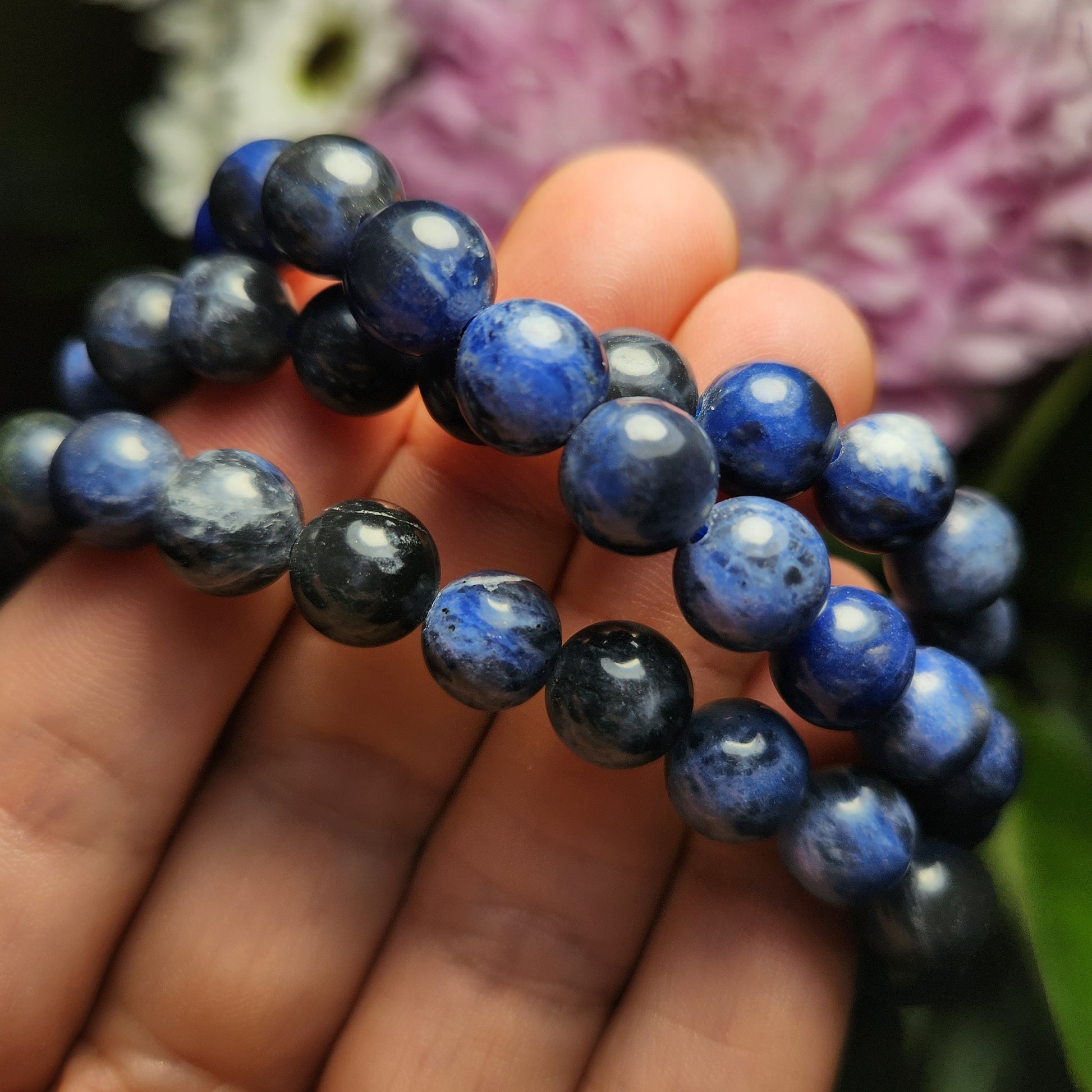 These Sodalite stretch bracelets are created with 8mm beads that have been polished to a high sheen. Each bracelet measures approximately 7 inches.