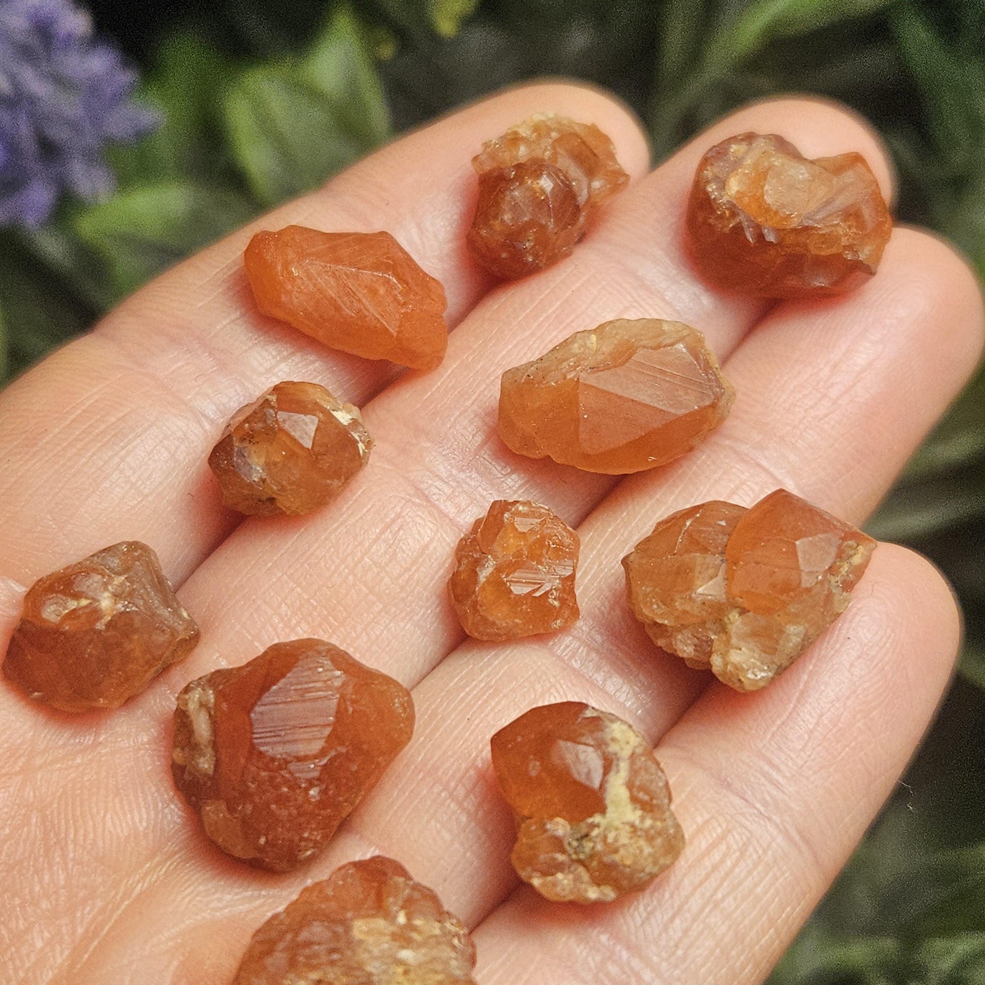 These high quality, raw Spessartine Garnets have deep orange coloring and distinct facets that show off their terminated faces. Each one has a point of attachment to its host stone and may include natural cluster formations, other mineral inclusions and other unique characteristics. These raw Spessartine Garnet crystals are from the Balochistan region in Pakistan.