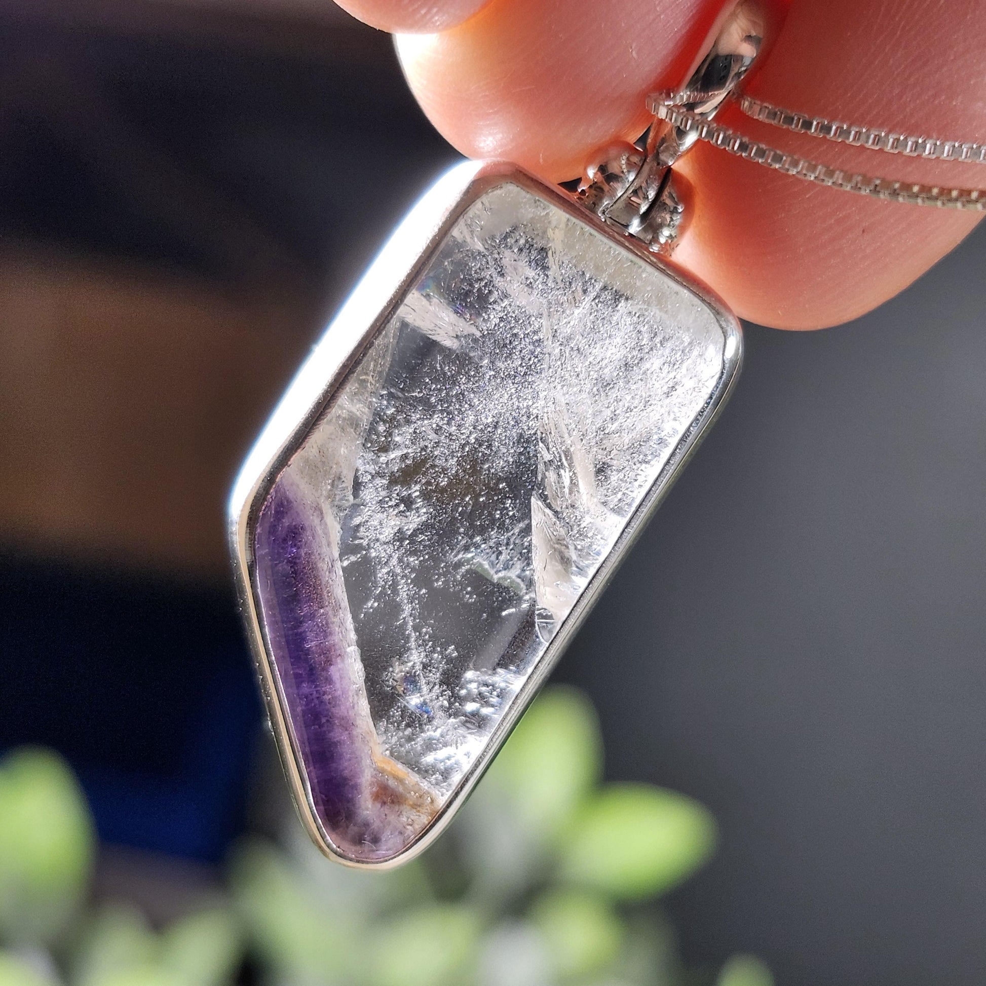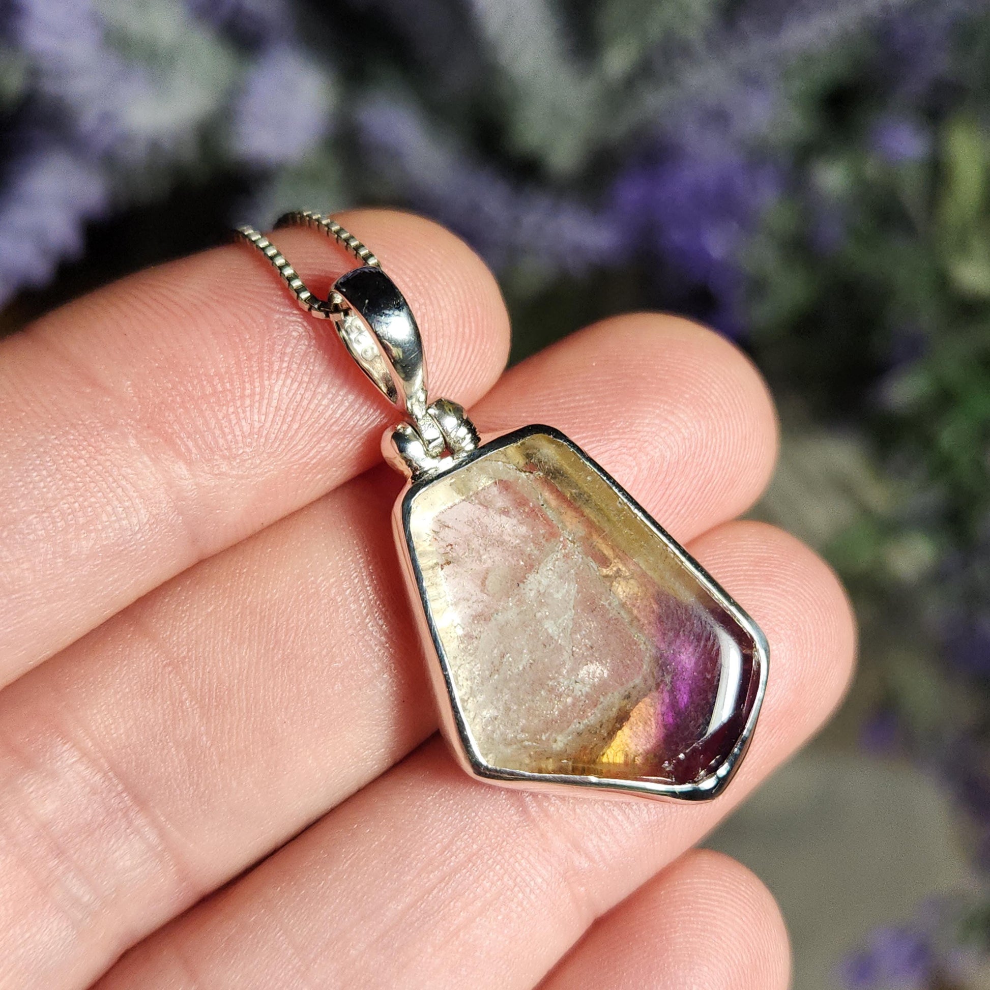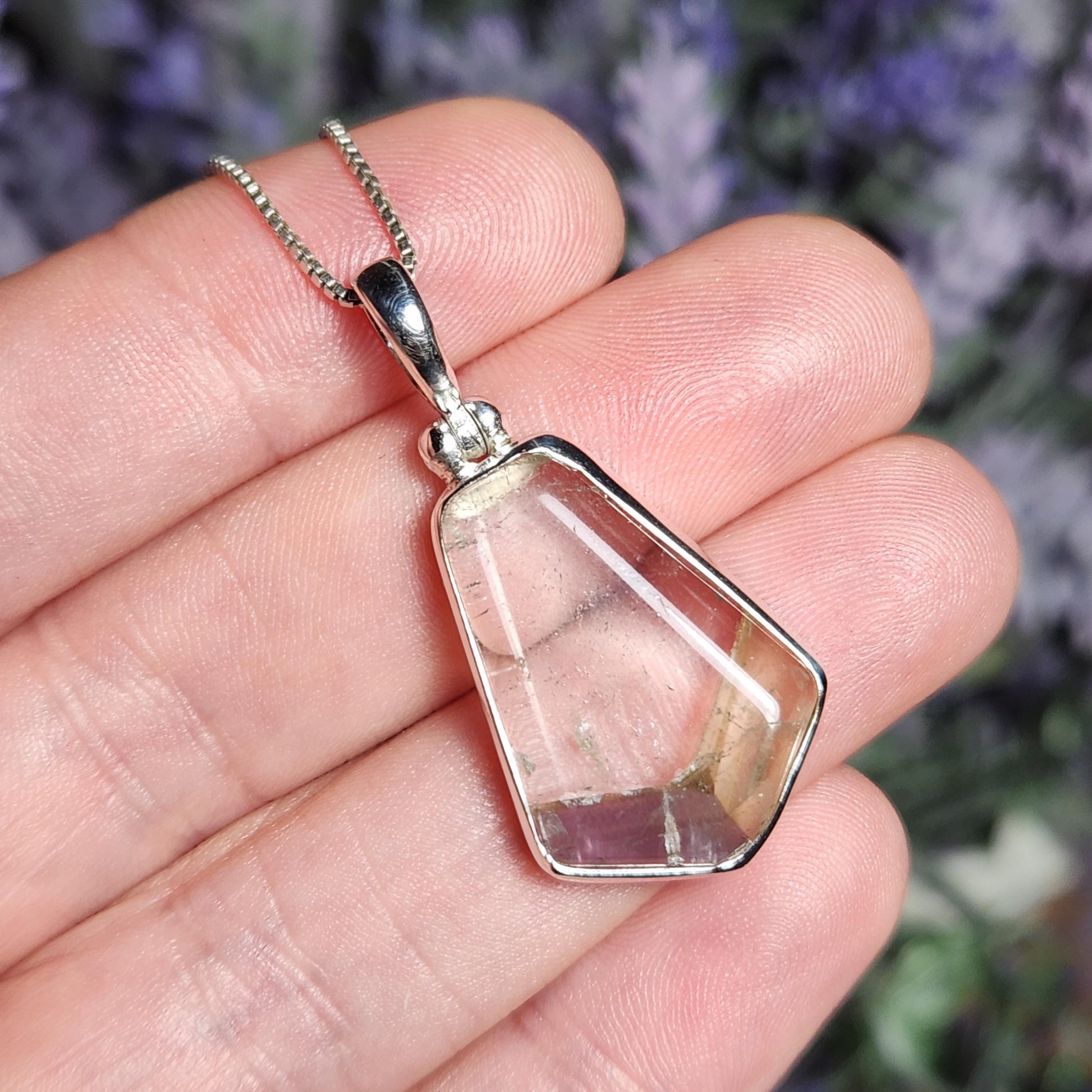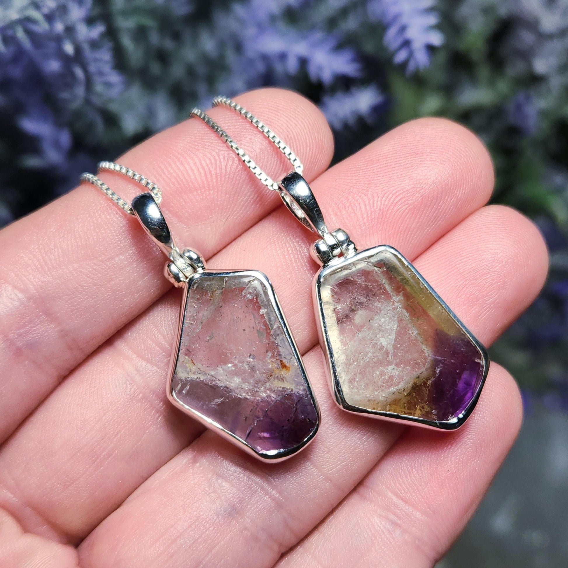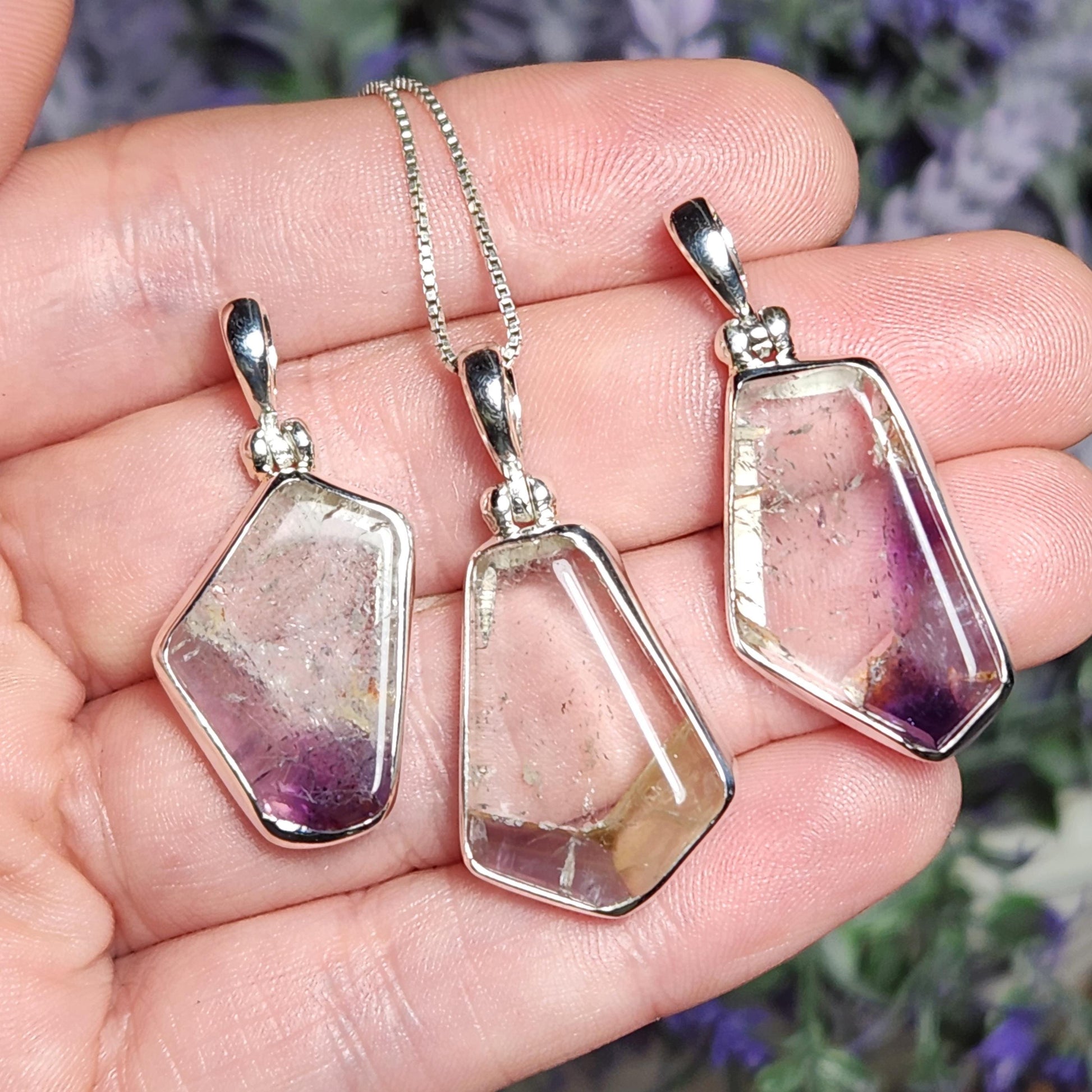 These Super 7 crystals exhibit translucence that shows off the unique color zoning and mineral inclusions within. These specimens may contain small abrasions on their polished surfaces. Each crystal has been custom created into a sturdy piece of jewelry using .925 Sterling Silver. Each pendant measures approximately 25mm by 15mm - these measurements are meant to give a general idea of size; the actual dimensions of the pendant you receive may vary slightly. The silver chain used in the photos is to help envision how this pendant will look while adorned but is not included in the listing.