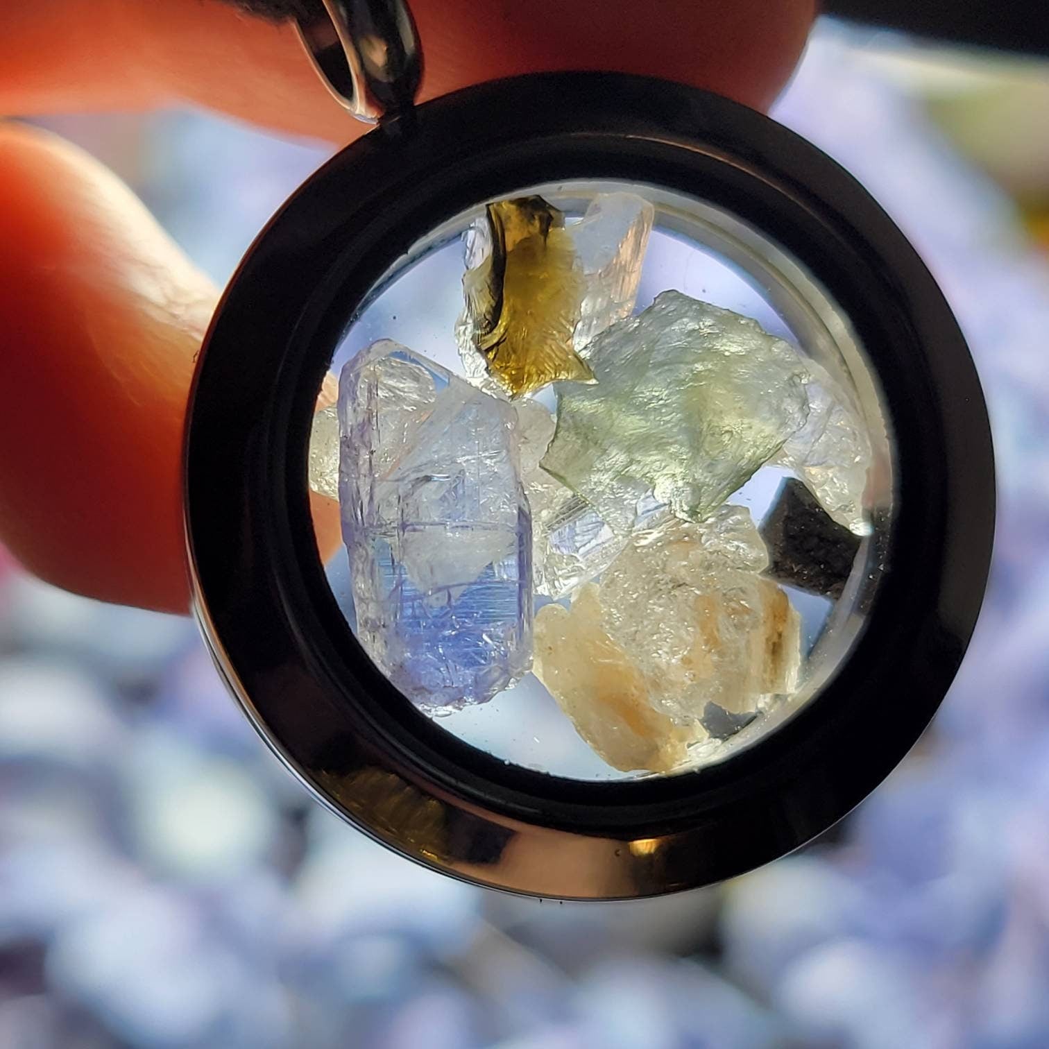 🌀The TEARDROP option will contain a locket pendant that measures approximately 49mm by 38mm and holds raw crystals a bit larger than the round option.