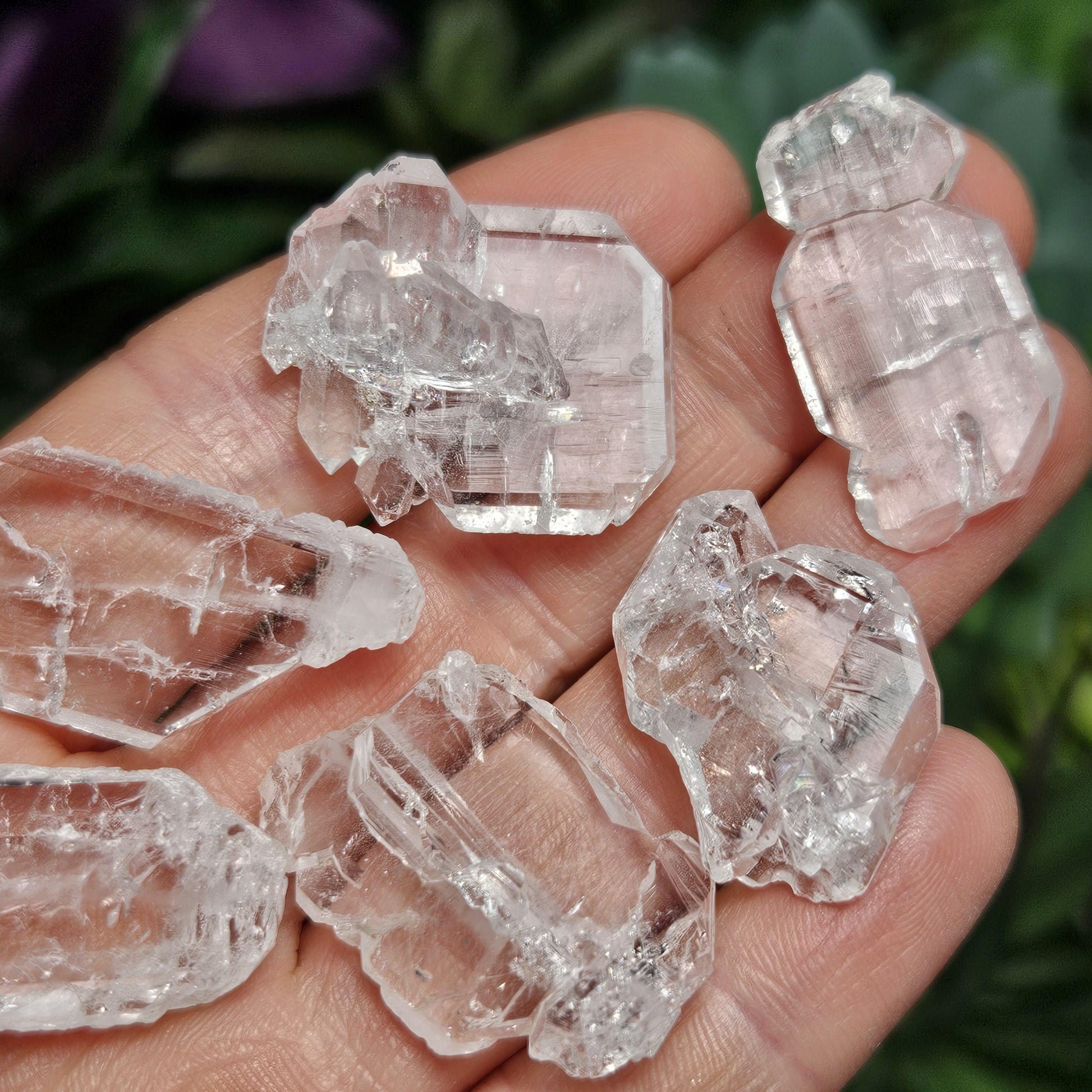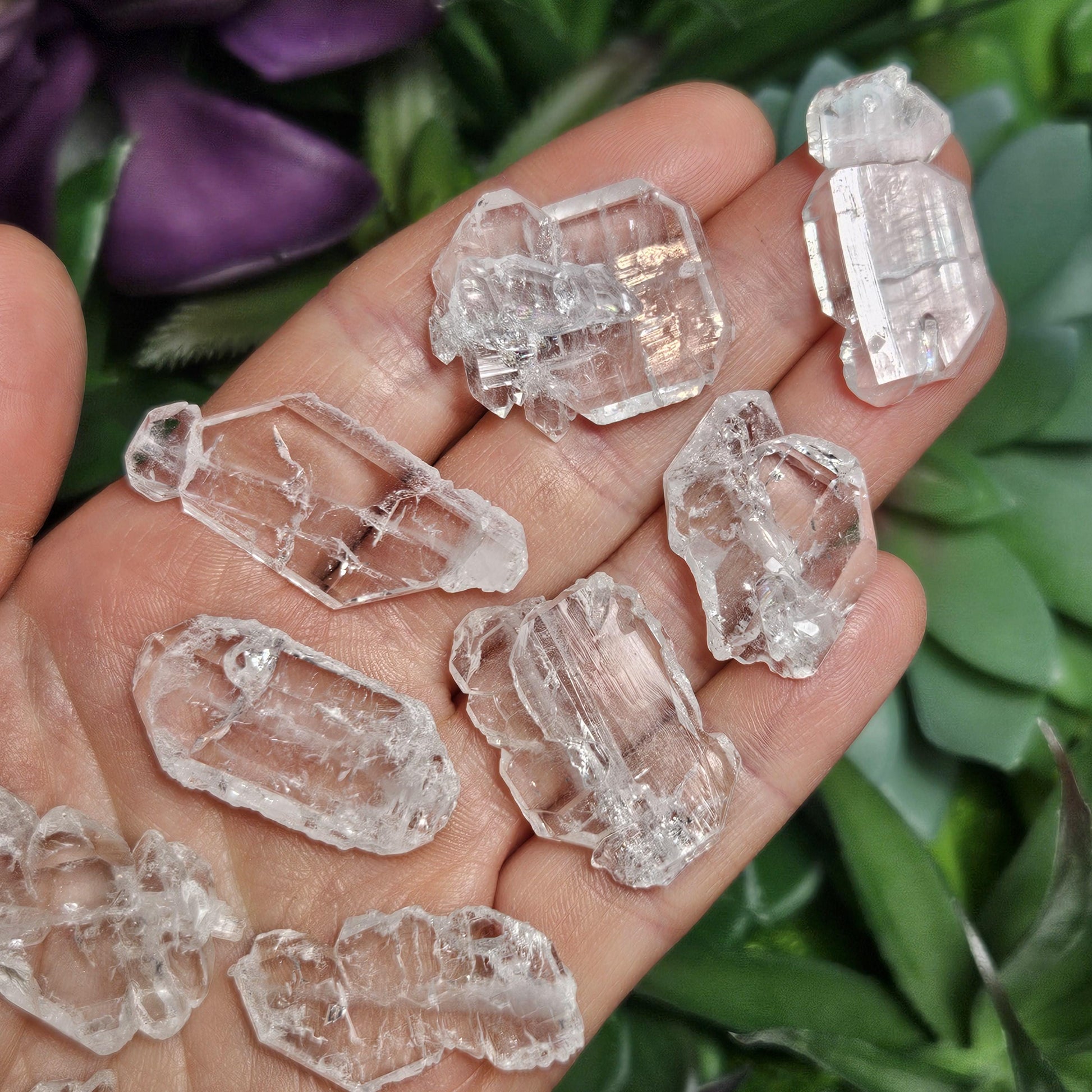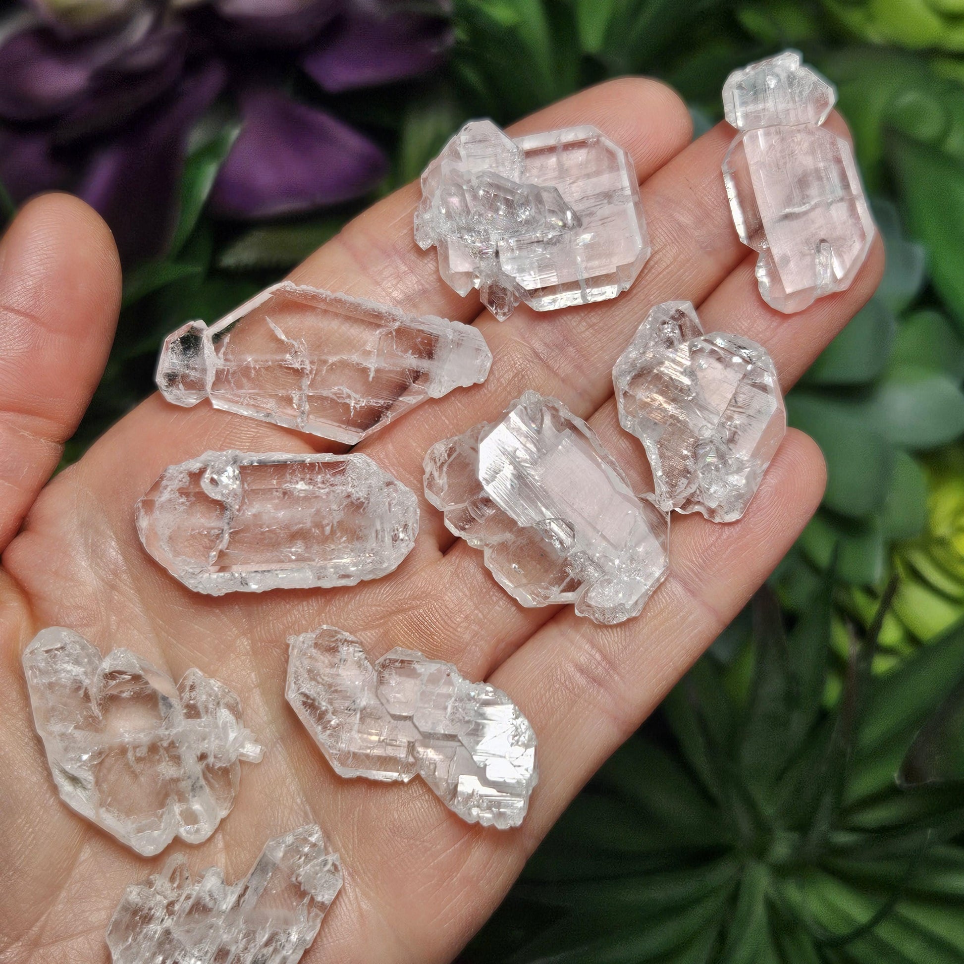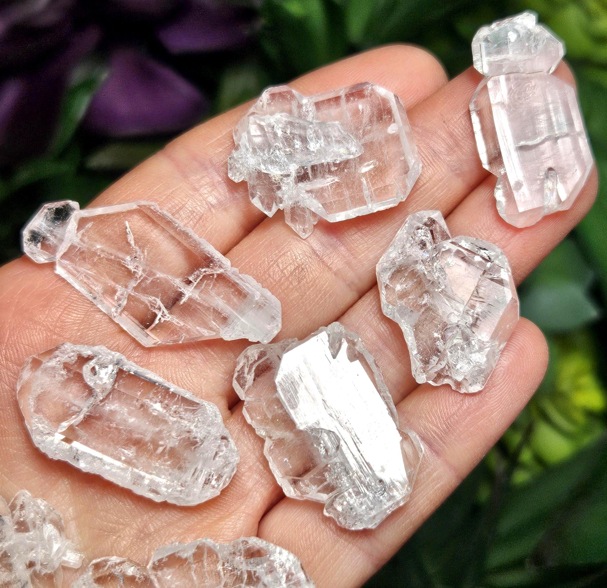 These raw crystals, from the Skardu region of the Himalayan Mountain range, exhibit terminated points and distinct tabular shapes. Each one has unique multi-facets and many showcase growth lines and tabular growth, classic to this high energy crystal. Some of these have a smoky hue, and many are clear - with all of them having distinct translucence.
