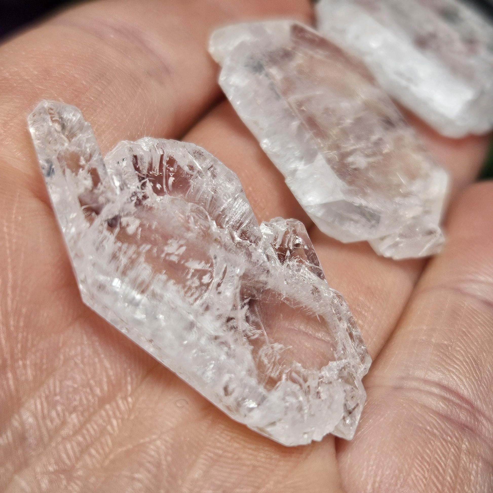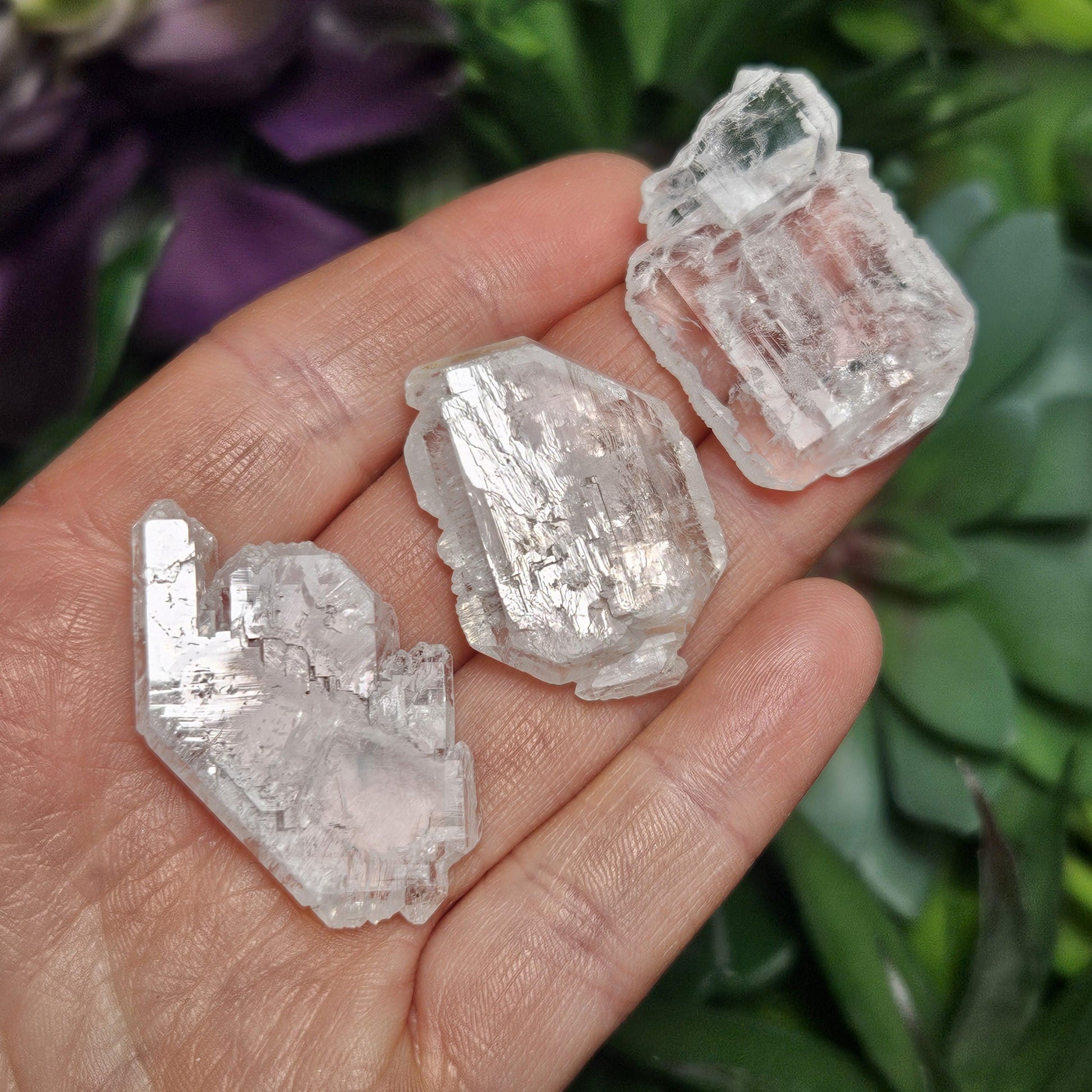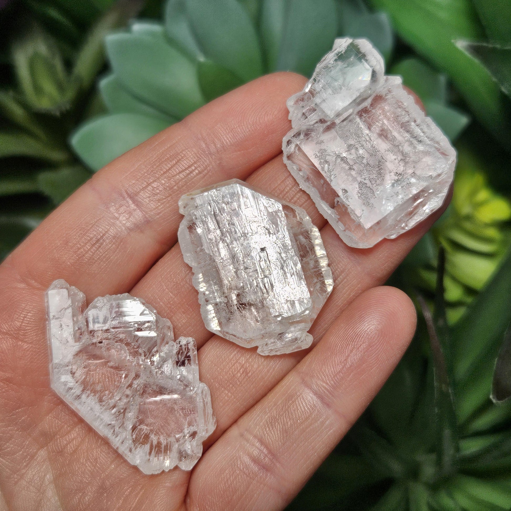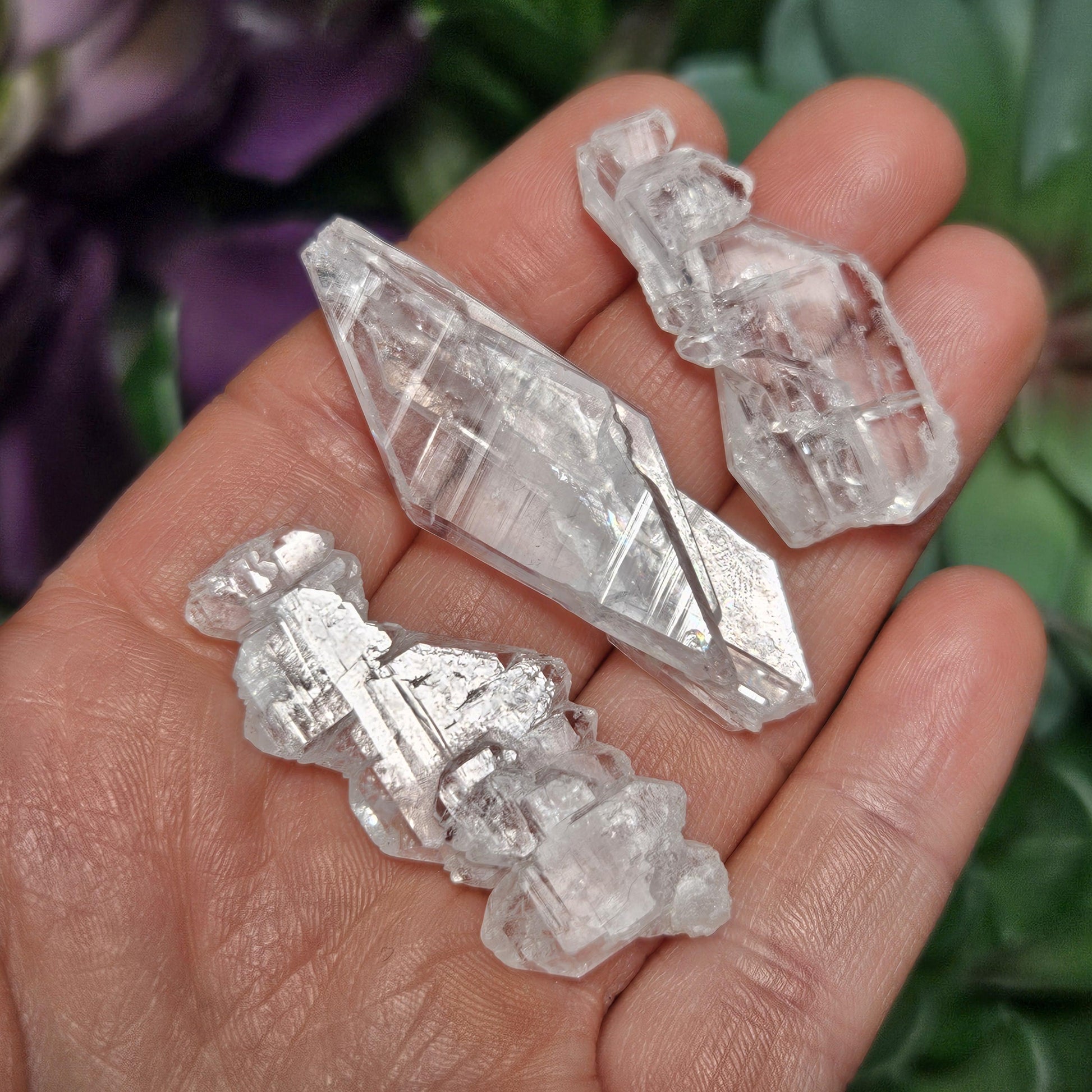 These raw crystals, from the Skardu region of the Himalayan Mountain range, exhibit terminated points and distinct tabular shapes. Each one has unique multi-facets and many showcase growth lines and tabular growth, classic to this high energy crystal. Some of these have a smoky hue, and many are clear - with all of them having distinct translucence.