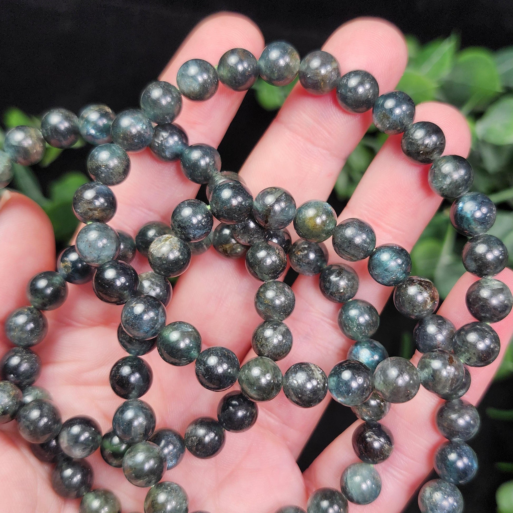 These Kyanite stretch bracelets are created with 7-8mm beads that have been polished to a high sheen. Each bracelet measures approximately 7 inches.