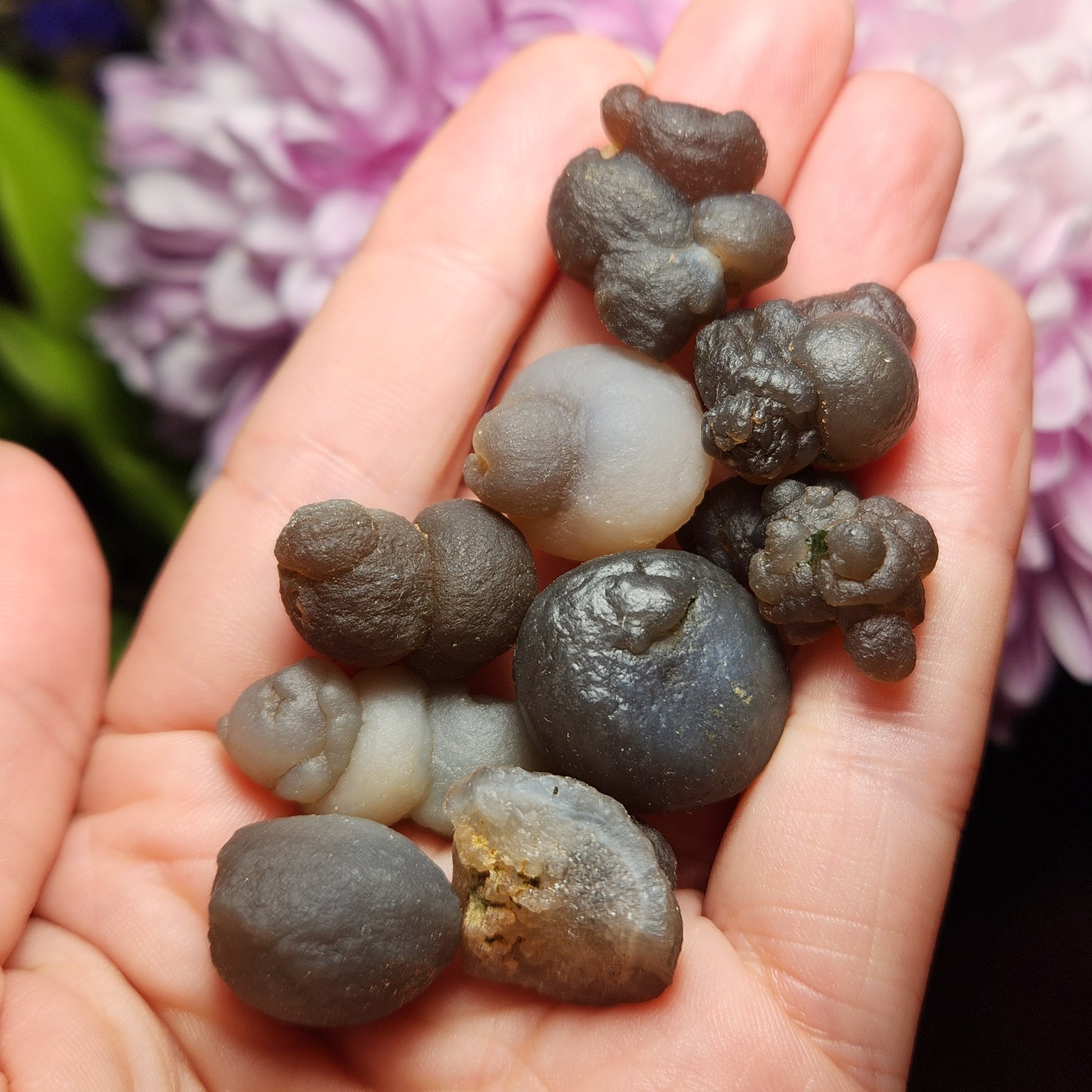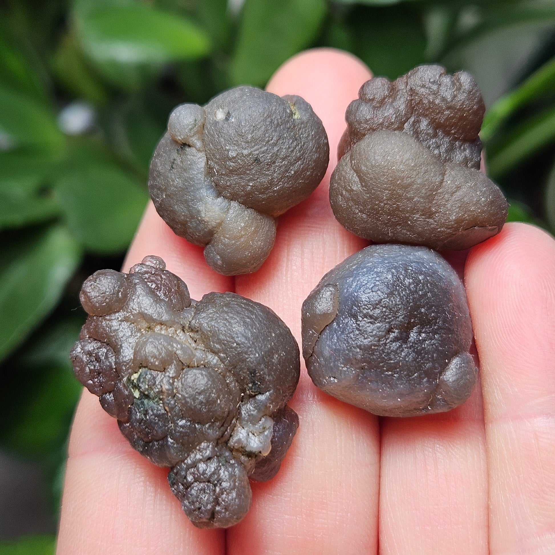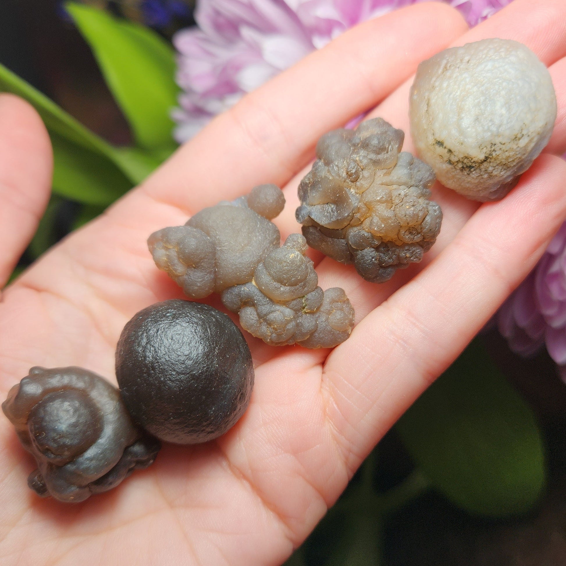 These unique Truffle Chalcedony nodules display tones of grey-brown and exhibit a natural surface texture. They have amazing botryoidal growth, with bubbling formations and rounded shapes.