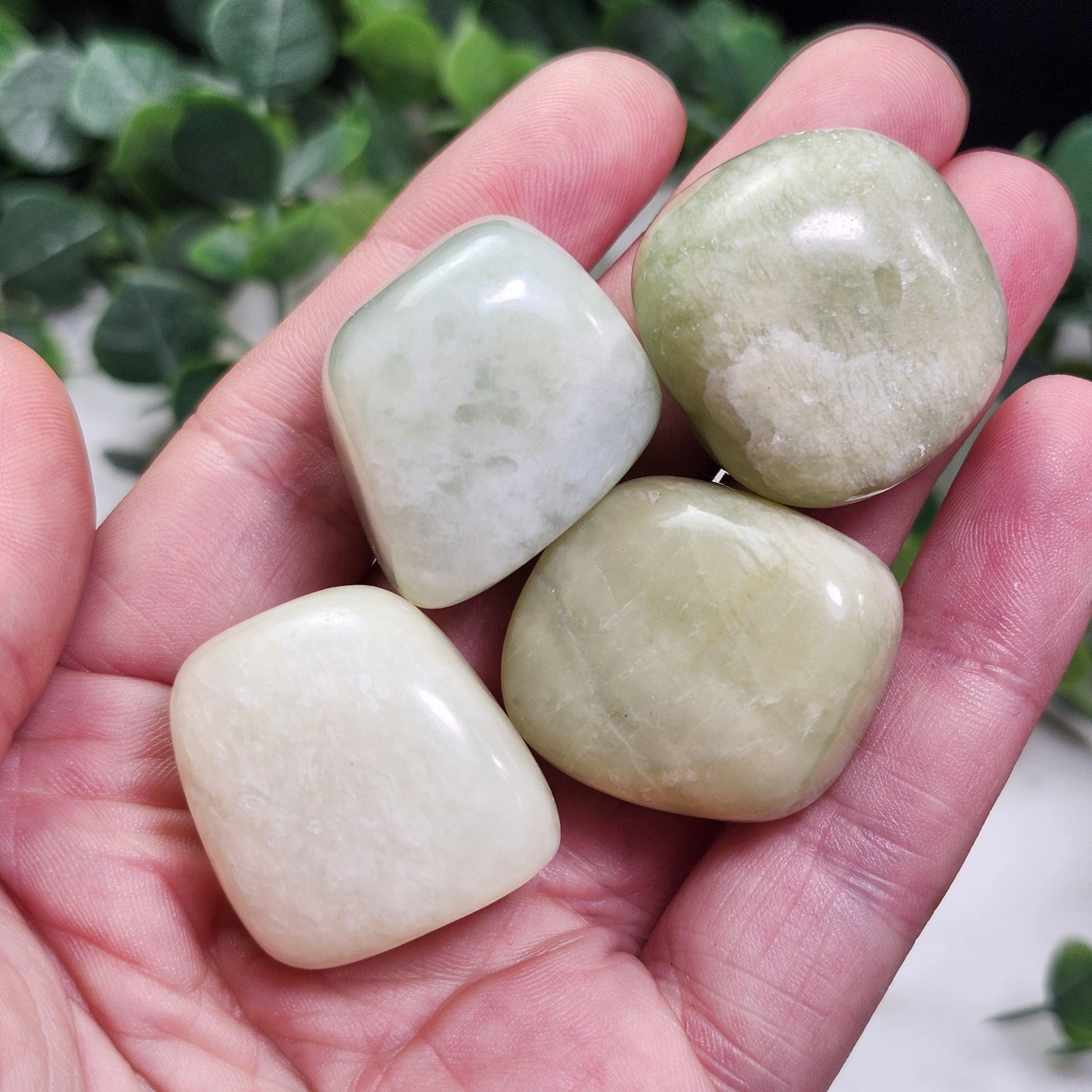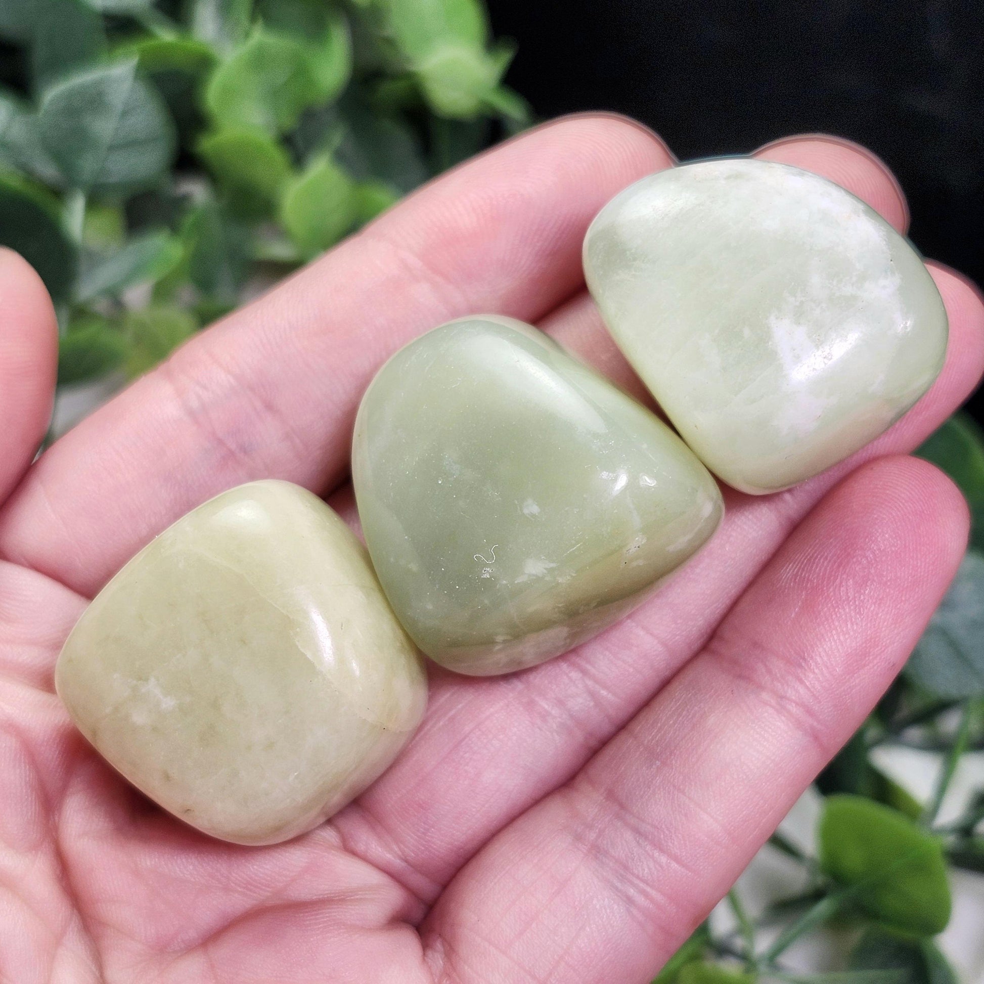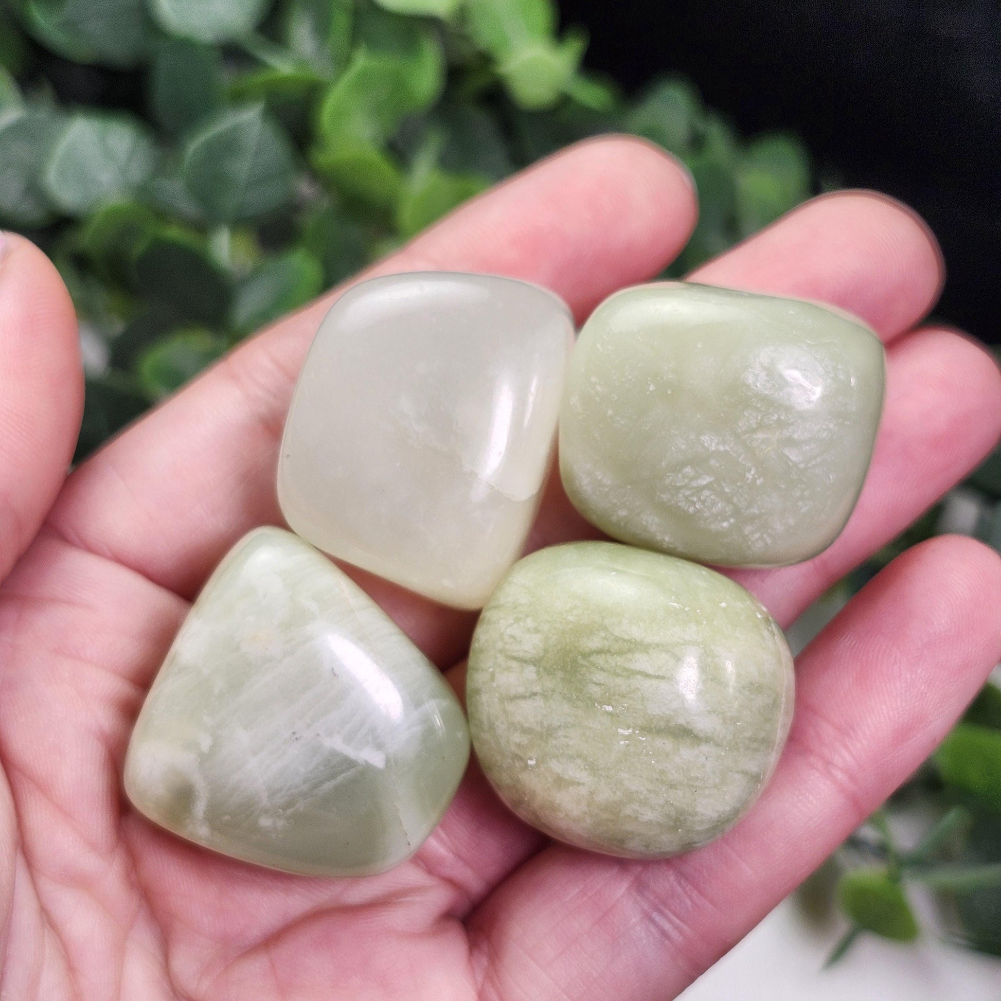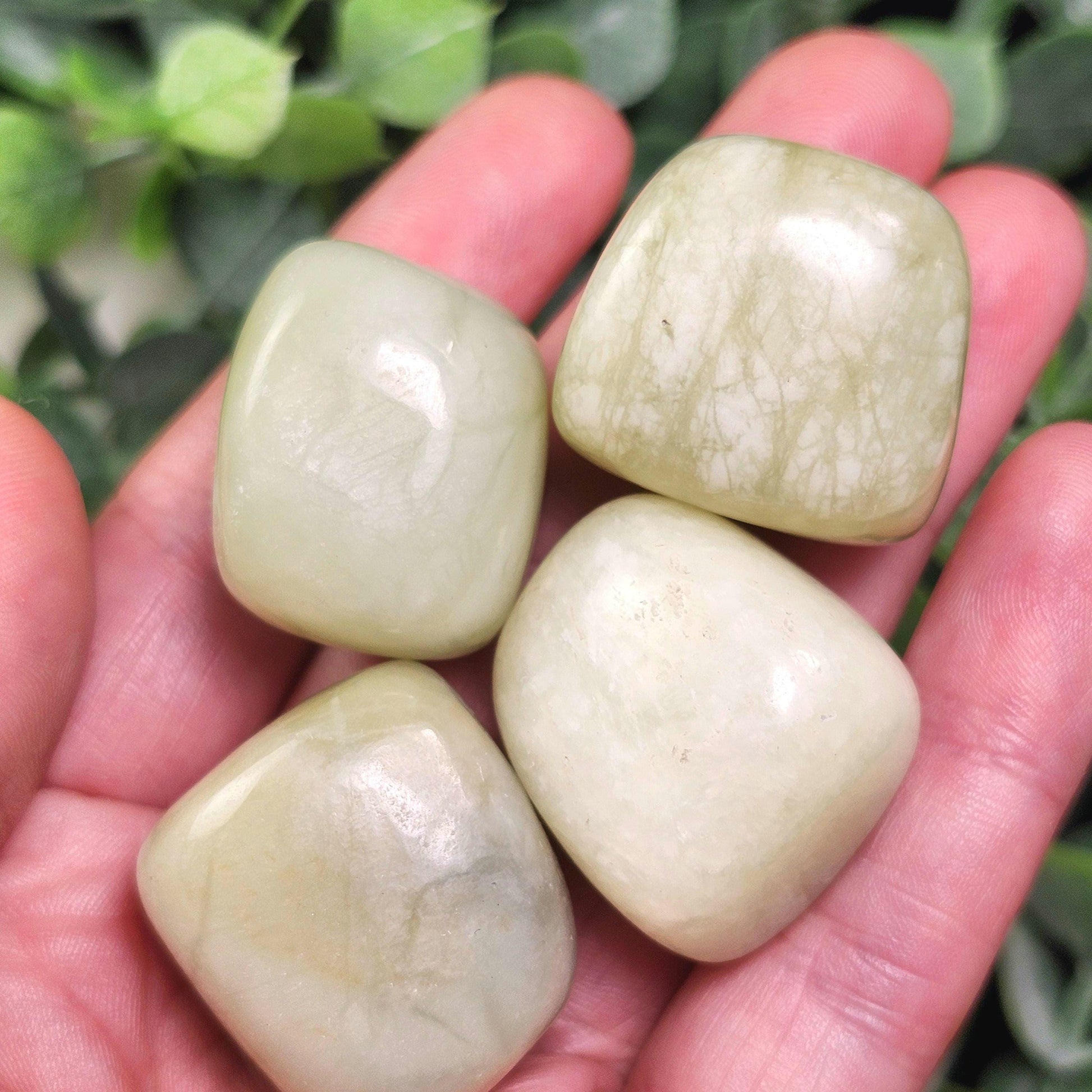 These Chinese Jade stones exhibit a variety of pale green tones and have been tumbled to a smooth polish. Each specimen measures approximately 1 inch.
