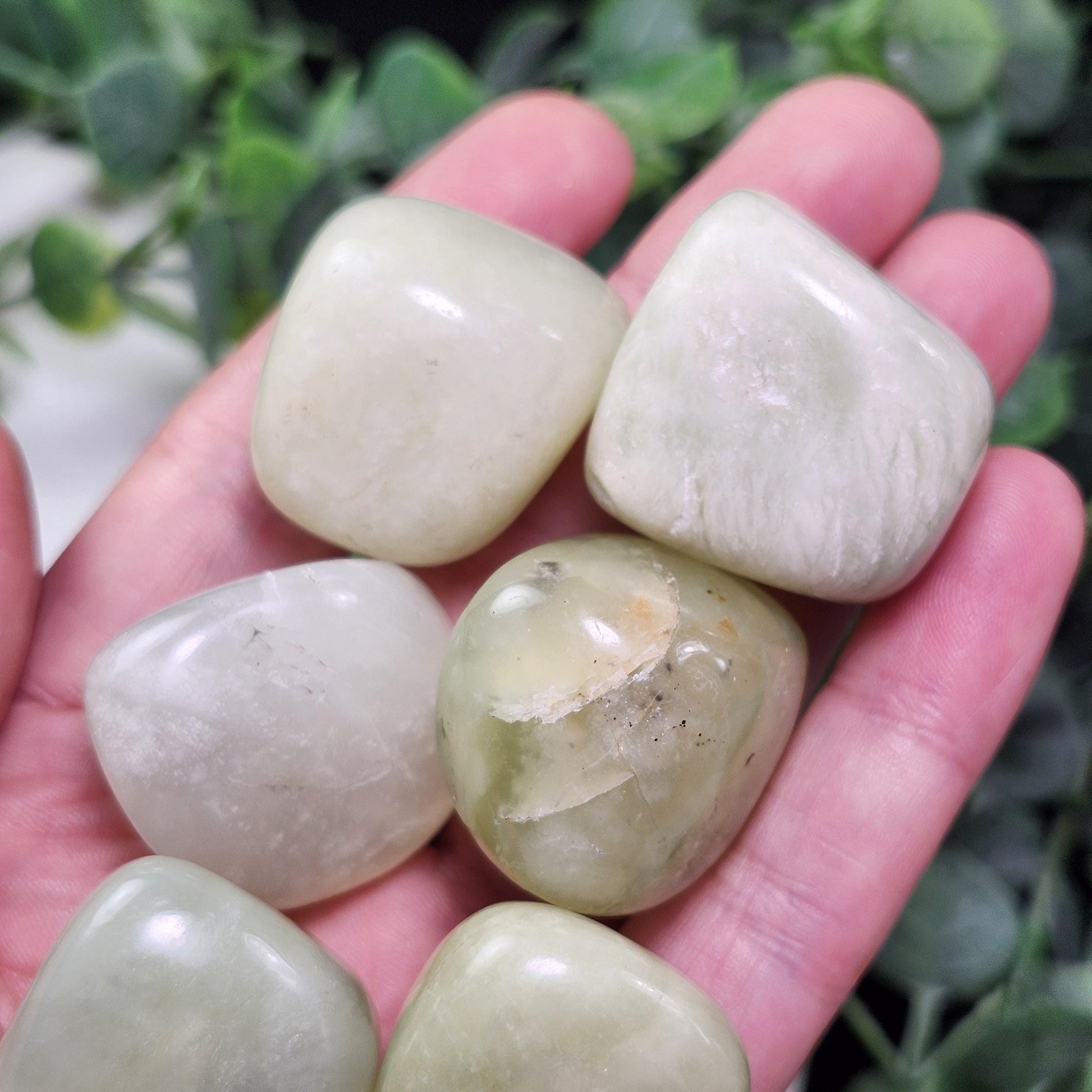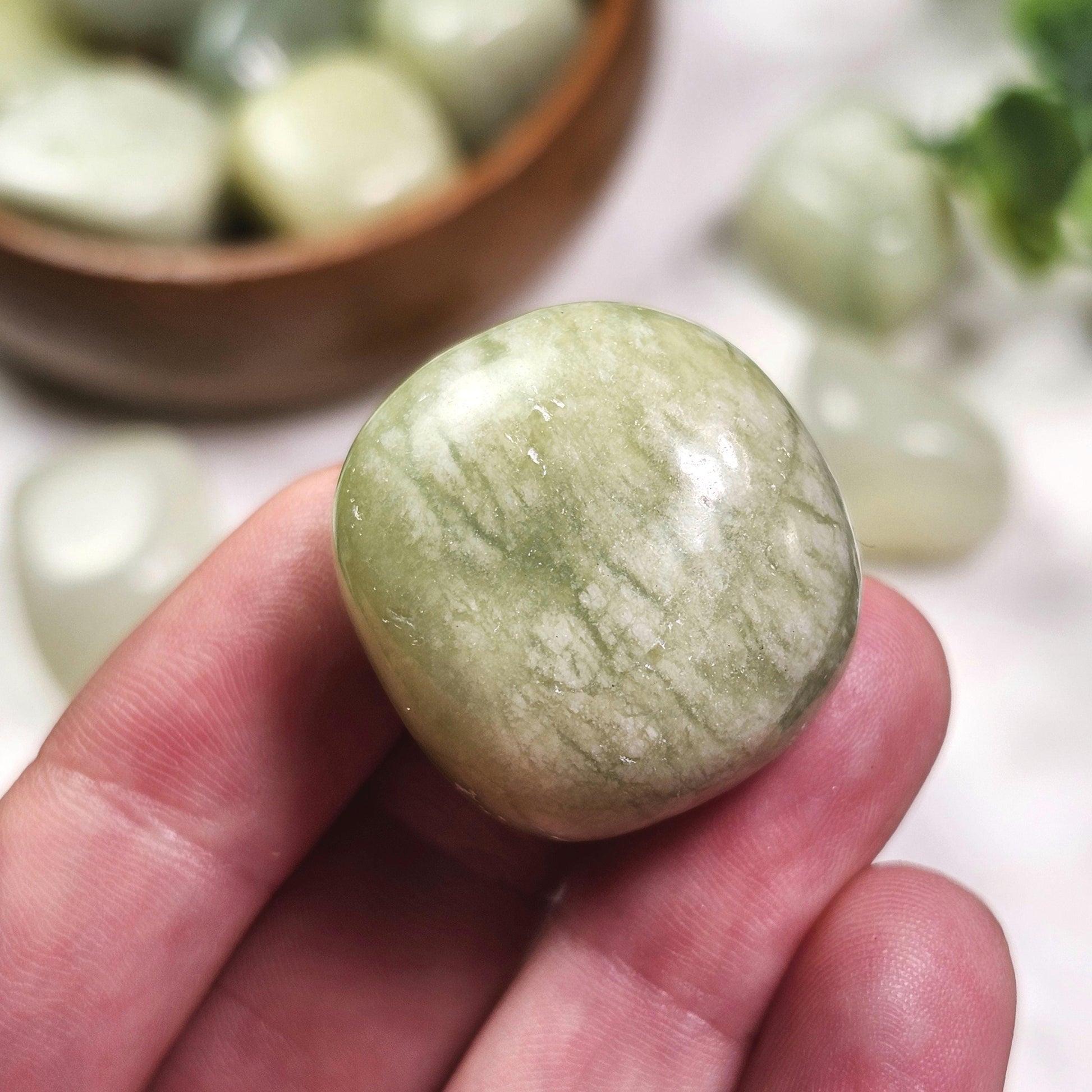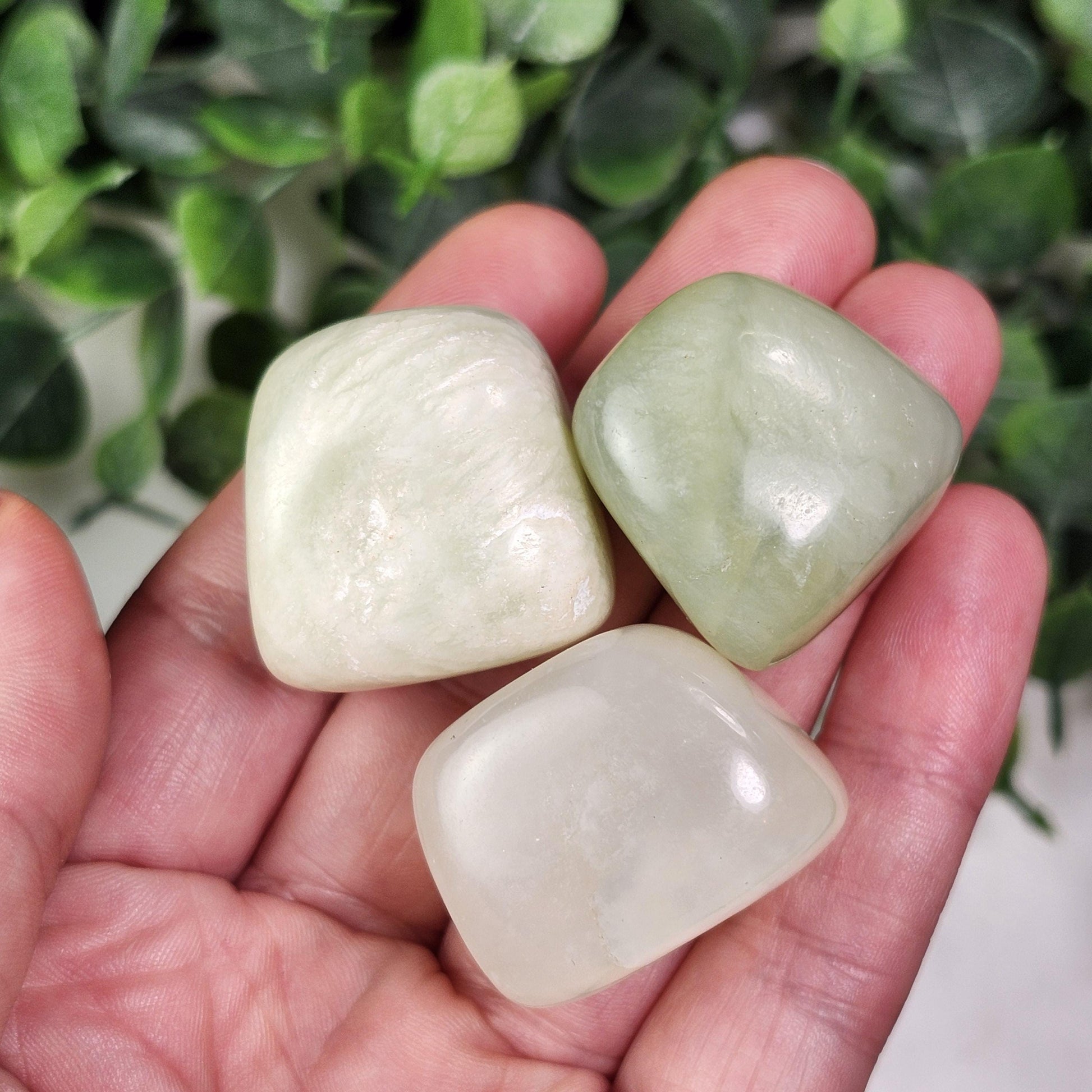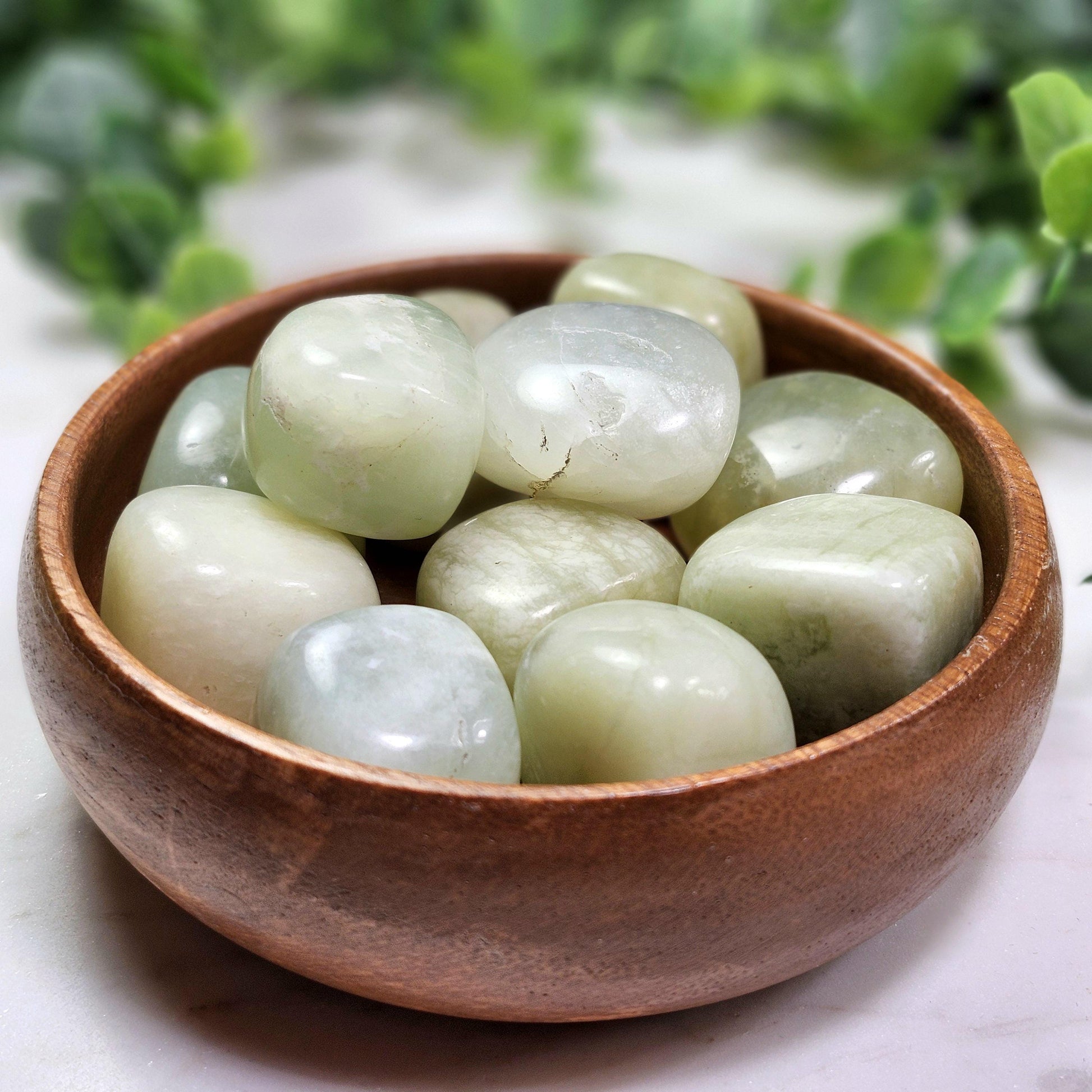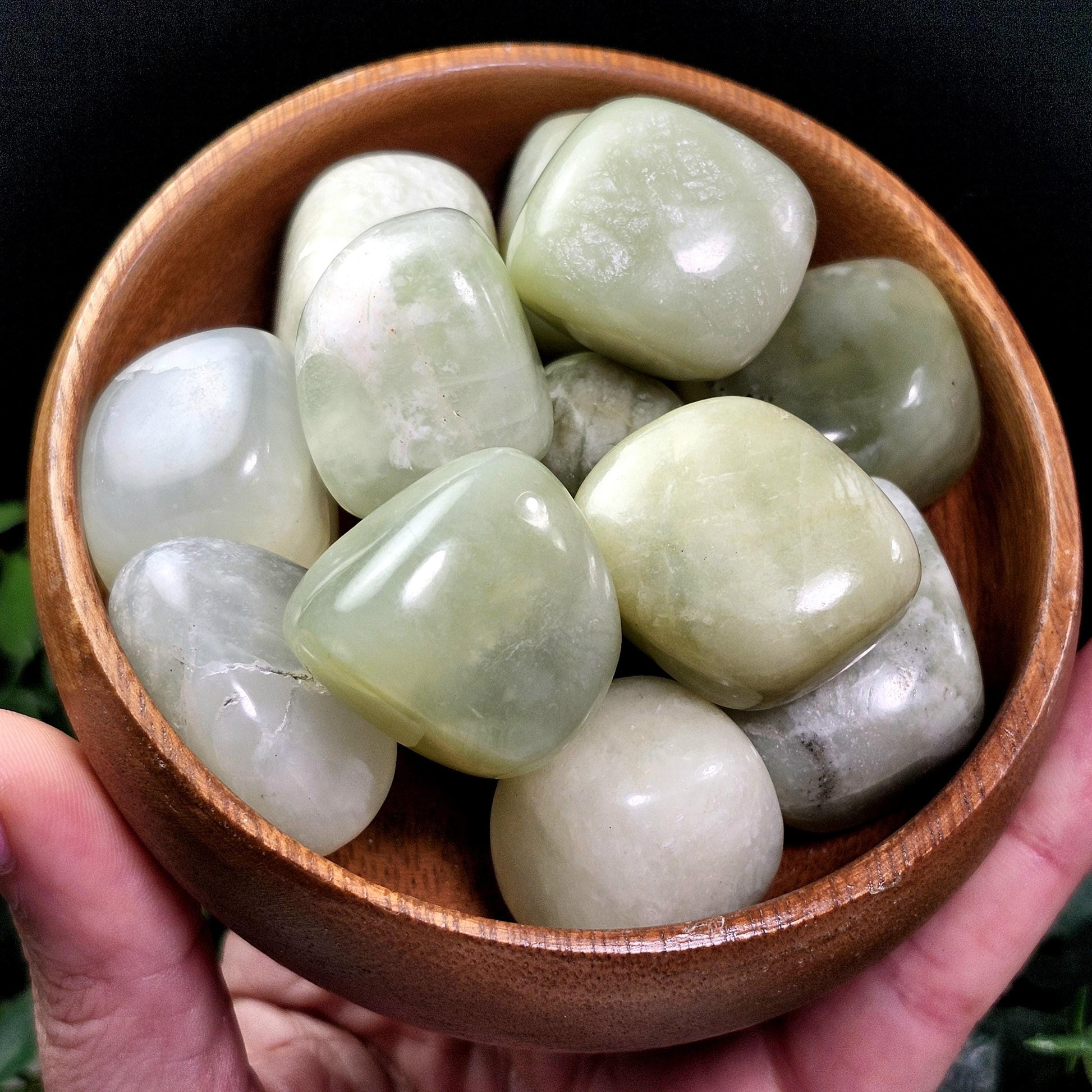 These Chinese Jade stones exhibit a variety of pale green tones and have been tumbled to a smooth polish. Each specimen measures approximately 1 inch.