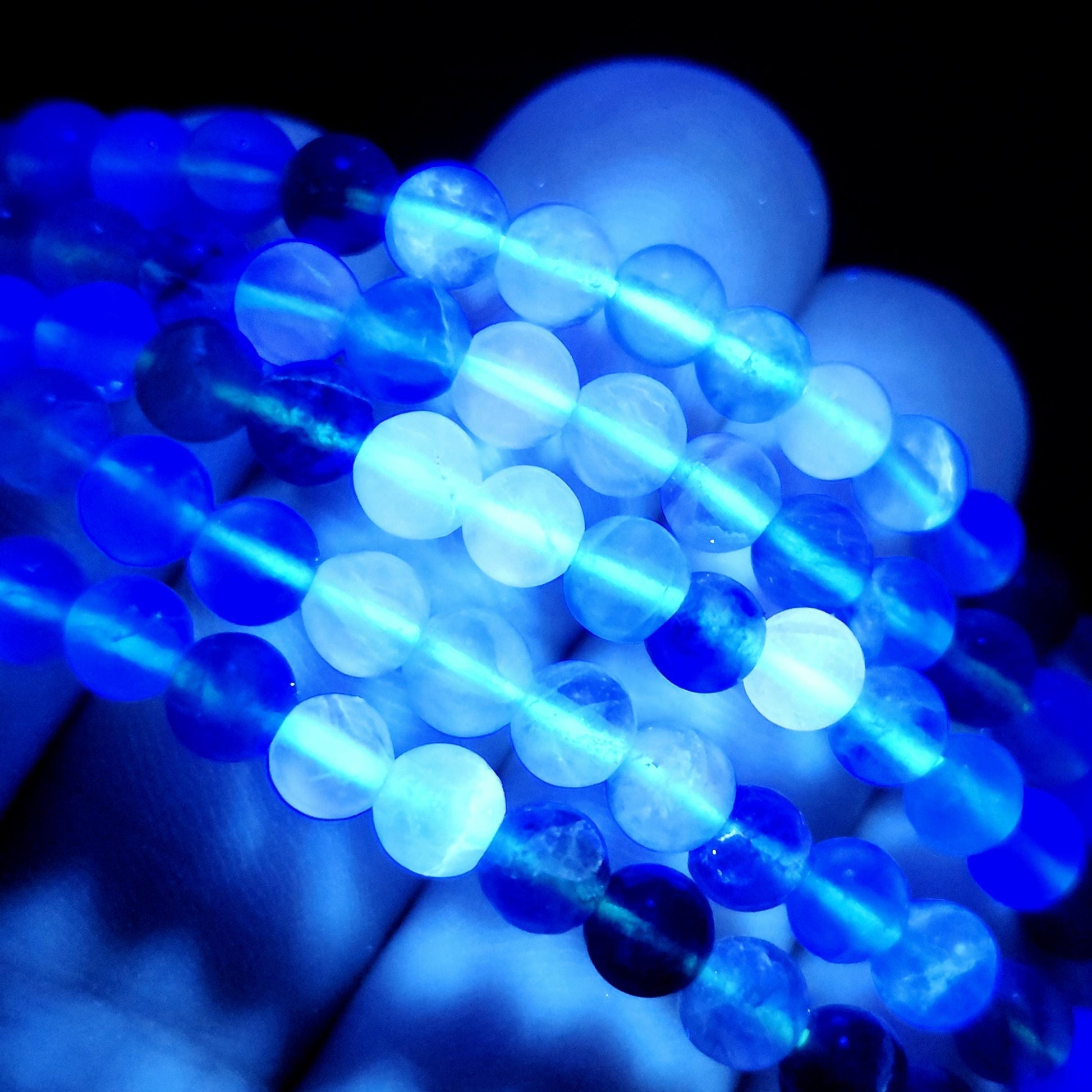 These Fluorite stretch bracelets are created with 4mm beads that have been polished to a high sheen. These crystals glow with a colorful, saturated brilliance when under a black light - a rare quality in the mineral kingdom! Each bracelet measures approximately 7 inches.