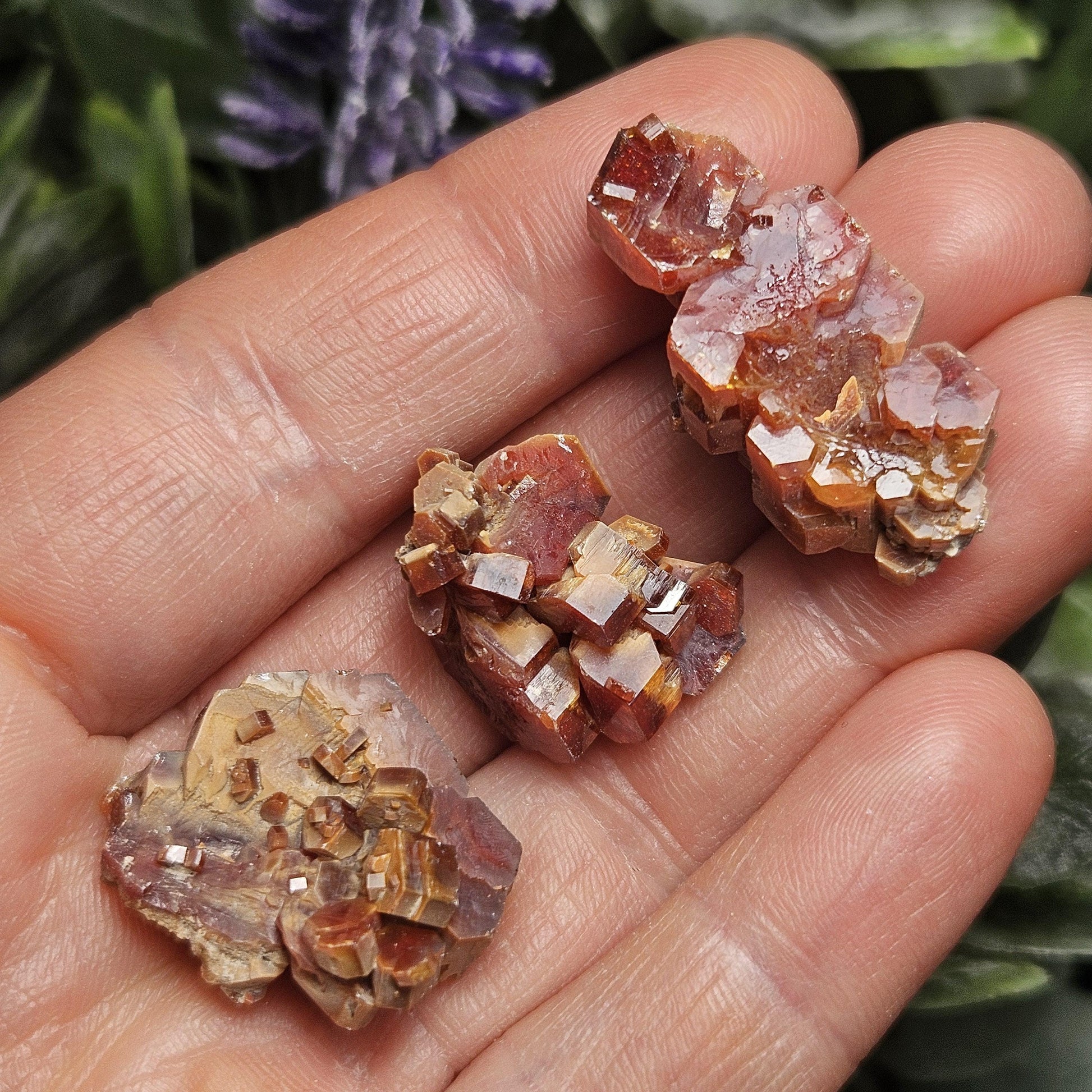 These high-quality Vanadinite crystals feature clustered growth, exhibit a gemmy luster, and have a high density due to their lead content. Vanadinite is fairly fragile at just a 3-4 on Mohs Scale, and with their potential toxicity levels, these specimens require some light care and attention. These stones can be utilized and enjoyed safely with some caution. We recommend light handling and washing your hands after use.