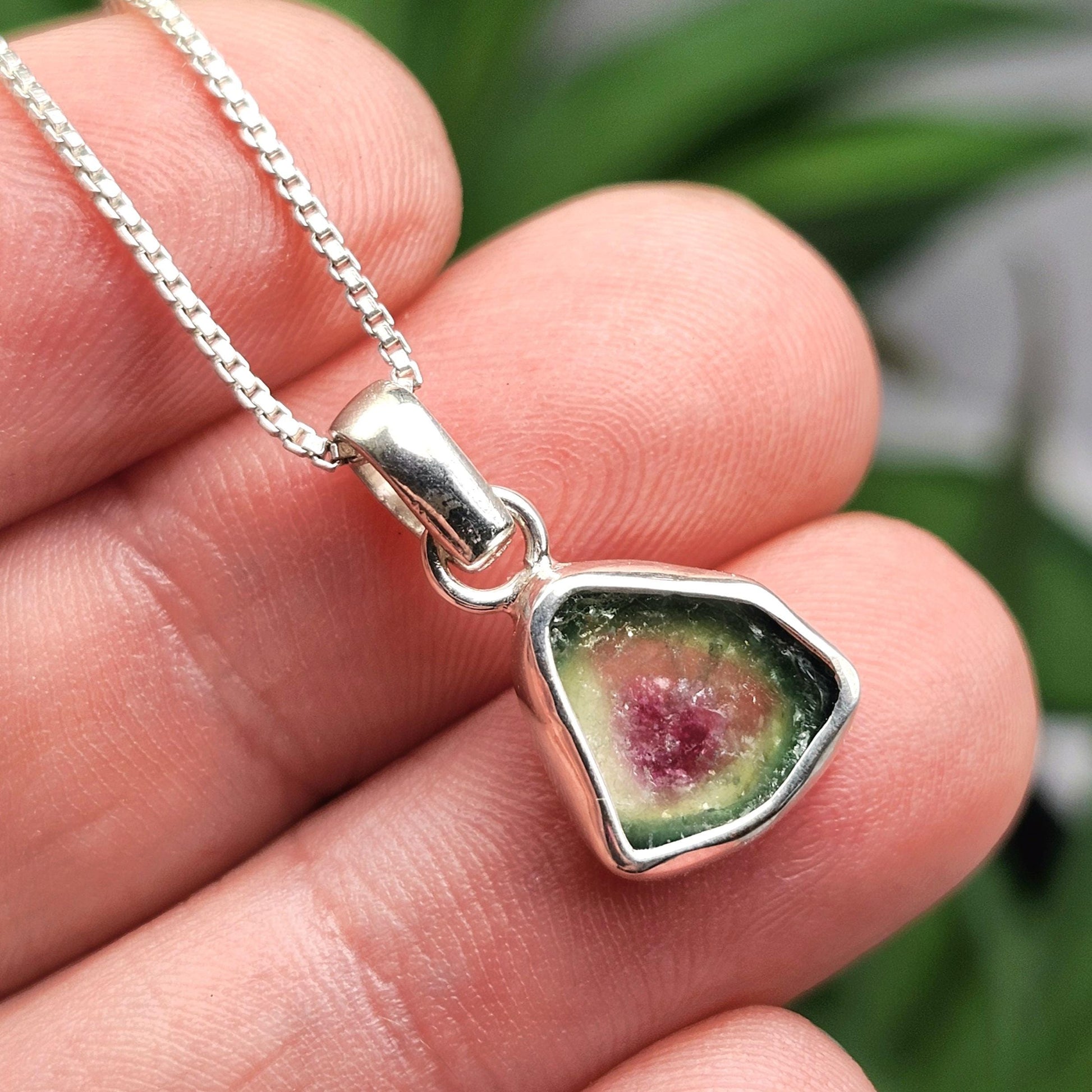 Watermelon Tourmaline Pendant, Sterling Silver Pink & Green Tourmaline Necklace