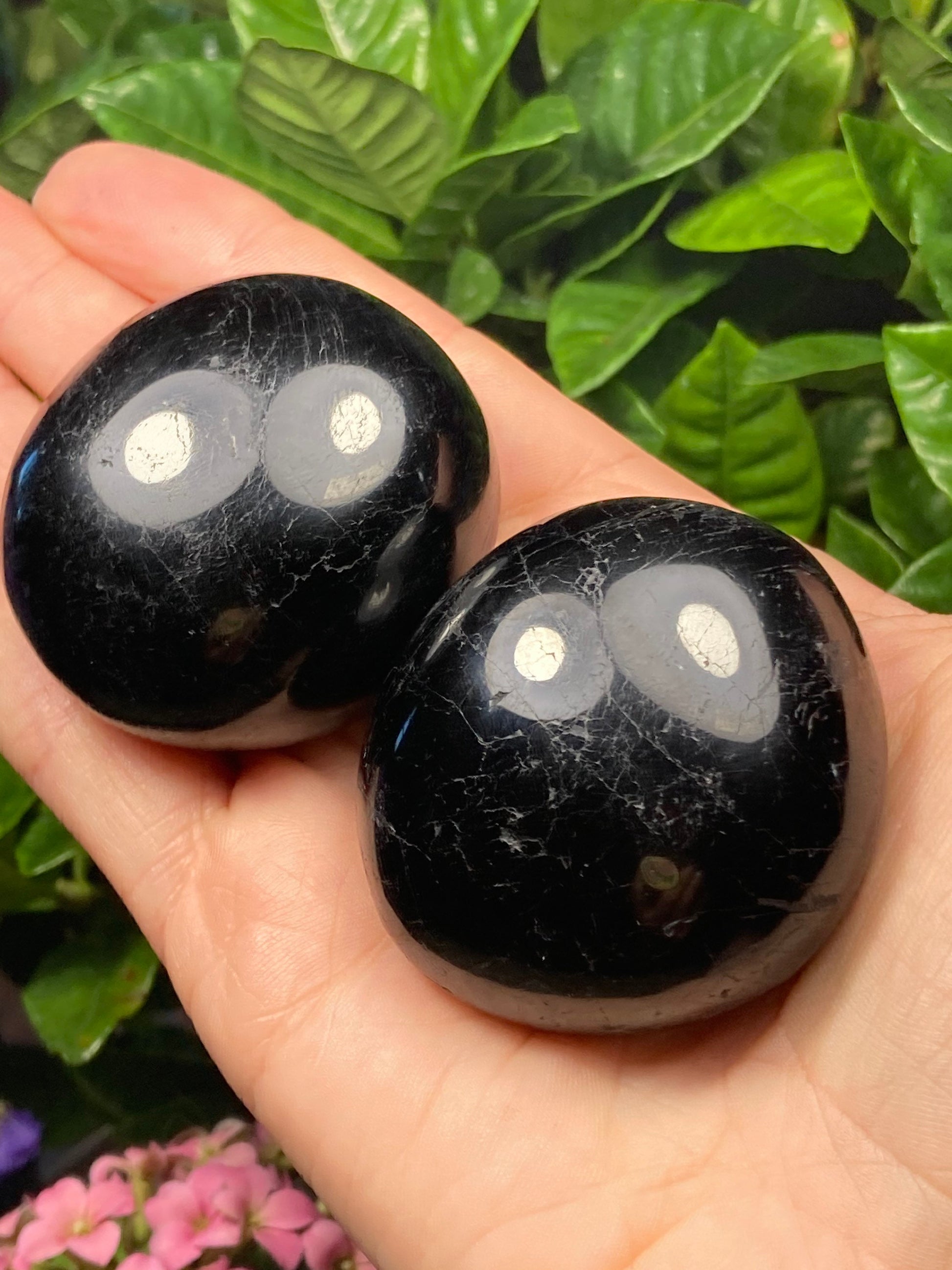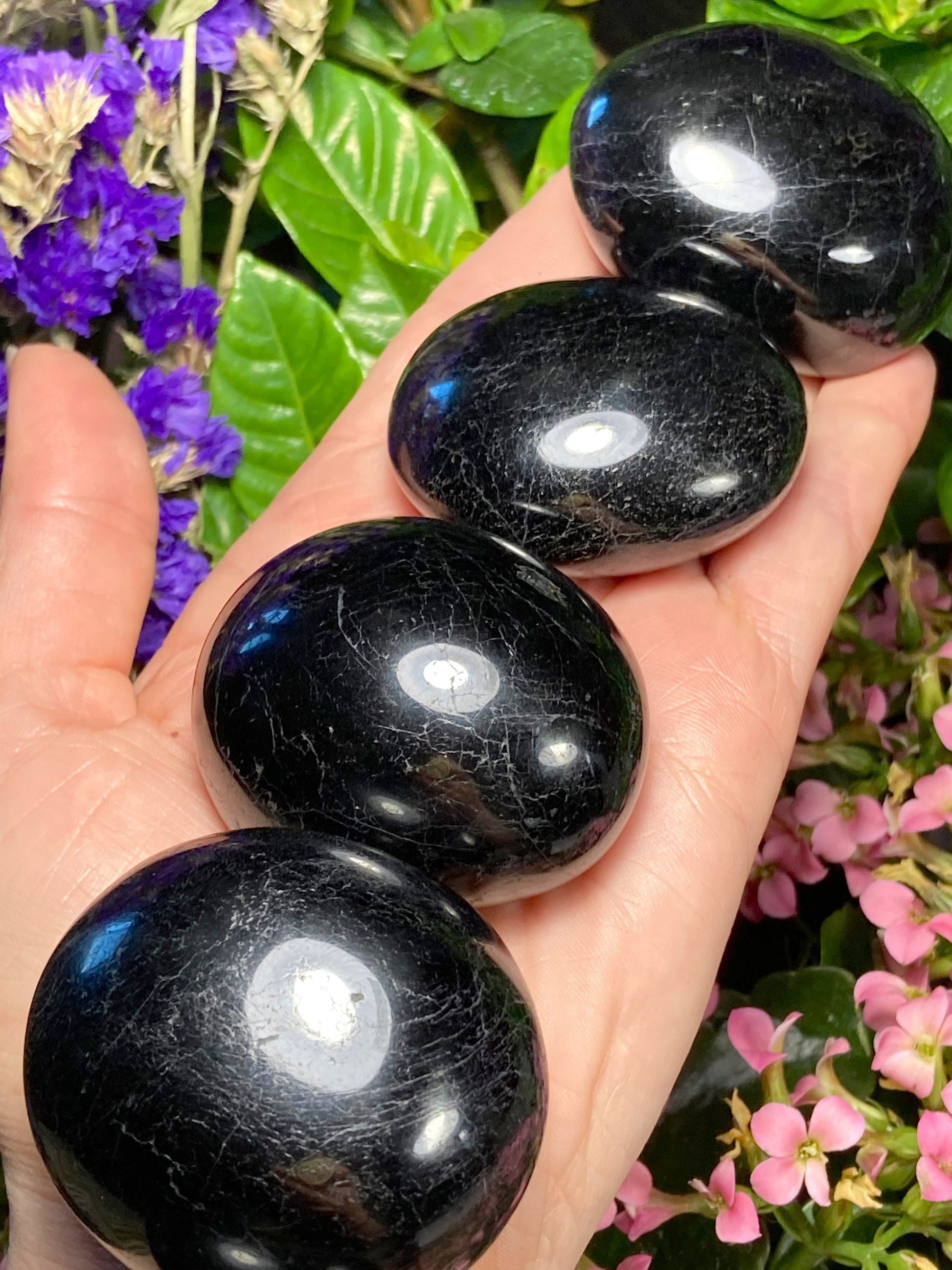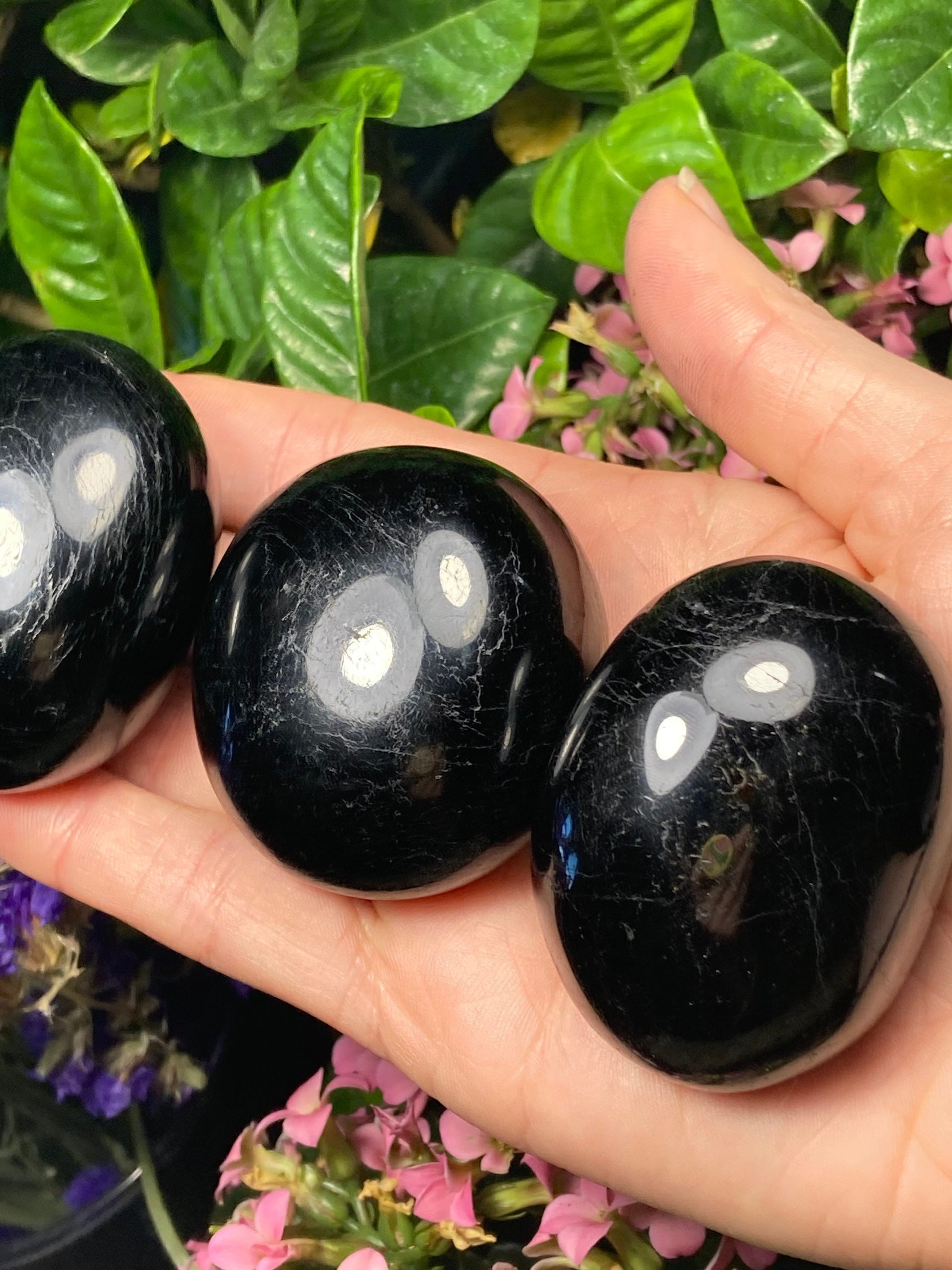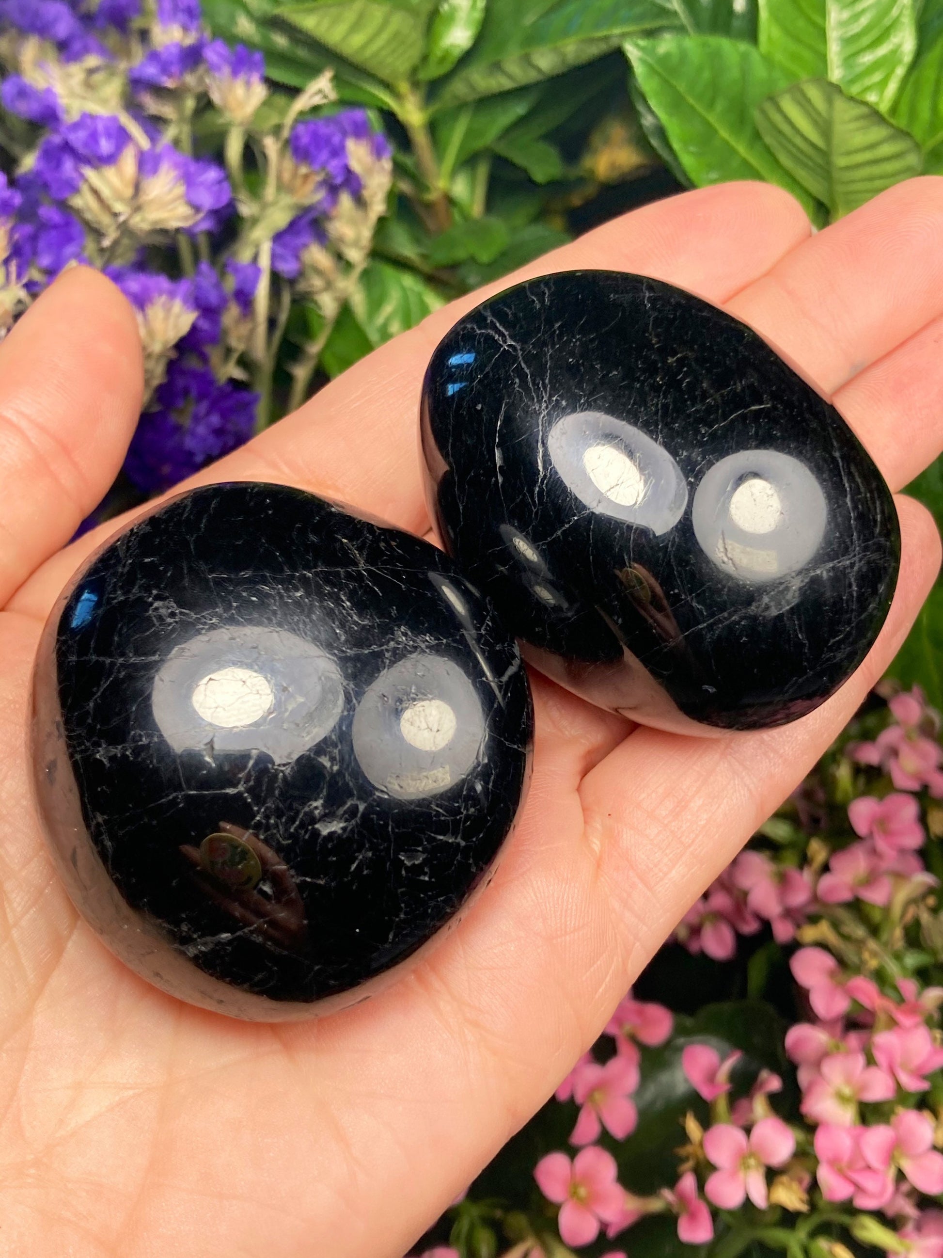 These high quality Black Tourmaline palm stones have a lovely polish and a strong energy. Each palm stone measures approximately between 40mm and 50mm.