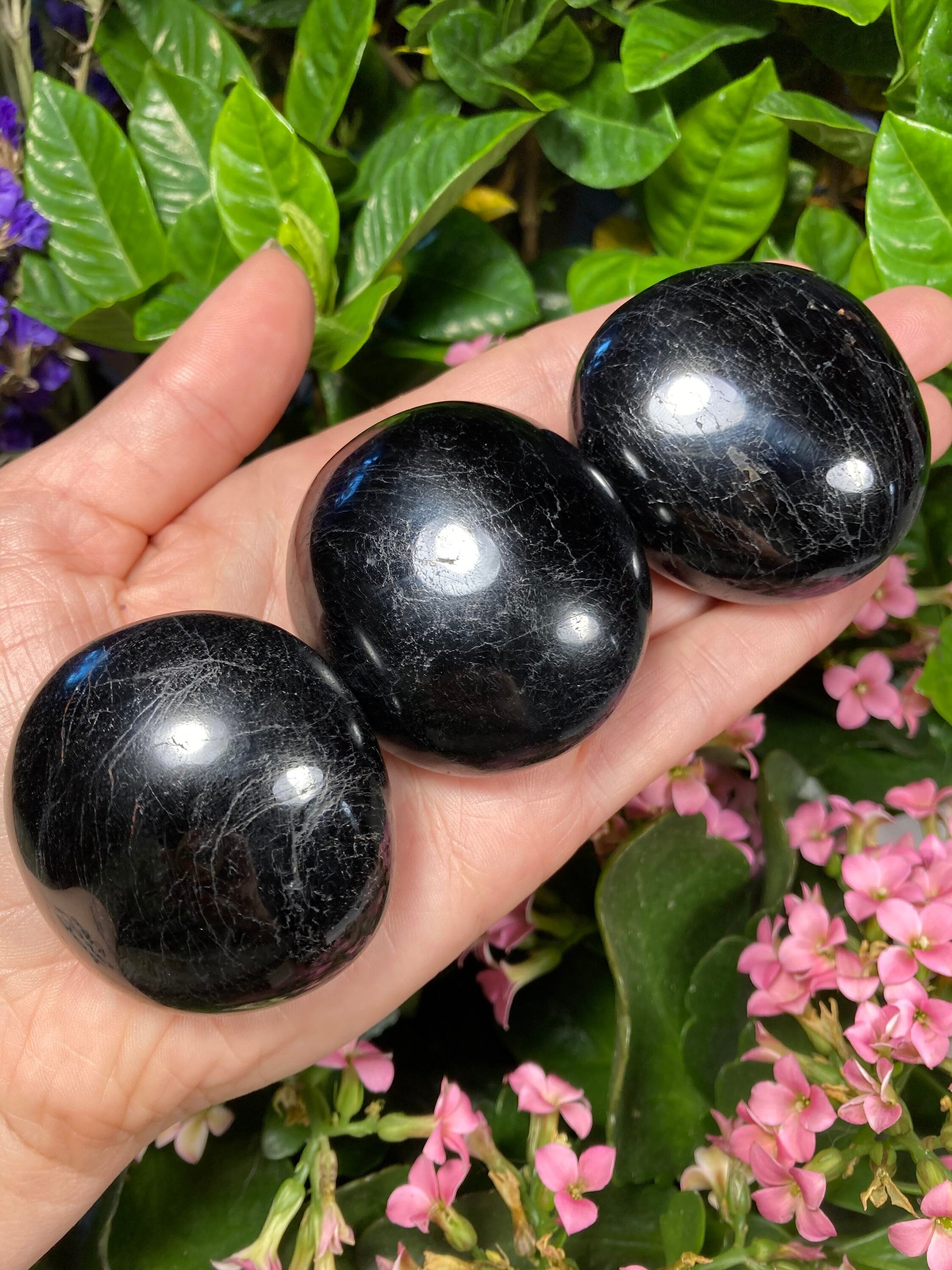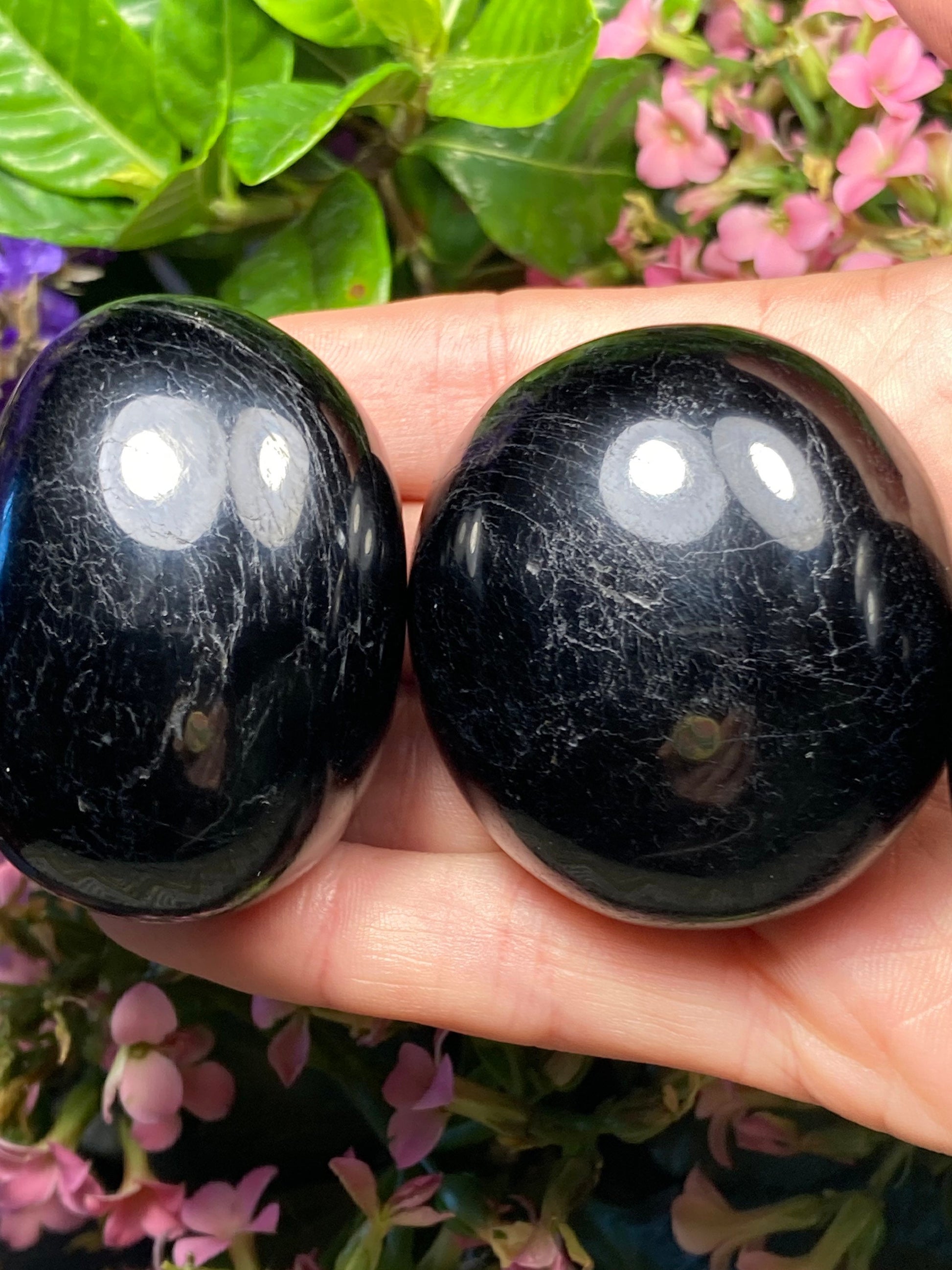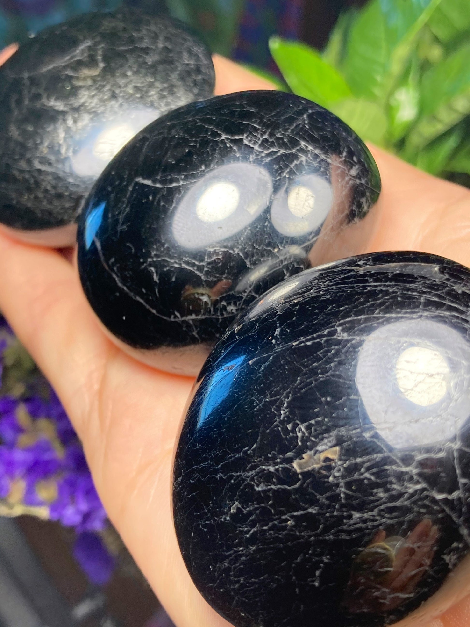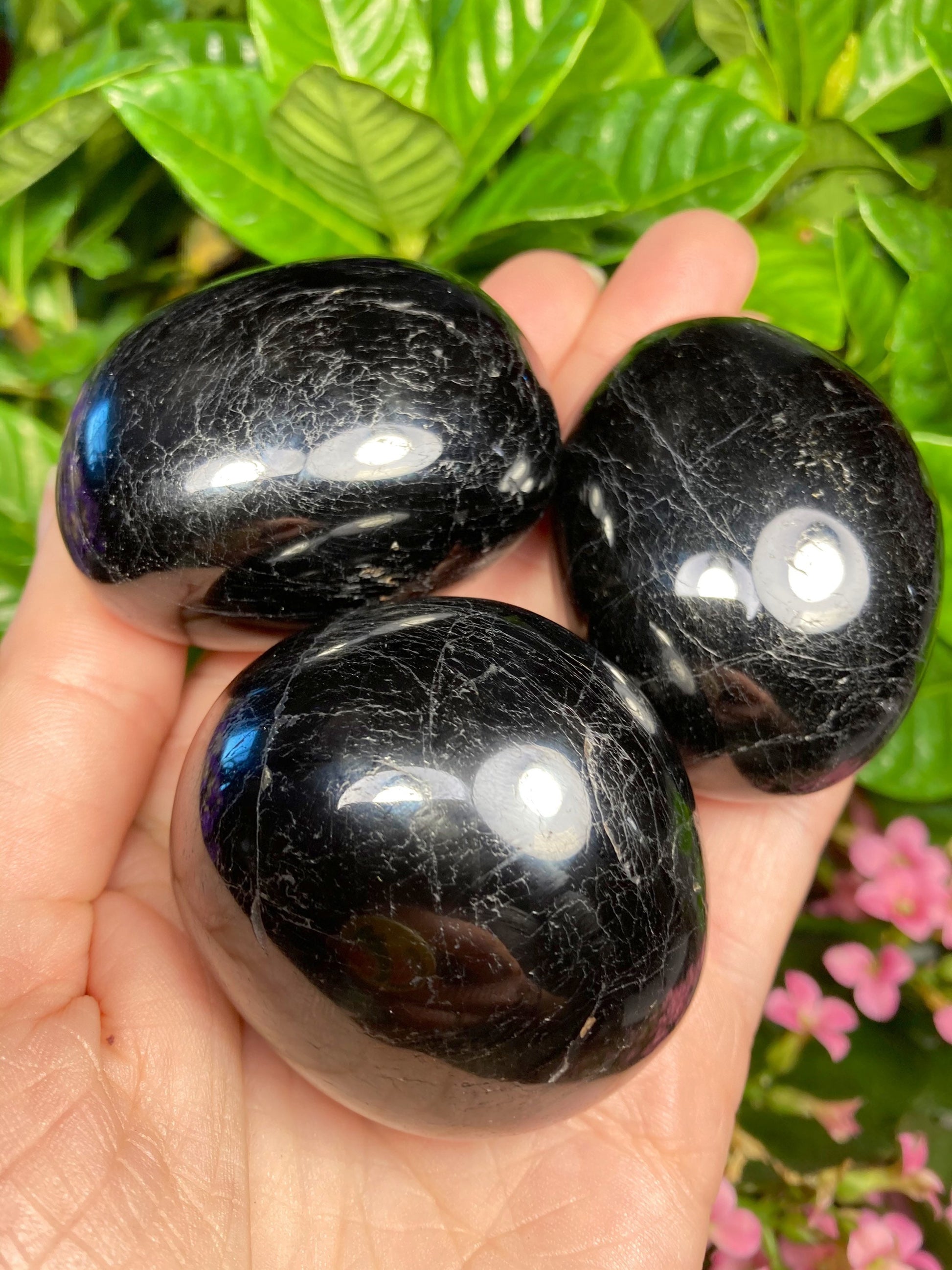 These high quality Black Tourmaline palm stones have a lovely polish and a strong energy. Each palm stone measures approximately between 40mm and 50mm.
