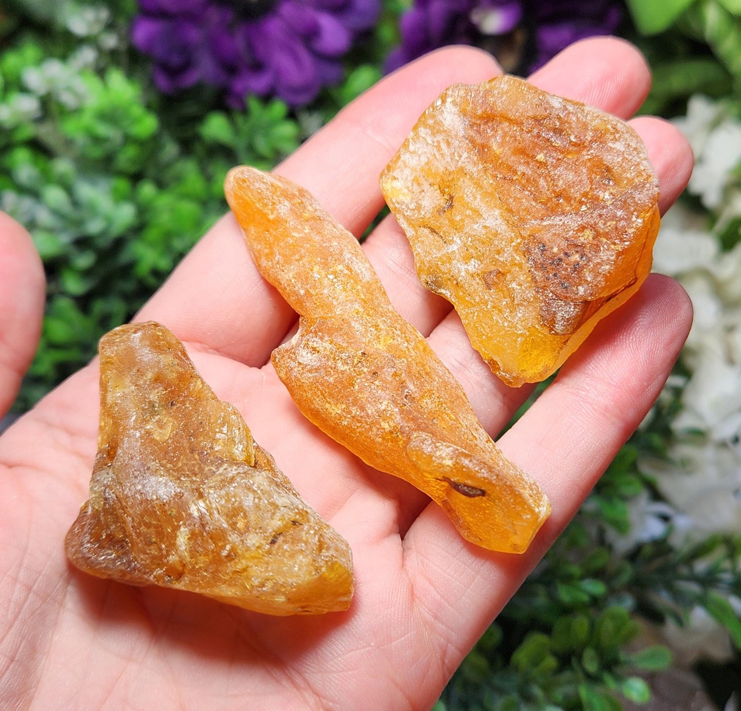 We just returned from Denver 2023 with these gorgeous and affordable Amber hunks! These natural Amber specimens have a vivid honey orange coloring. This material varies between clear and cloudy. These rough pieces may contain some fractures and inclusions of natural debris - some exhibit small insect inclusions! Each specimen measures 1.5 inches and up.