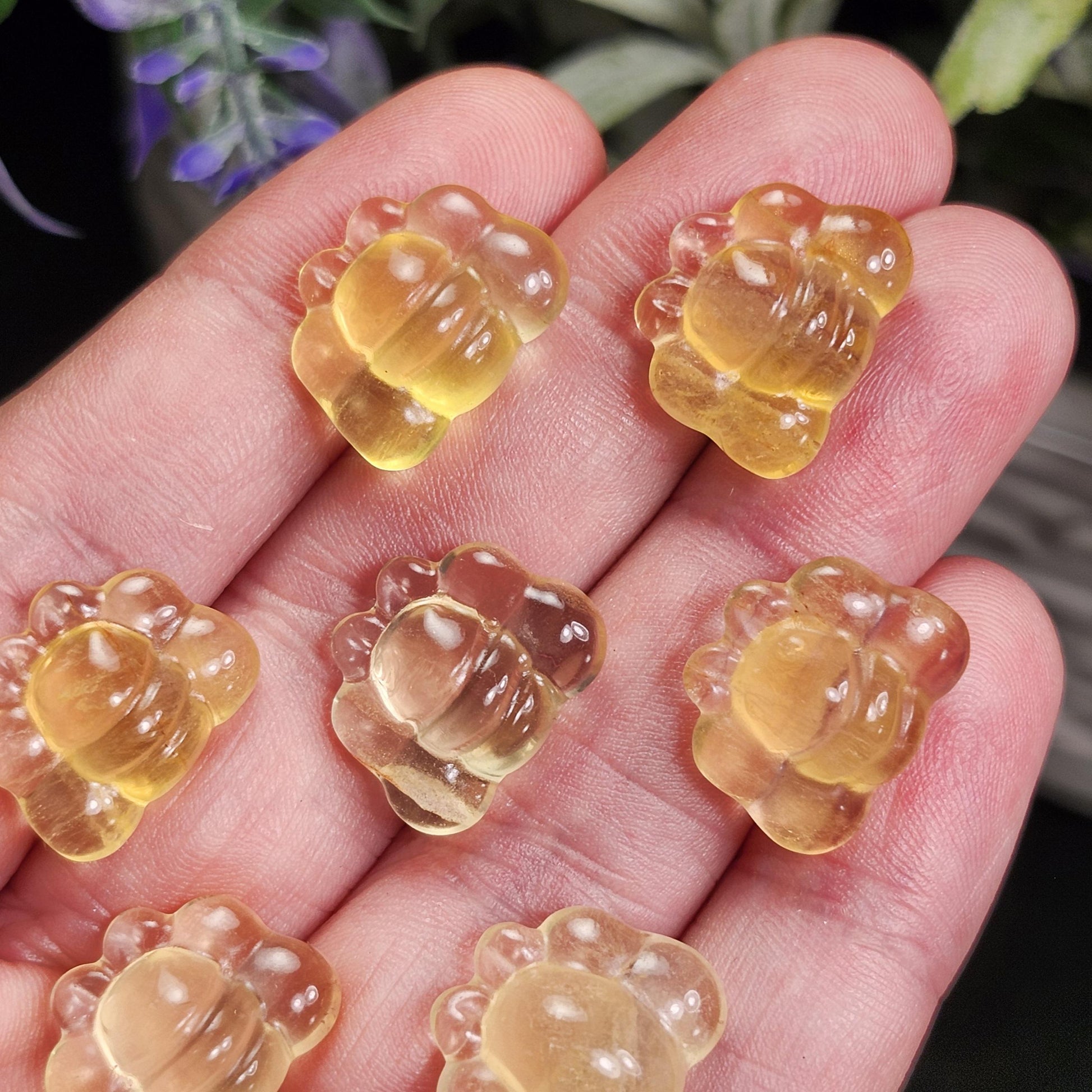 These Rainbow Fluorite crystals have been carved into bee shapes and polished to a high sheen. They exhibit an array of yellow hues and glowing translucence. These polished stones are coated in a light layer of mineral oil to help protect the crystal and create a beautiful shine. Each specimen measures approximately 15mm.