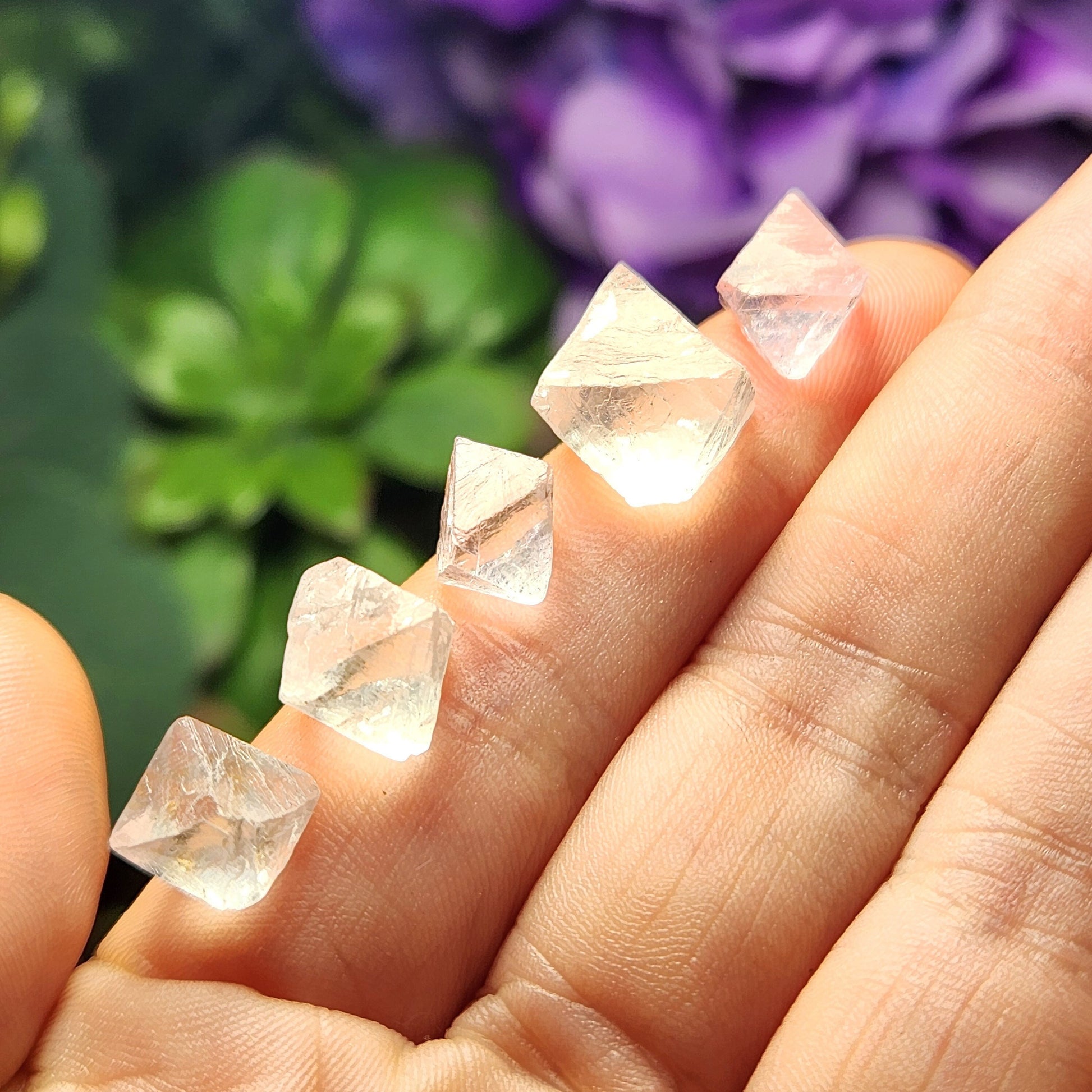 These raw Fluorite stones from Mexico have traces of Yttrium. These specimens have octahedron termination and exhibit glowing translucence with pale pastel hues.