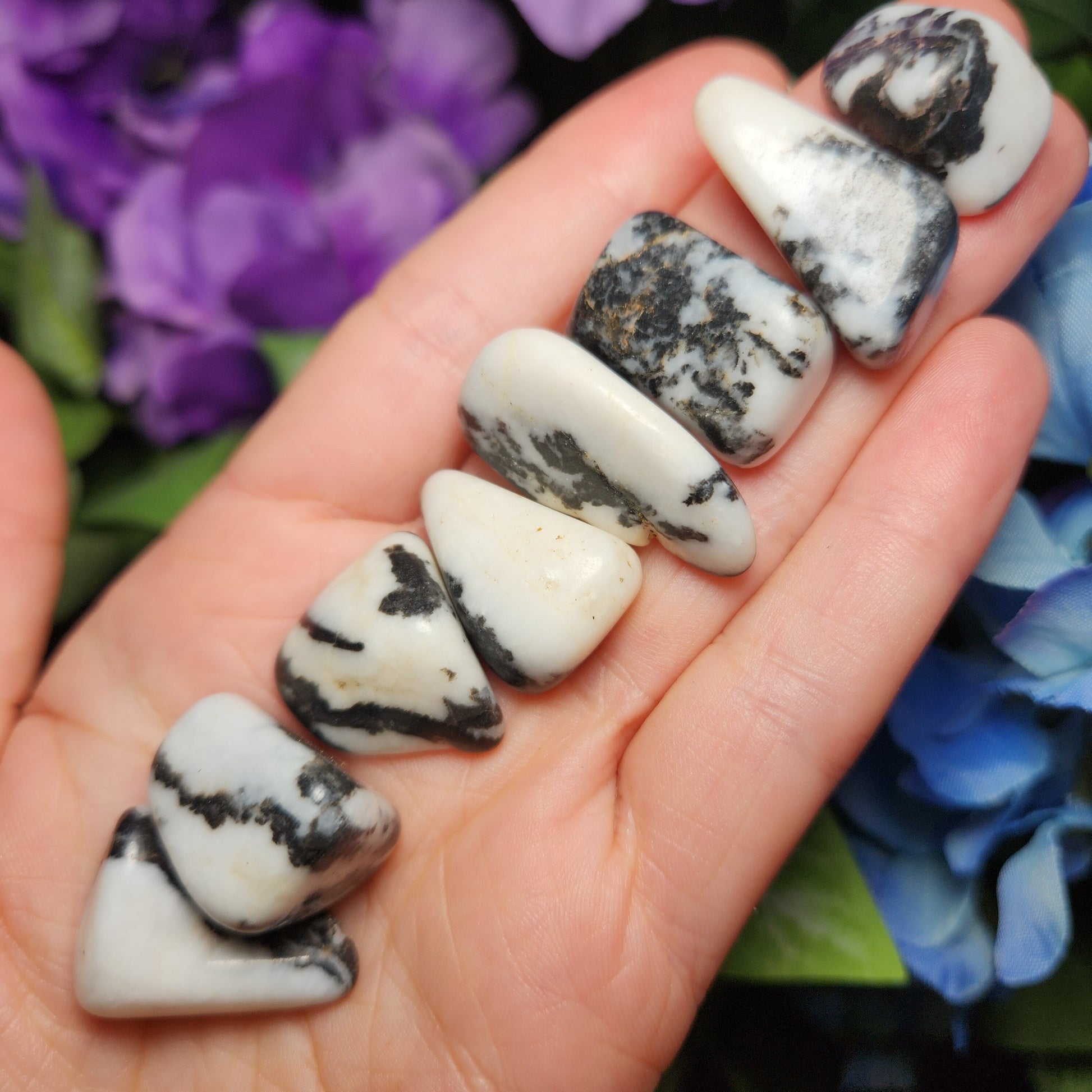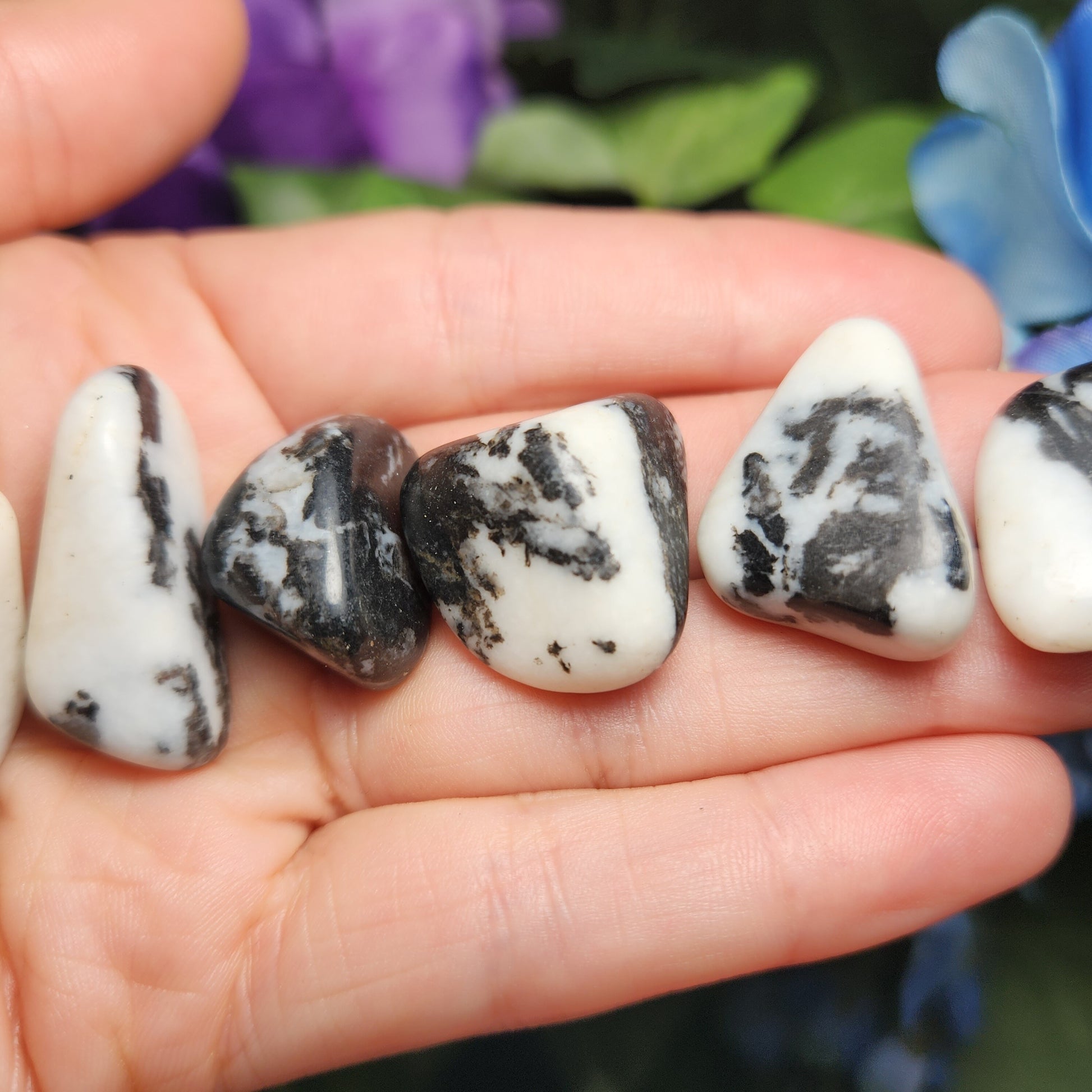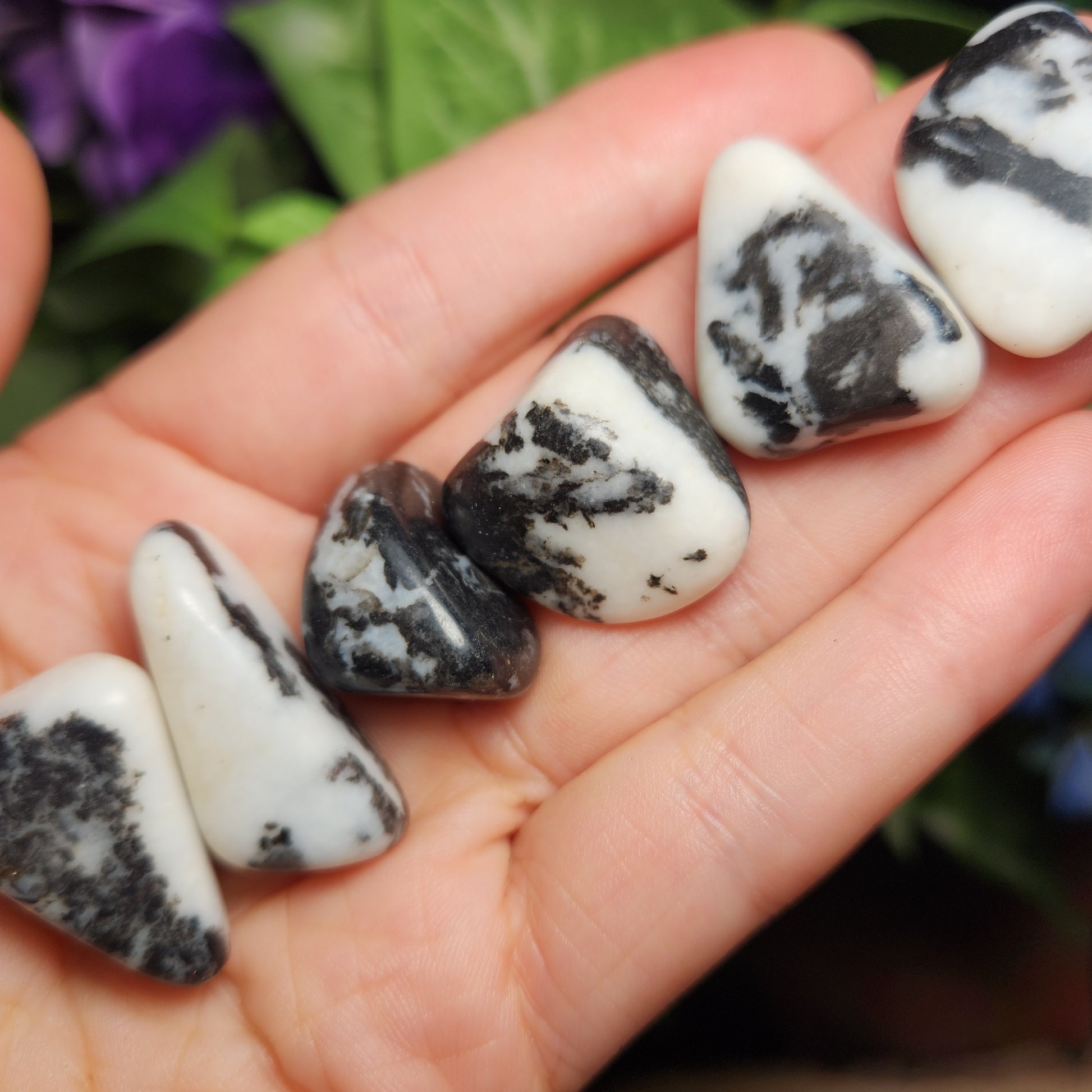 These Zebra Jasper stones have freeform shapes and have been tumbled to a high polish. Each specimen measures approximately 20mm.