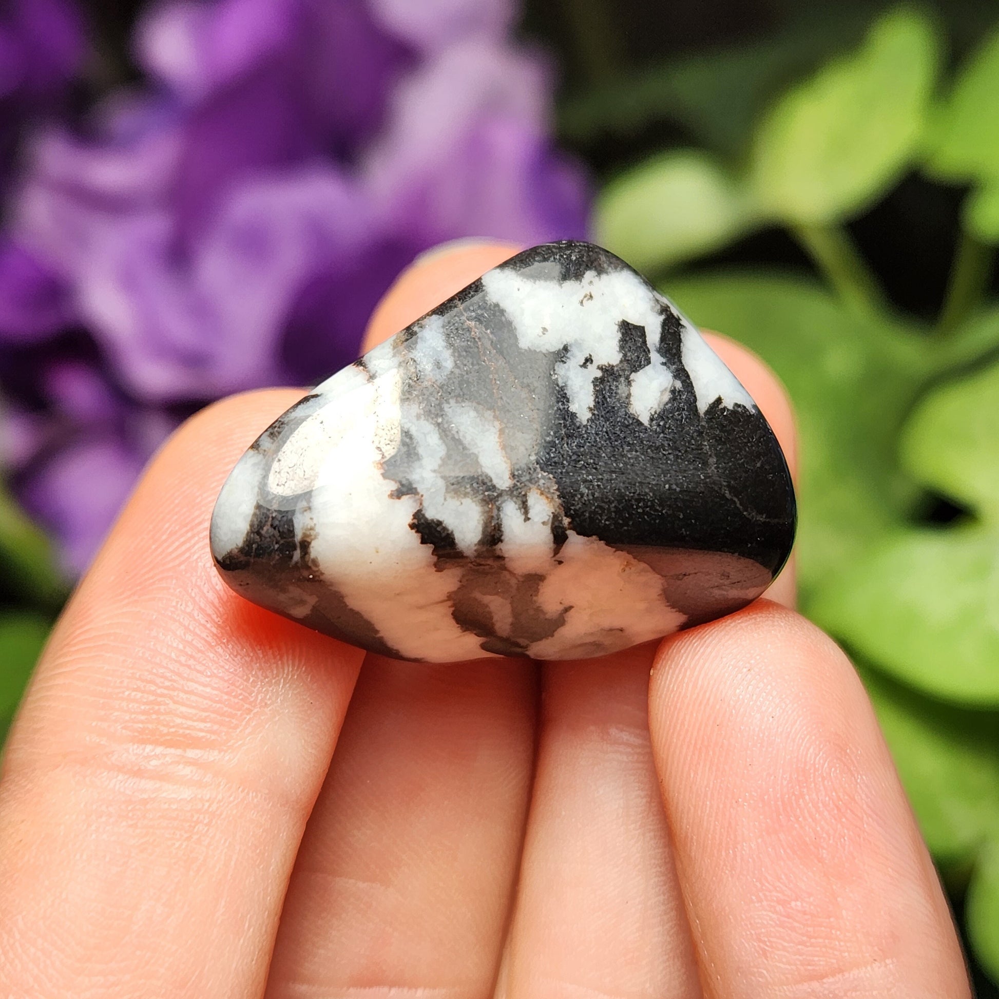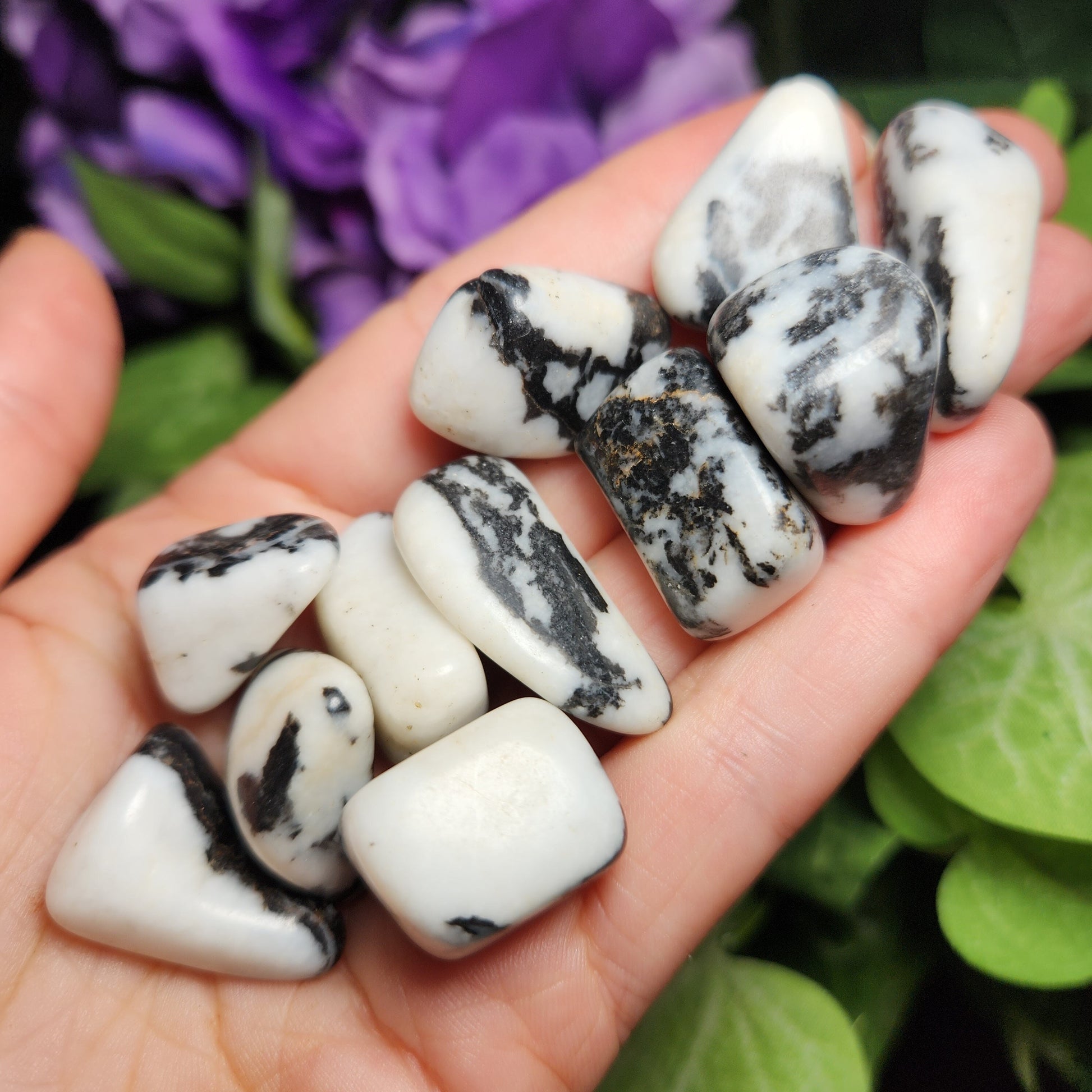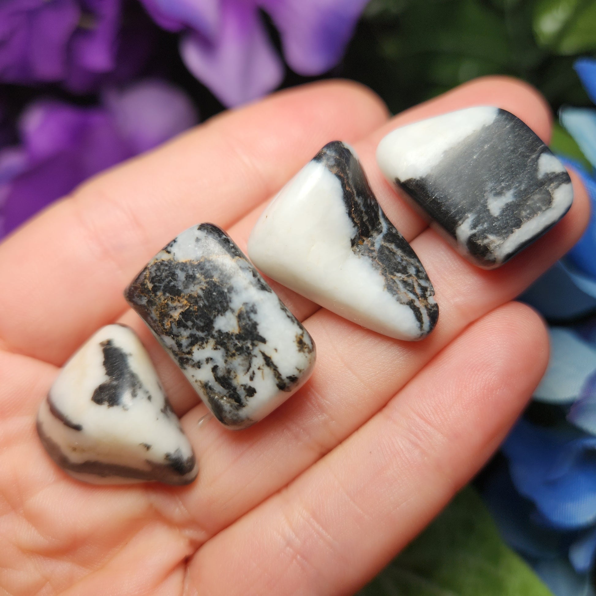 These Zebra Jasper stones have freeform shapes and have been tumbled to a high polish. Each specimen measures approximately 20mm.